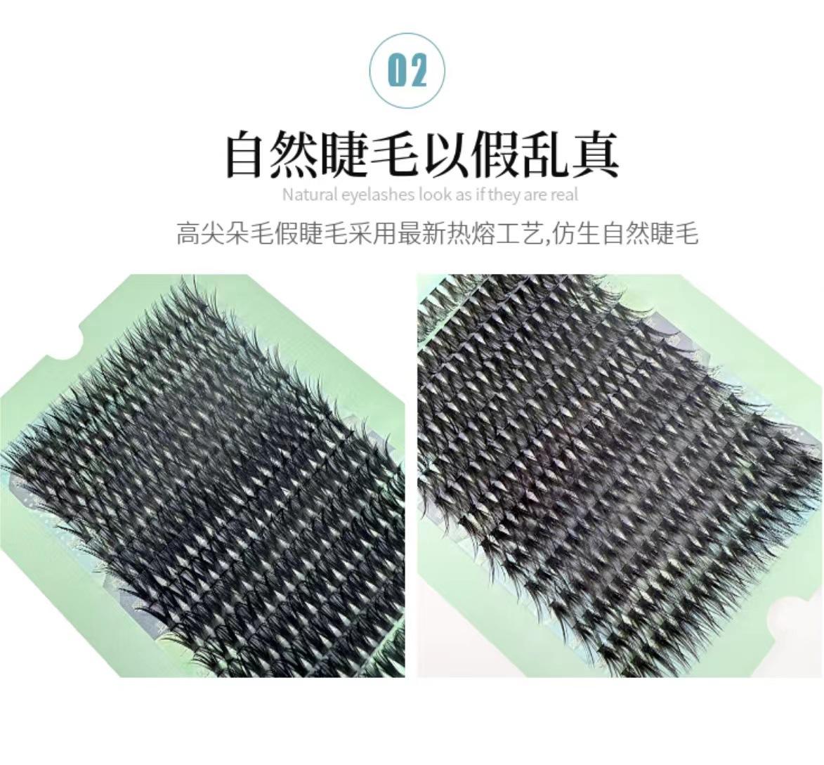 Pestañas postizas de fusión en caliente transfronterizas, cabello de punta alta, venta al por mayor, 14 filas de injerto de grupo único de gran capacidad, pestañas segmentadas gruesas