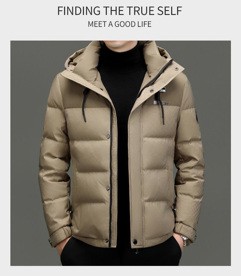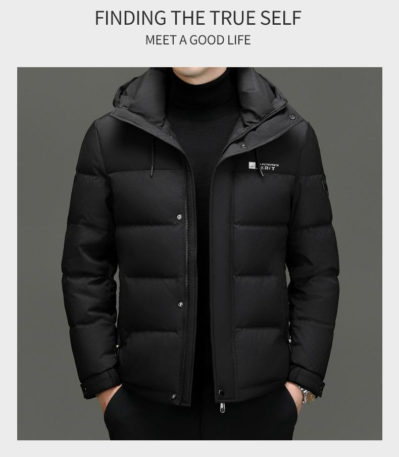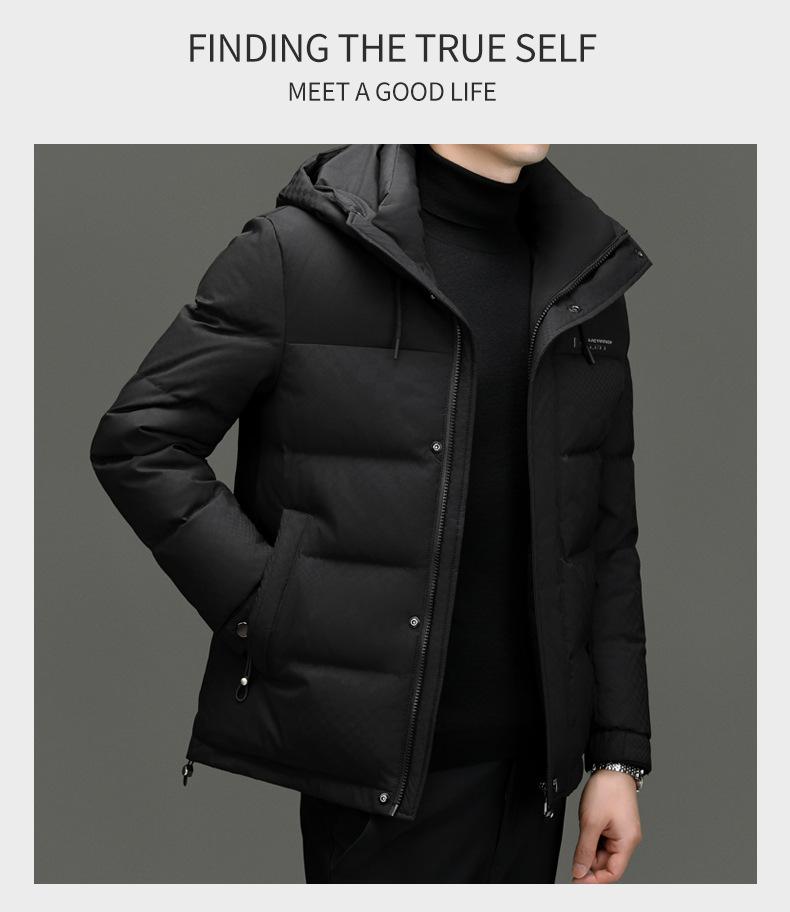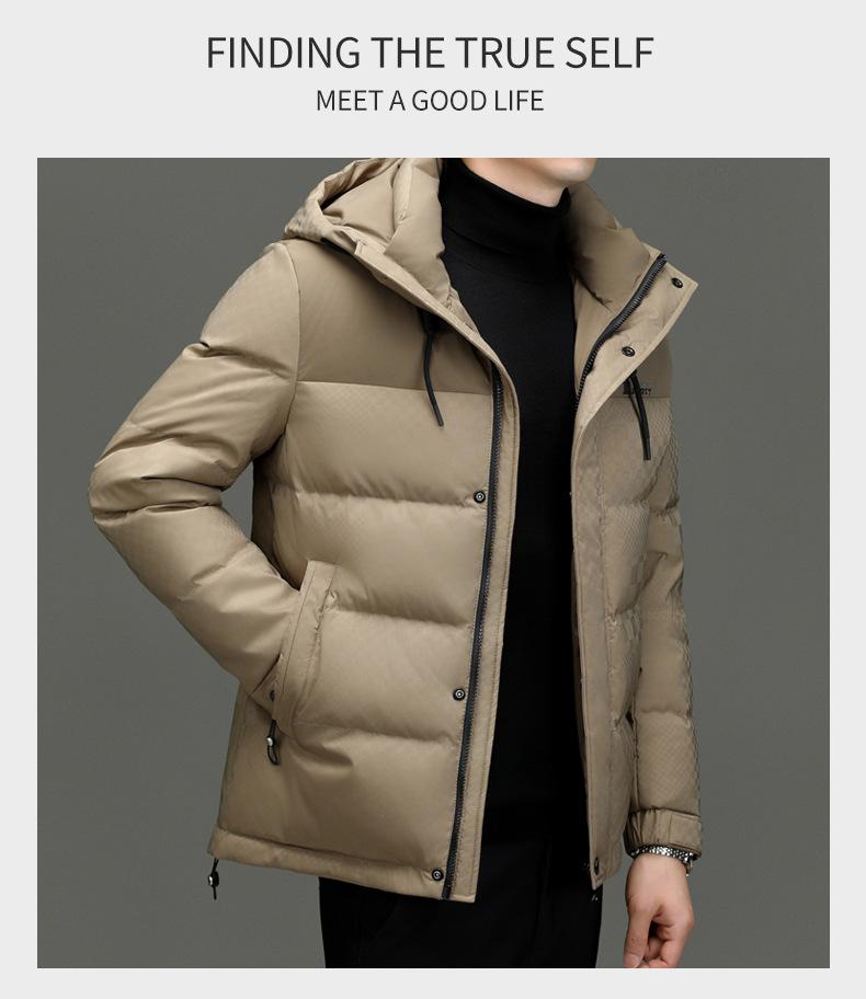 Compra Chaqueta con capucha de color sólido para hombre, nueva chaqueta de plumón de pato blanco, informal, de moda, para negocios, para jóvenes, invierno de 2023 al por mayor en Joom.pro