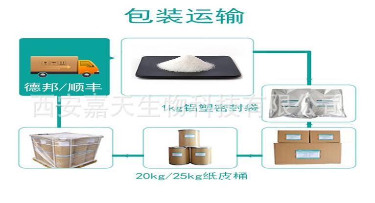 8. Embalaje: 25 kg/barril de cartón. El embalaje de muestra es una bolsa de aluminio. El embalaje del barril también se puede cambiar a un embalaje pequeño según las necesidades para facilitar su uso.