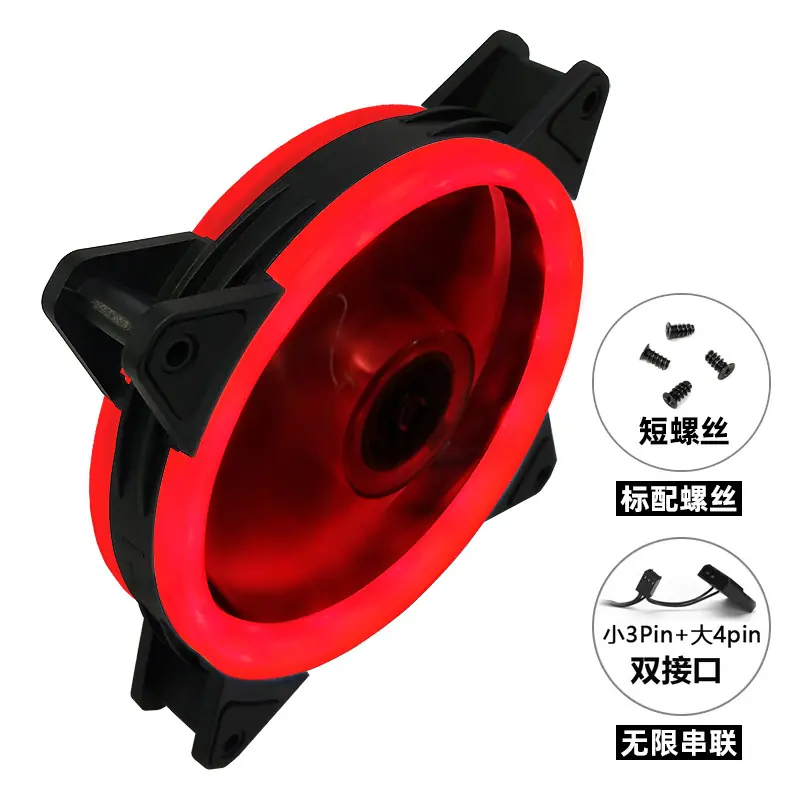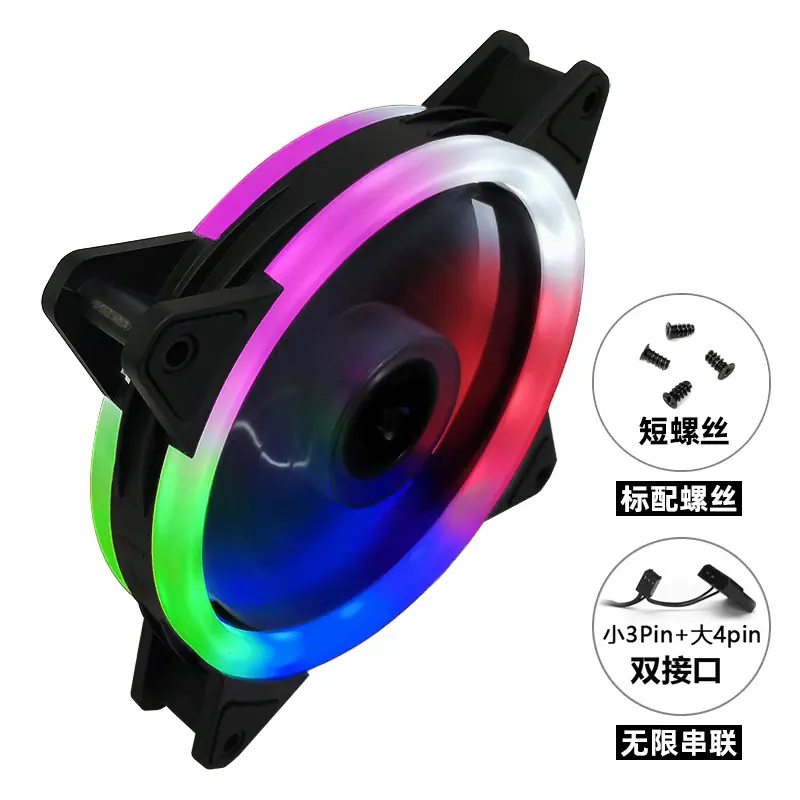 Ventilador de chasis de 15 luces,¡Fresco y luminoso! Equipado con conectores macho y hembra de 4 pines grandes, se puede conectar en serie y permite instalar más ventiladores. [Normalmente no viene con caja de color por defecto; el precio del embalaje es 0,7 yuanes más alto. Para modificar el precio, contacte con atención al cliente]. El siguiente chasis cuenta con un ventilador de 15 luces.