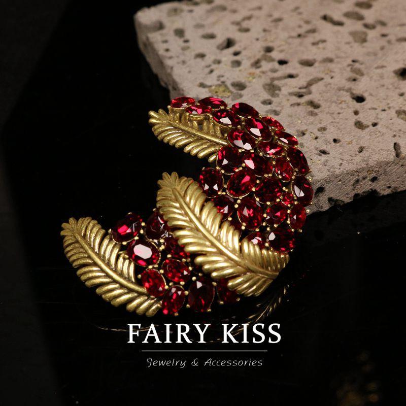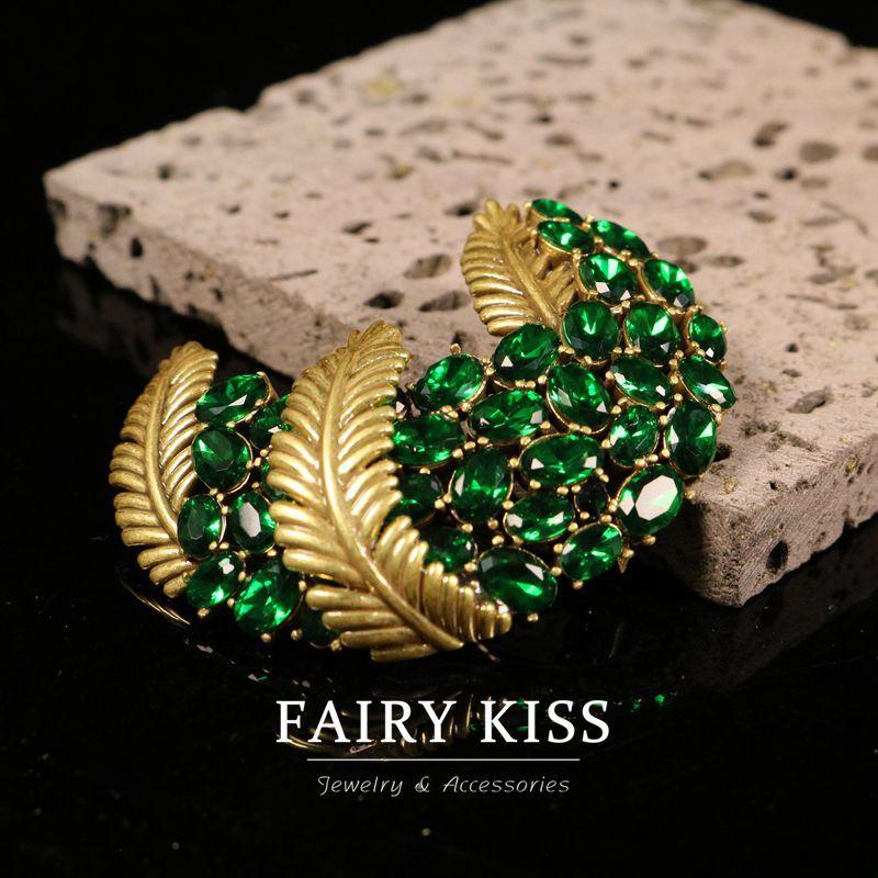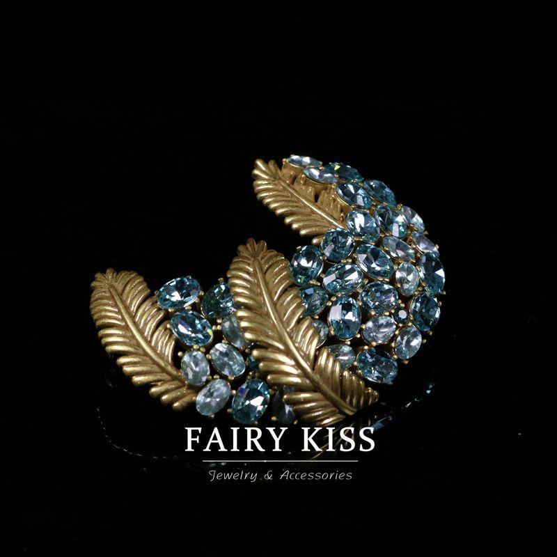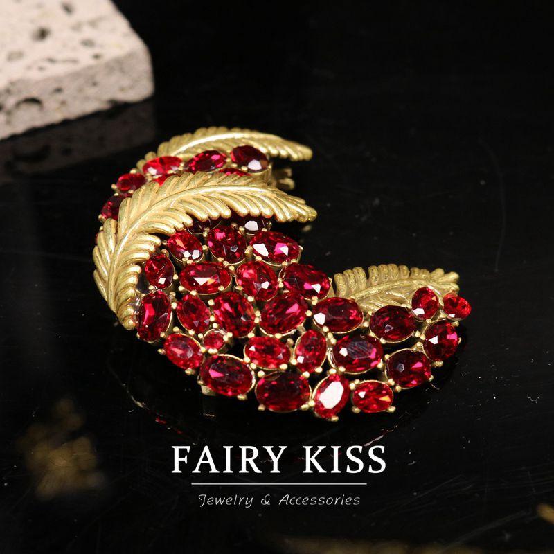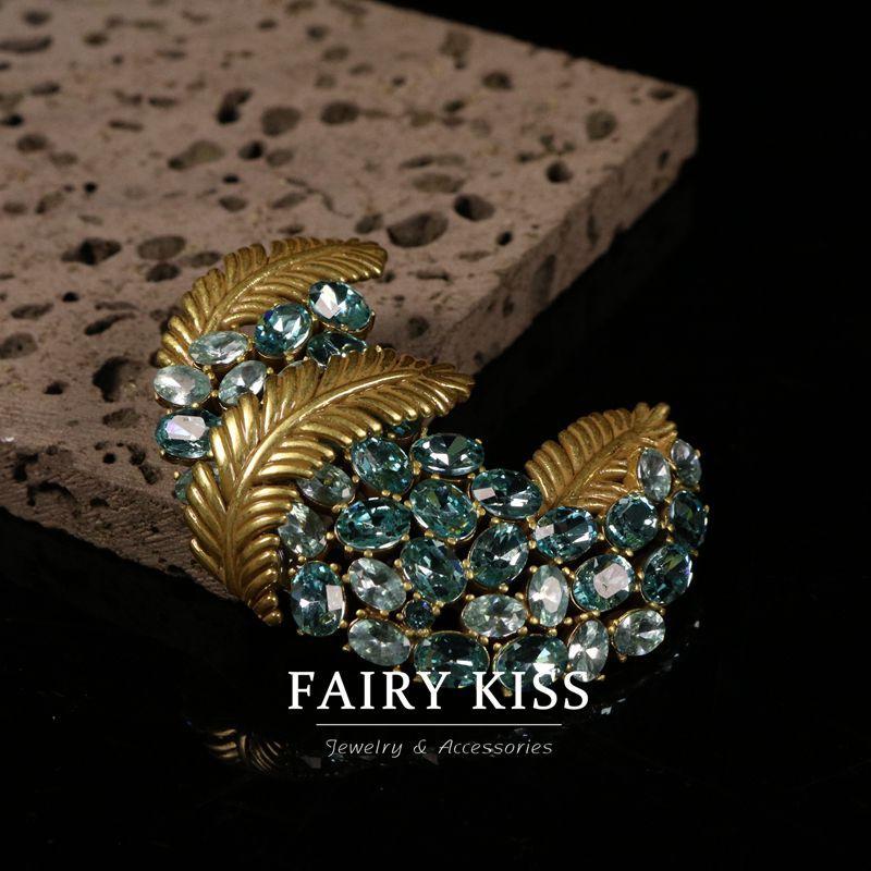 Exquisito broche de plumas de cobre con incrustaciones de diamantes de imitación, elegante y moderno, combina con todo, ligero, de lujo, de alta calidad.