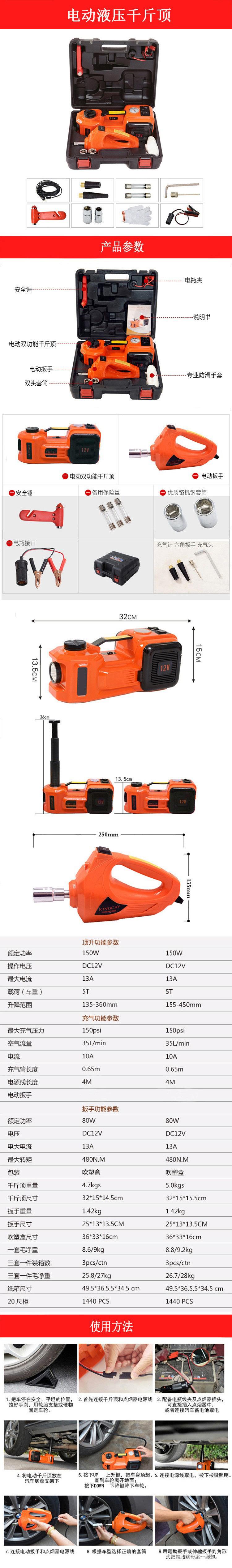 1、Integra un gato, una bomba de aire y una llave eléctrica en un paquete de caja de herramientas, que es fácil de transportar.