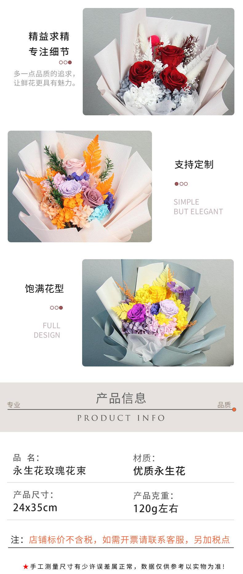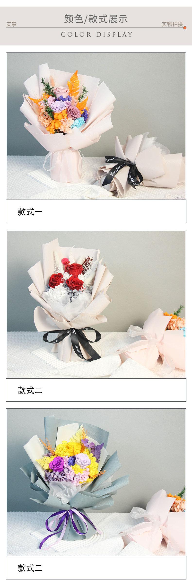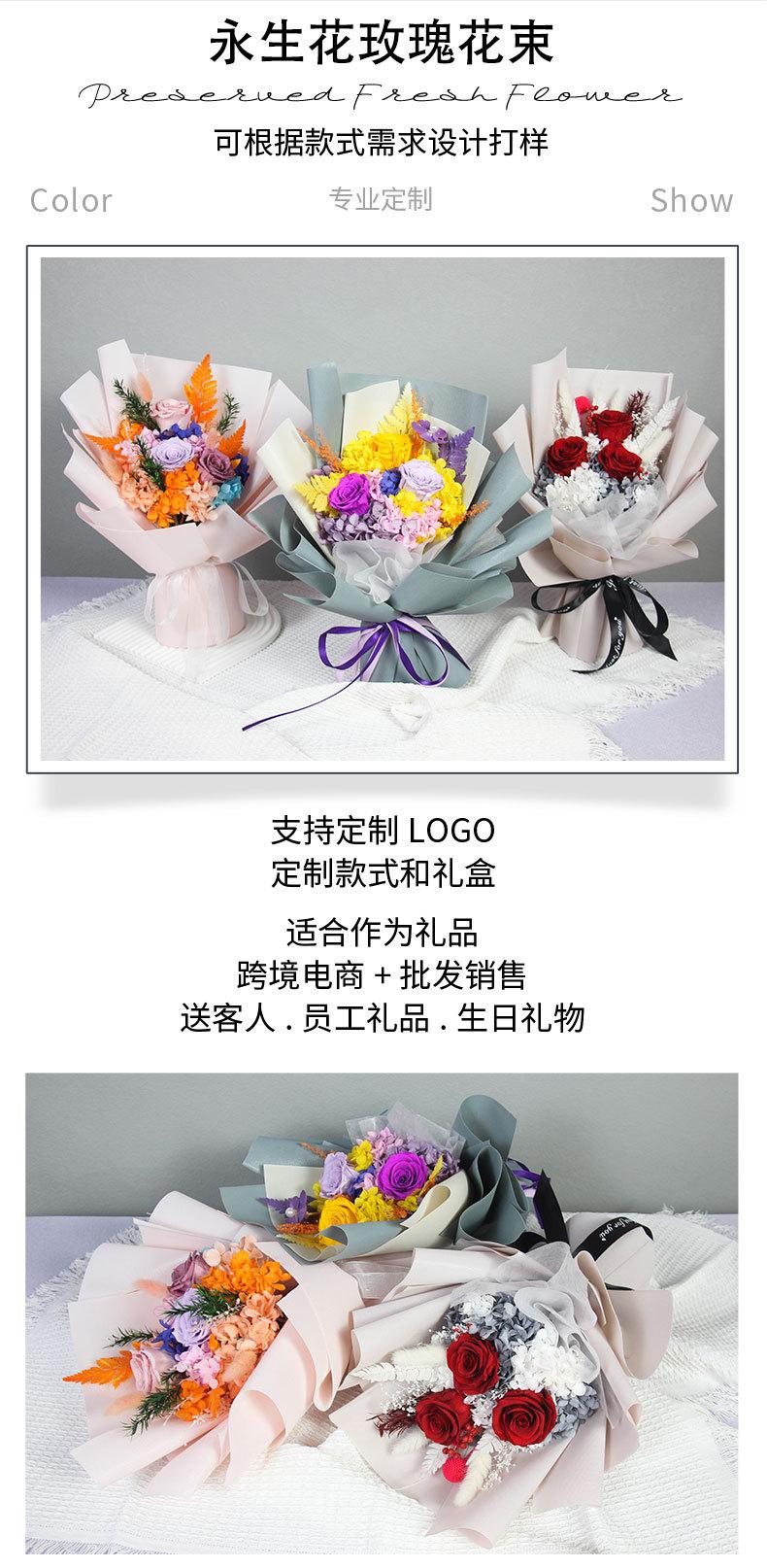 Ramo de rosas eternas de flores secas Qixi para el Día de San Valentín, regalo terminado, gran sentido para la novia, fábrica al por mayor