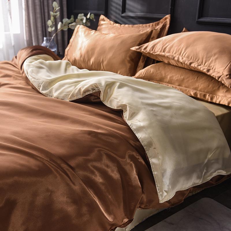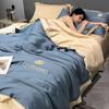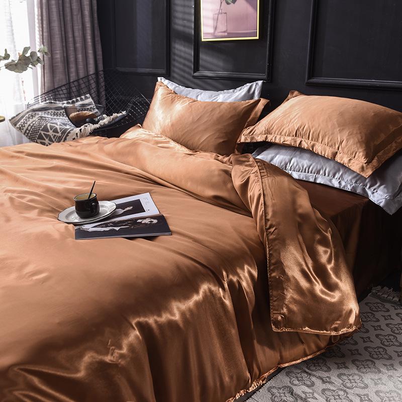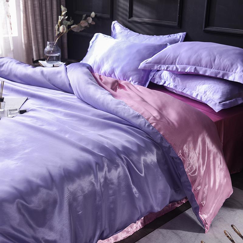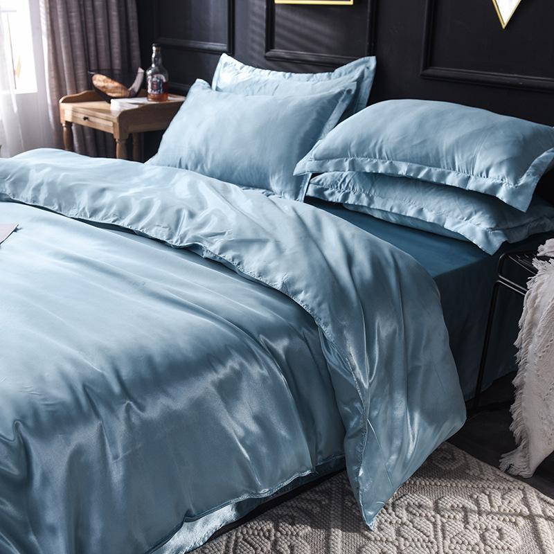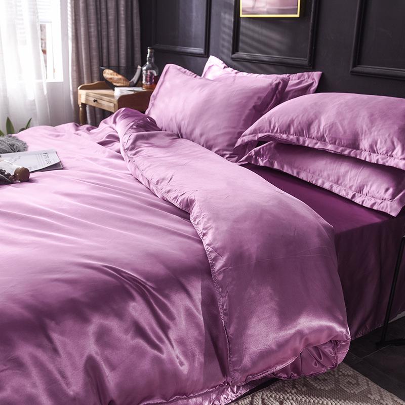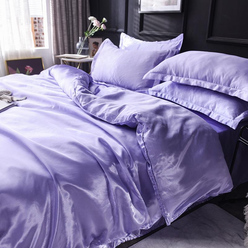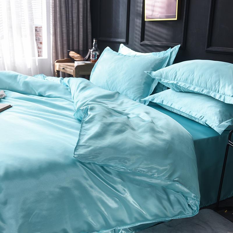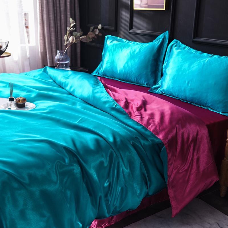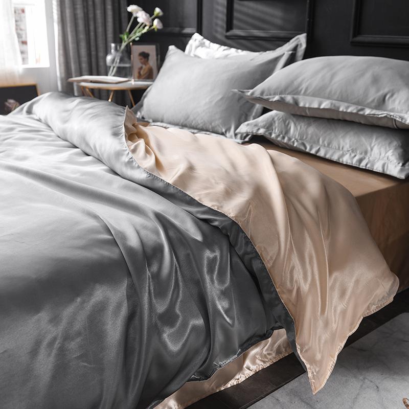 Funda de edredón individual de seda lavada con hielo de color sólido simple de primavera y verano, funda de edredón de seda de hielo para dormir desnudo con sensación fresca, venta al por mayor de fábrica