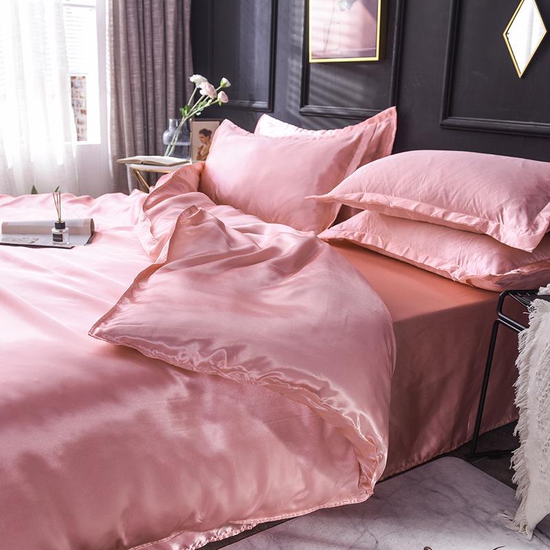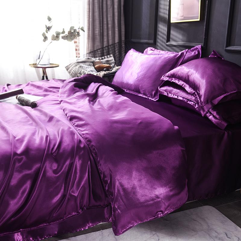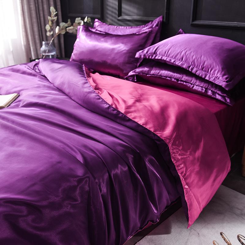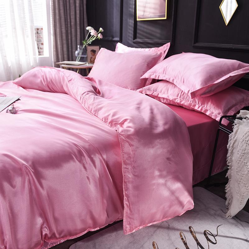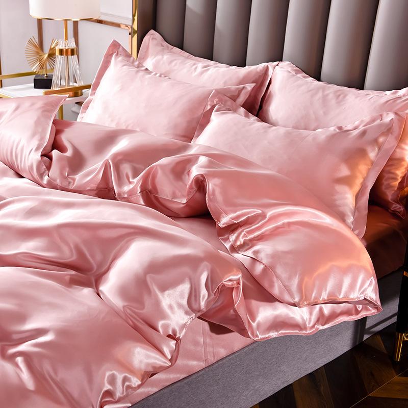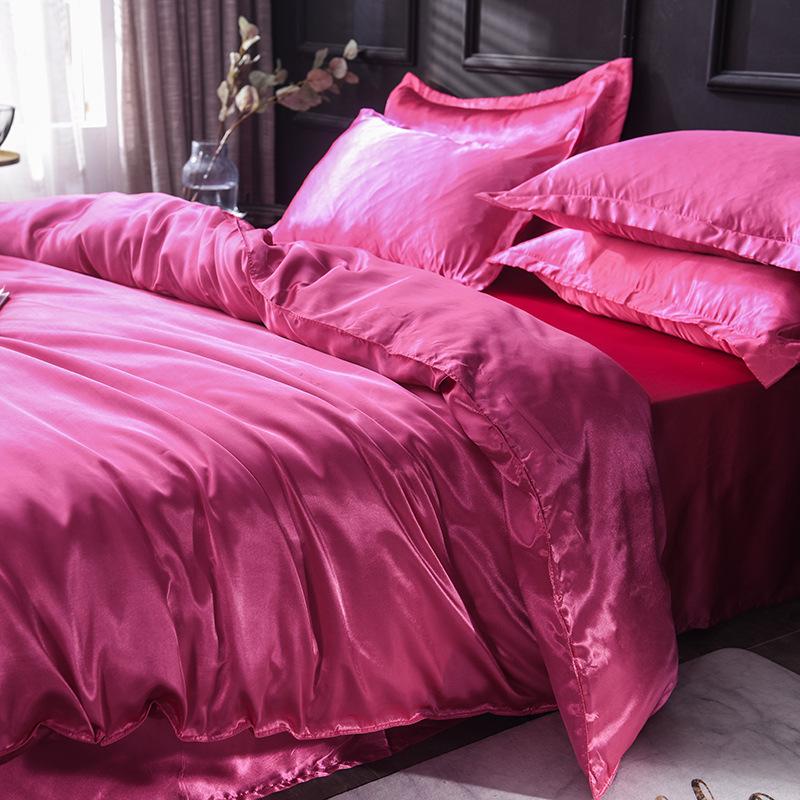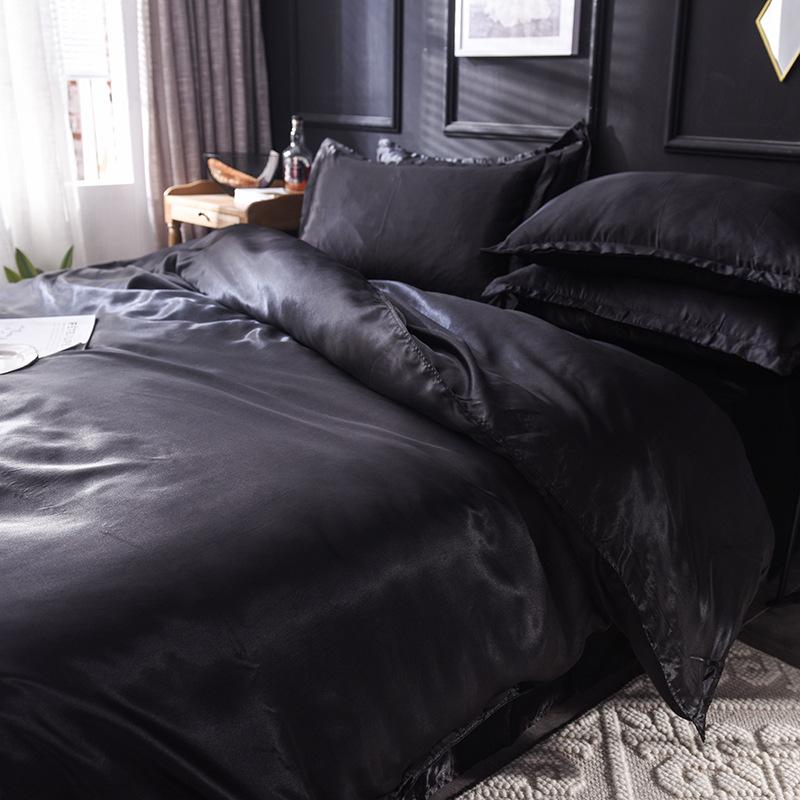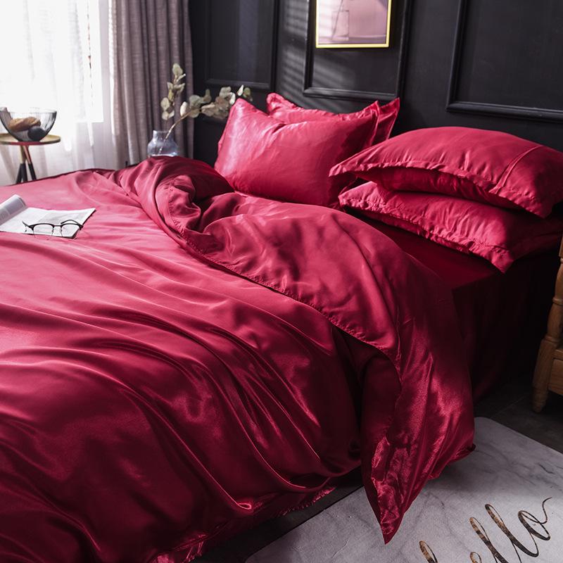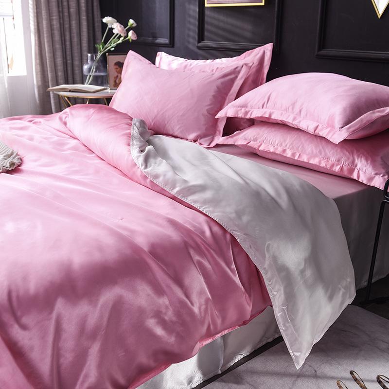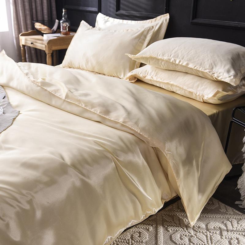 Funda de edredón individual de seda lavada con hielo de color sólido simple de primavera y verano, funda de edredón de seda de hielo para dormir desnudo con sensación fresca, venta al por mayor de fábrica