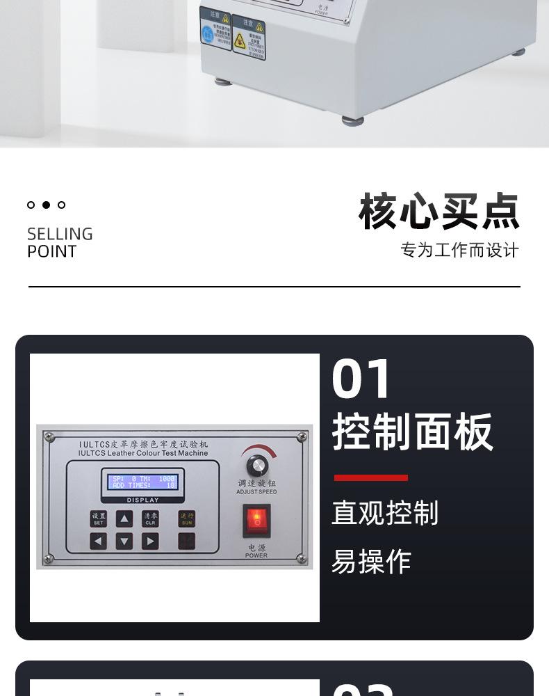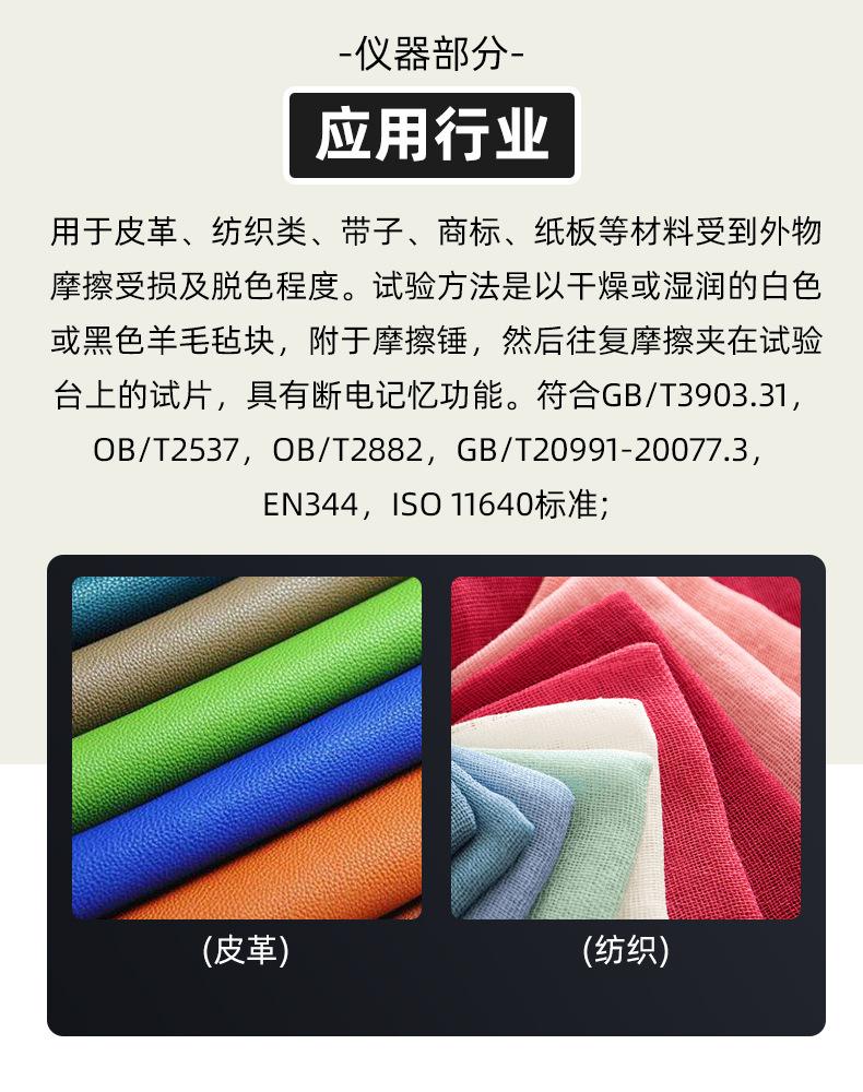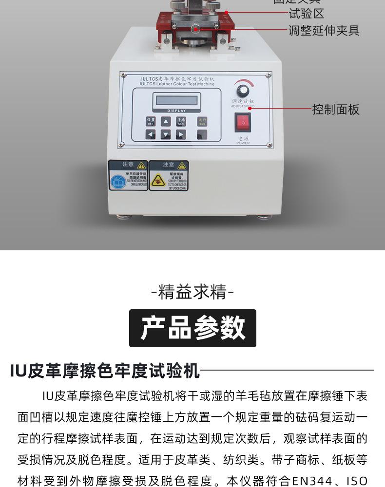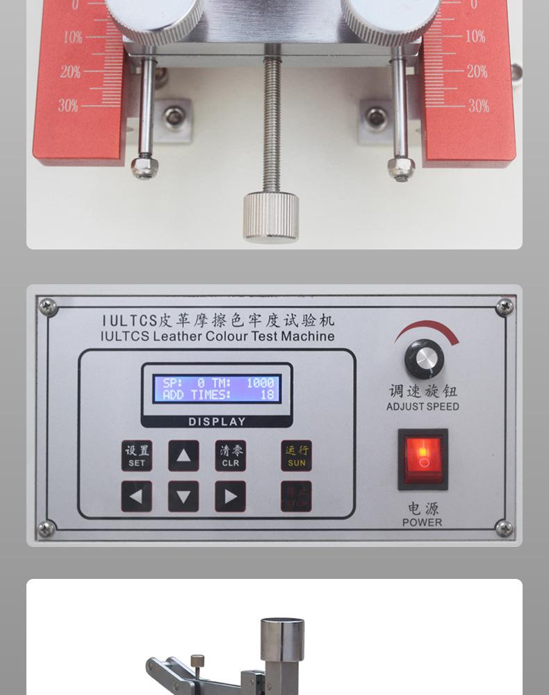 Probador de solidez del color al frotamiento de cuero IU, material textil de PU, probador de decoloración en húmedo y seco, banco de pruebas de resistencia a la abrasión