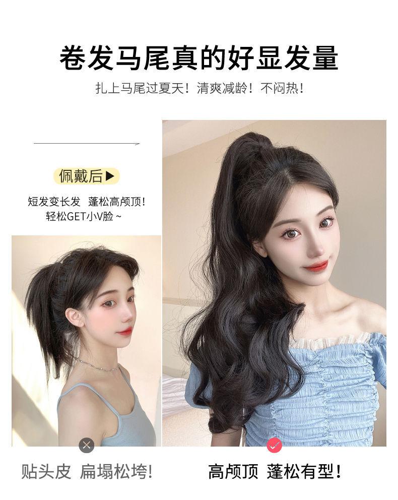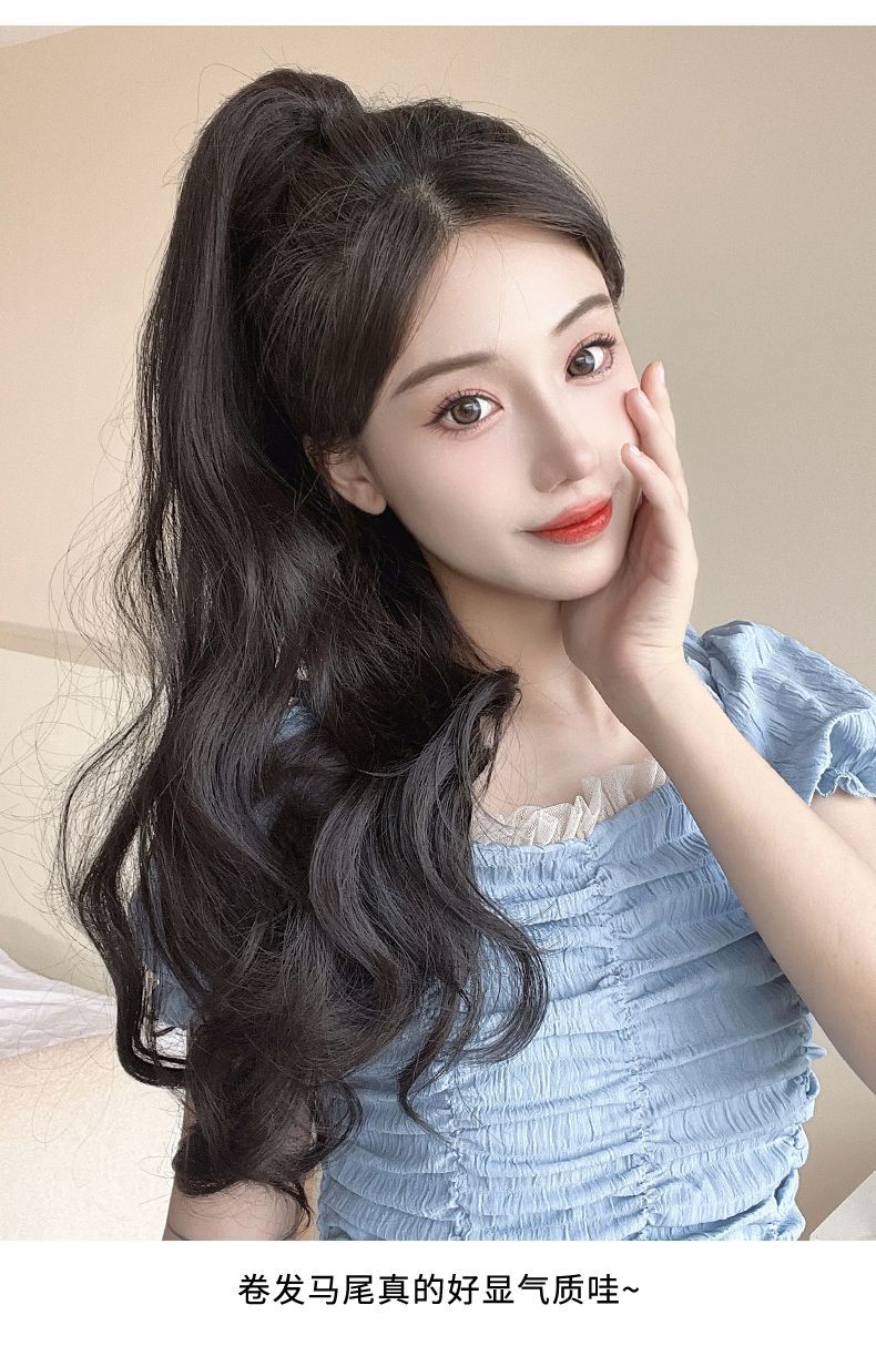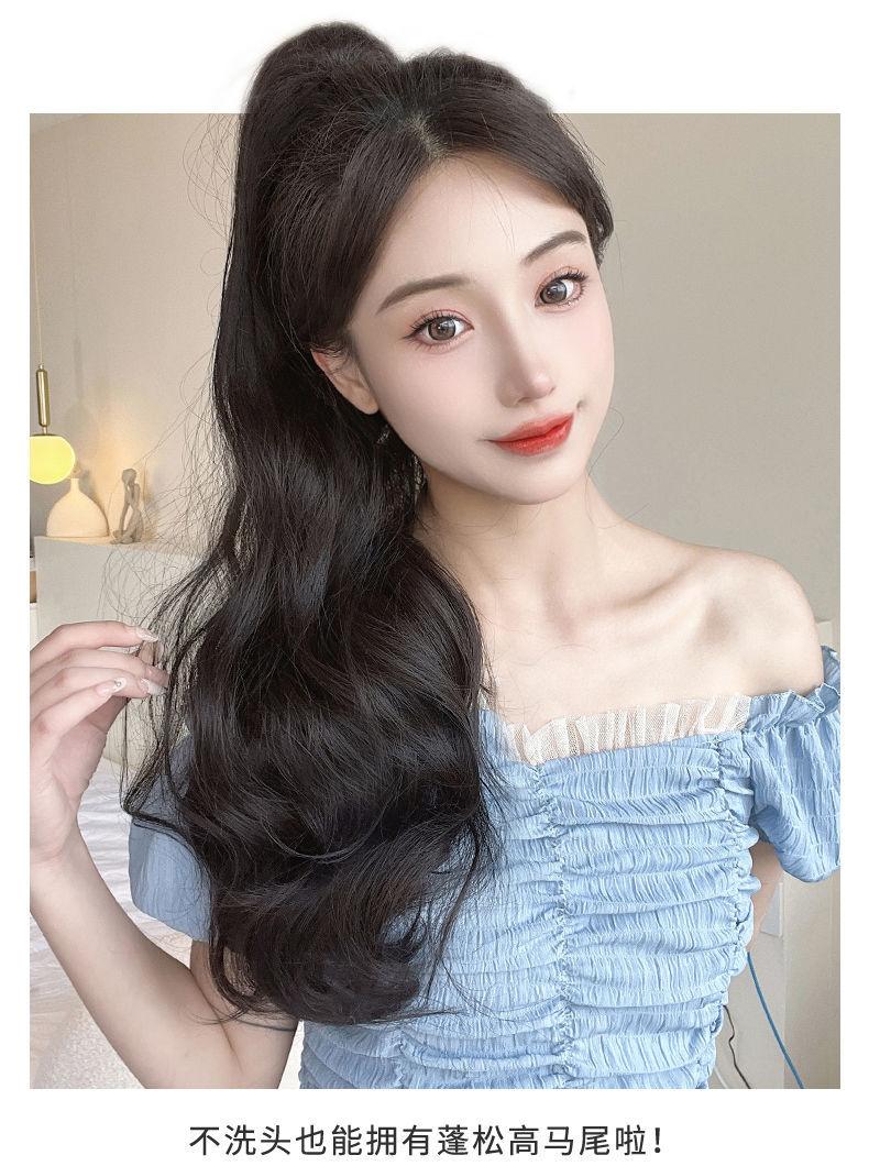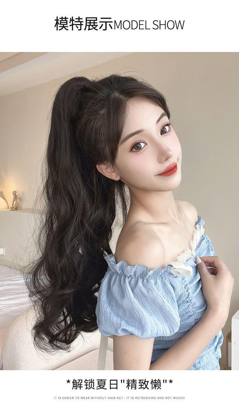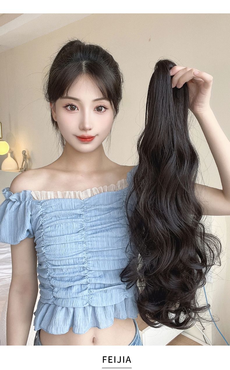 Peluca Ruolan para mujer, con pinza para sujetar, cabello largo y rizado, cola de caballo artificial, cola de caballo alta, peluca de onda grande natural de moda, cola de caballo