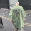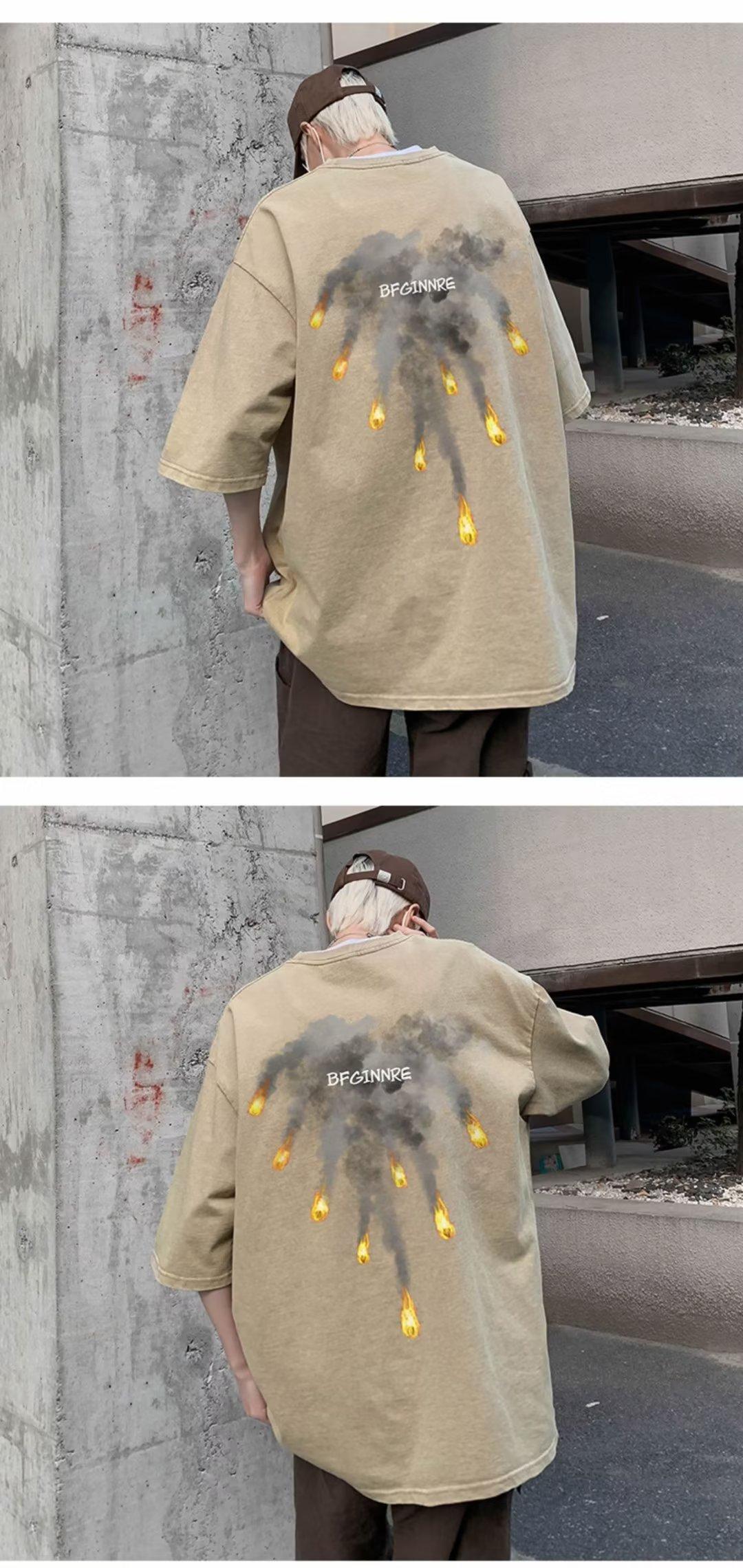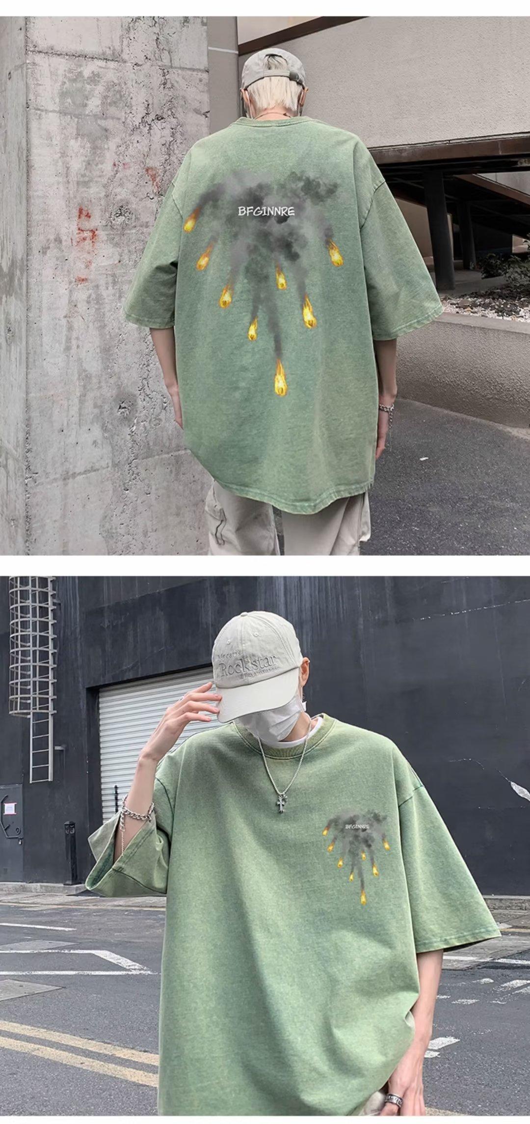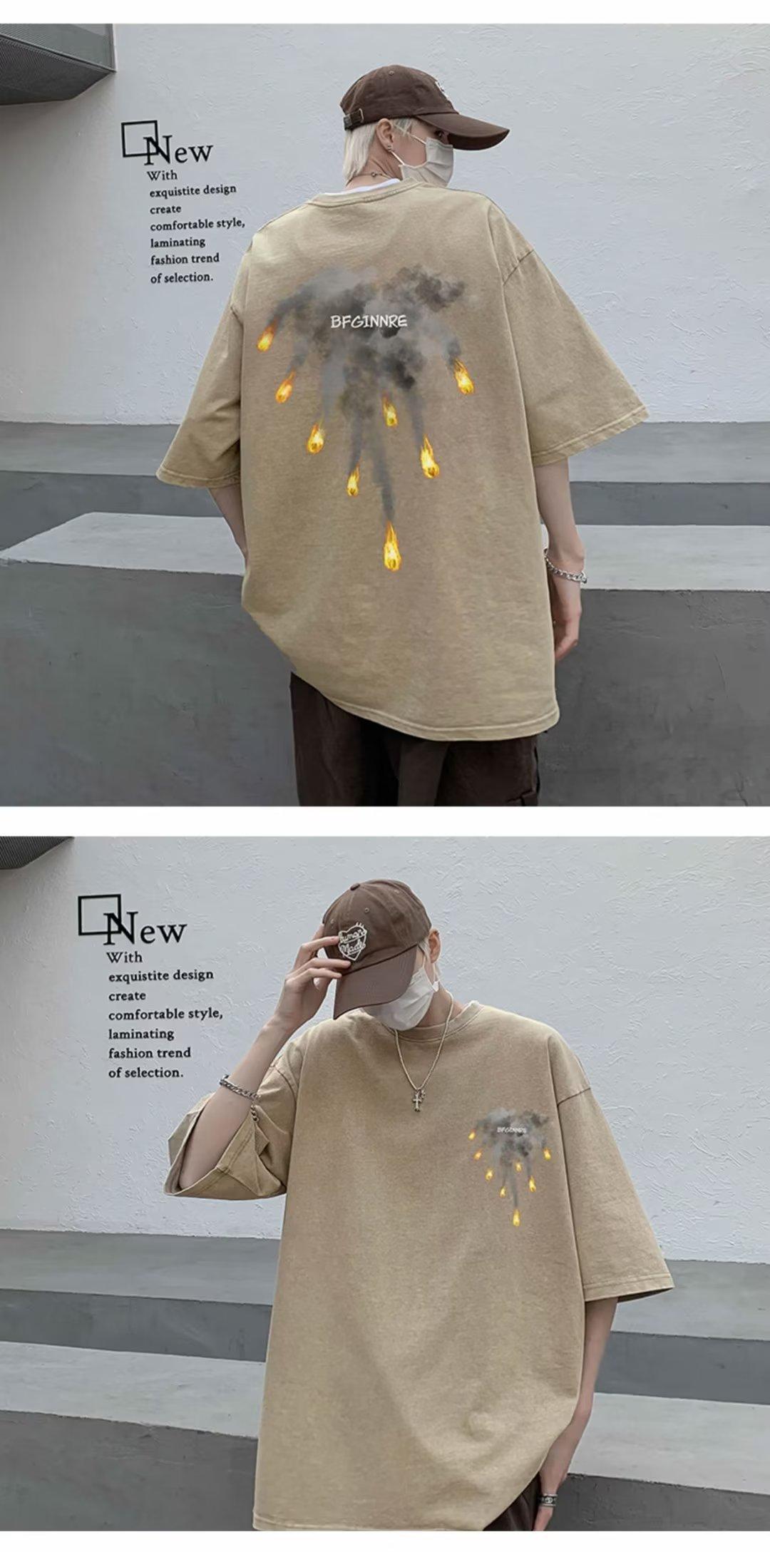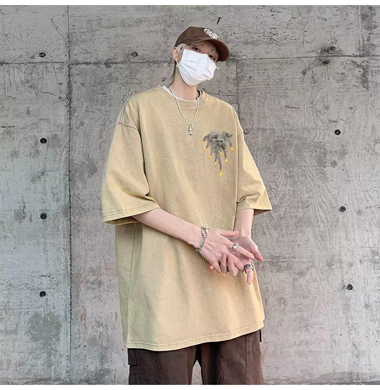 Camiseta de manga corta para hombre, marca de moda retro americana, ropa de algodón pesado, camiseta de manga media holgada de talla grande.