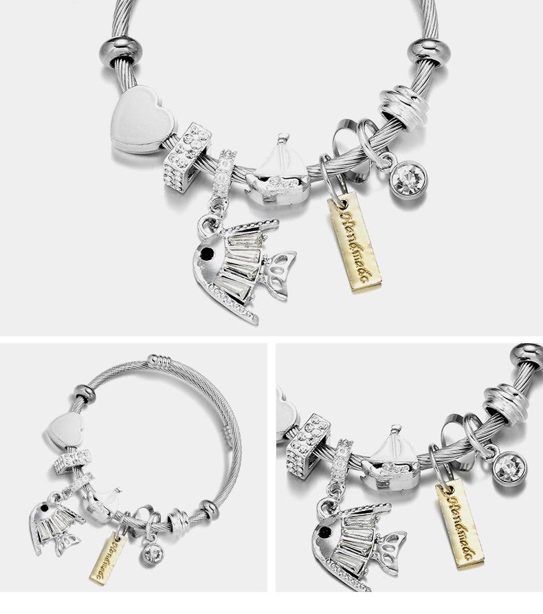 Compra Pulsera de concha marina de primavera 2020 de acero de titanio con viento, pulsera ajustable de alambre de acero con pez golondrina, ventas directas de fábrica, envío de una pieza al por mayor en Joom.pro