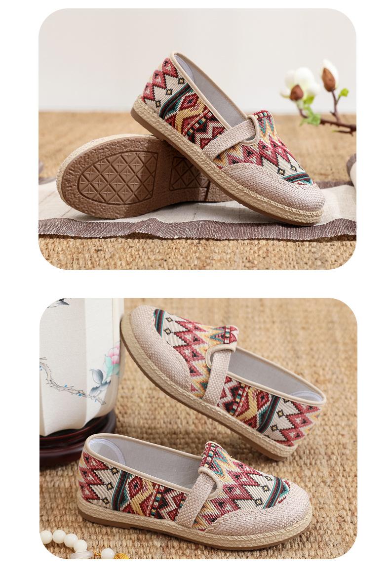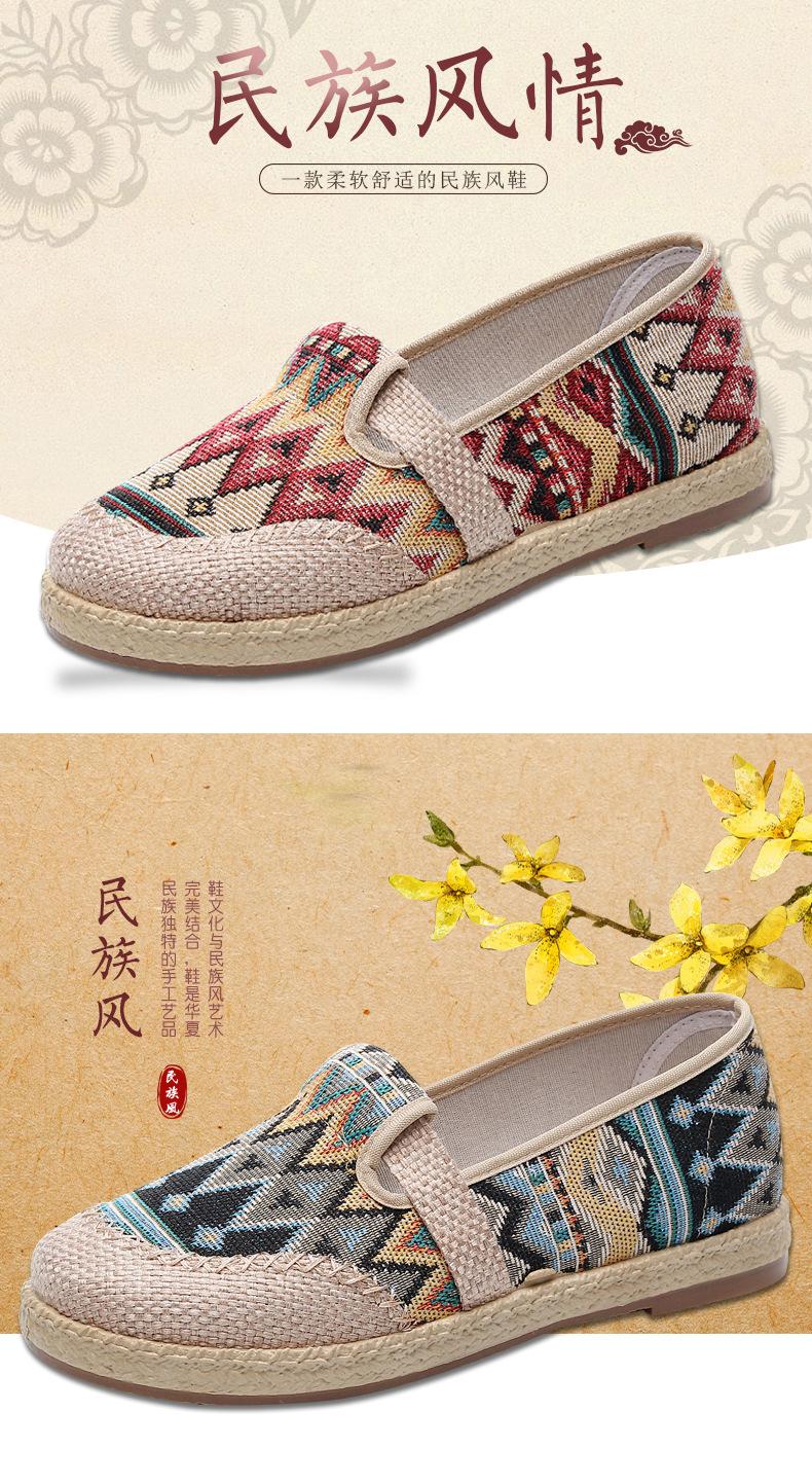 Nuevos Zapatos de Tela de Primavera de Beijing Estilo Étnico Zapatos de Una Capa Cómodos Combinan con Todo Antideslizantes Modernos Suela Suave Transpirables Zapatos Planos de Lona