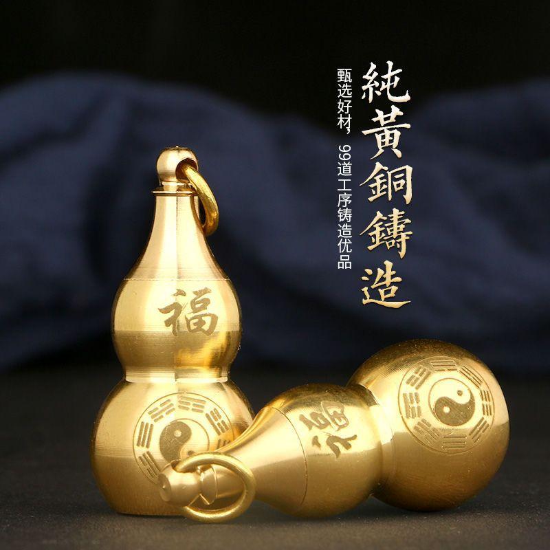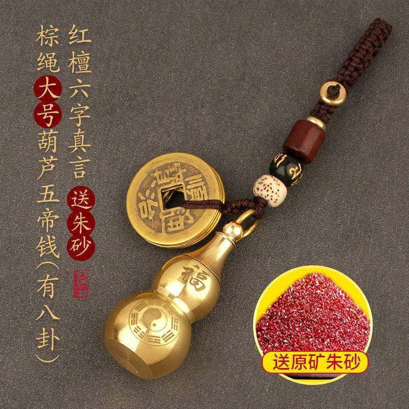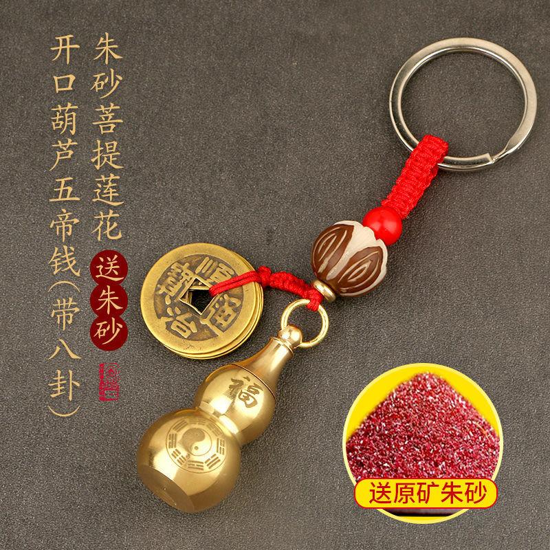 Llavero con colgante de calabaza de cobre puro con cinco monedas de emperador, apertura hueca, cinabrio, polvo de piedra original, monedas de cobre de cinco emperadores para hombres y mujeres