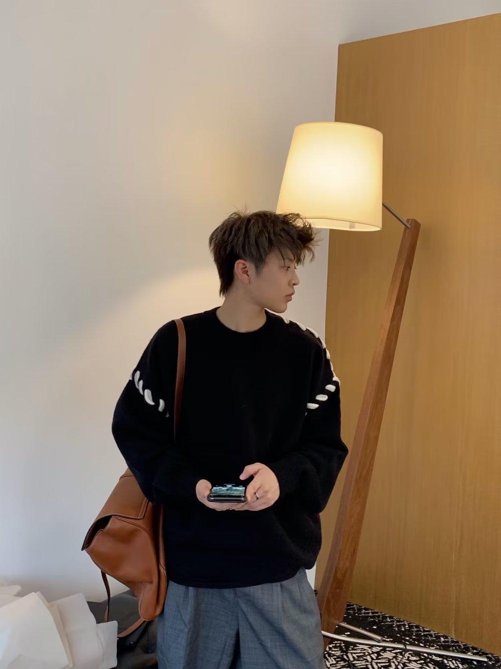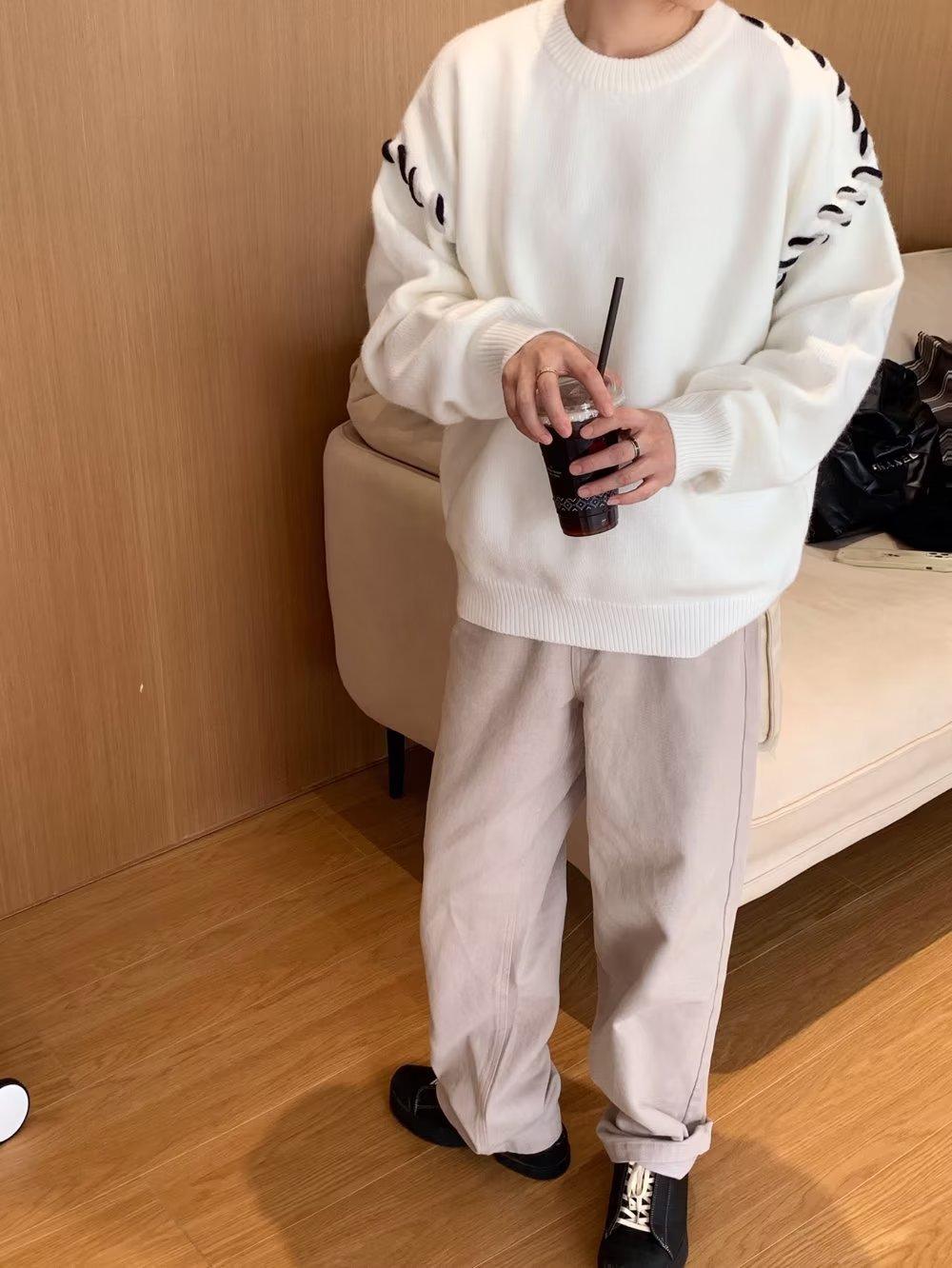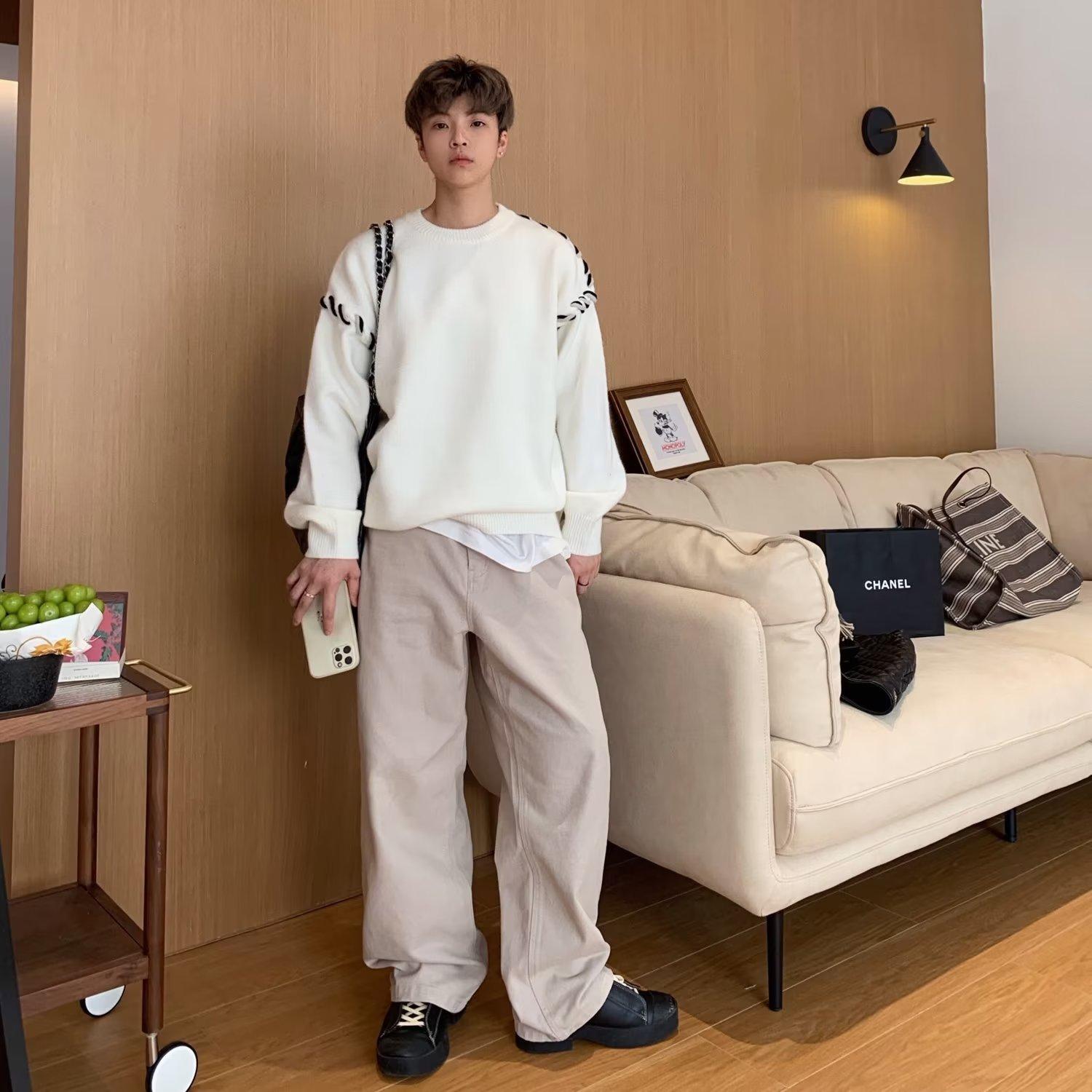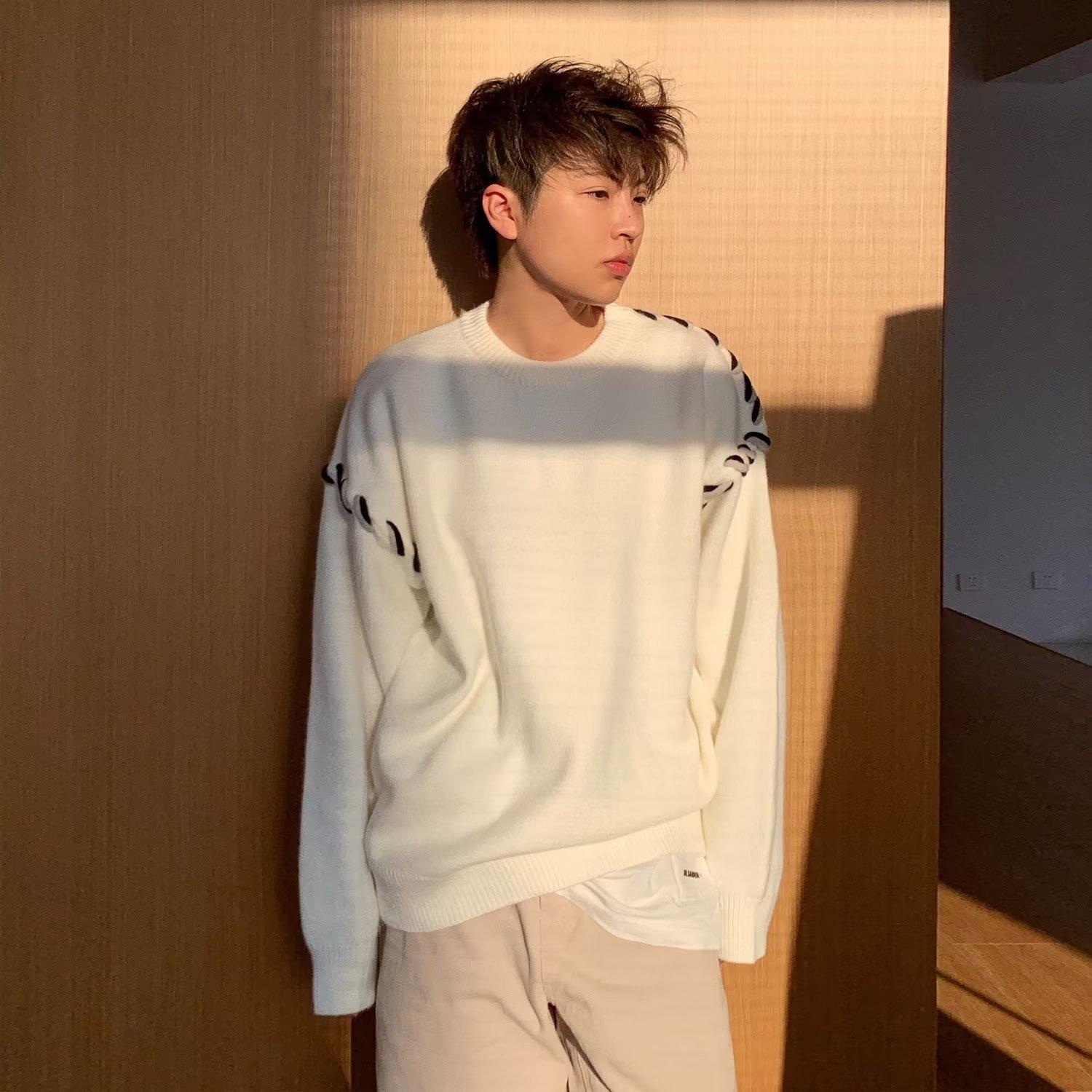 Suéter de estilo perezoso de diseño, abrigo tejido a mano, suéter a juego de colores, estilo americano vintage, estilo hip hop callejero avanzado para hombre.