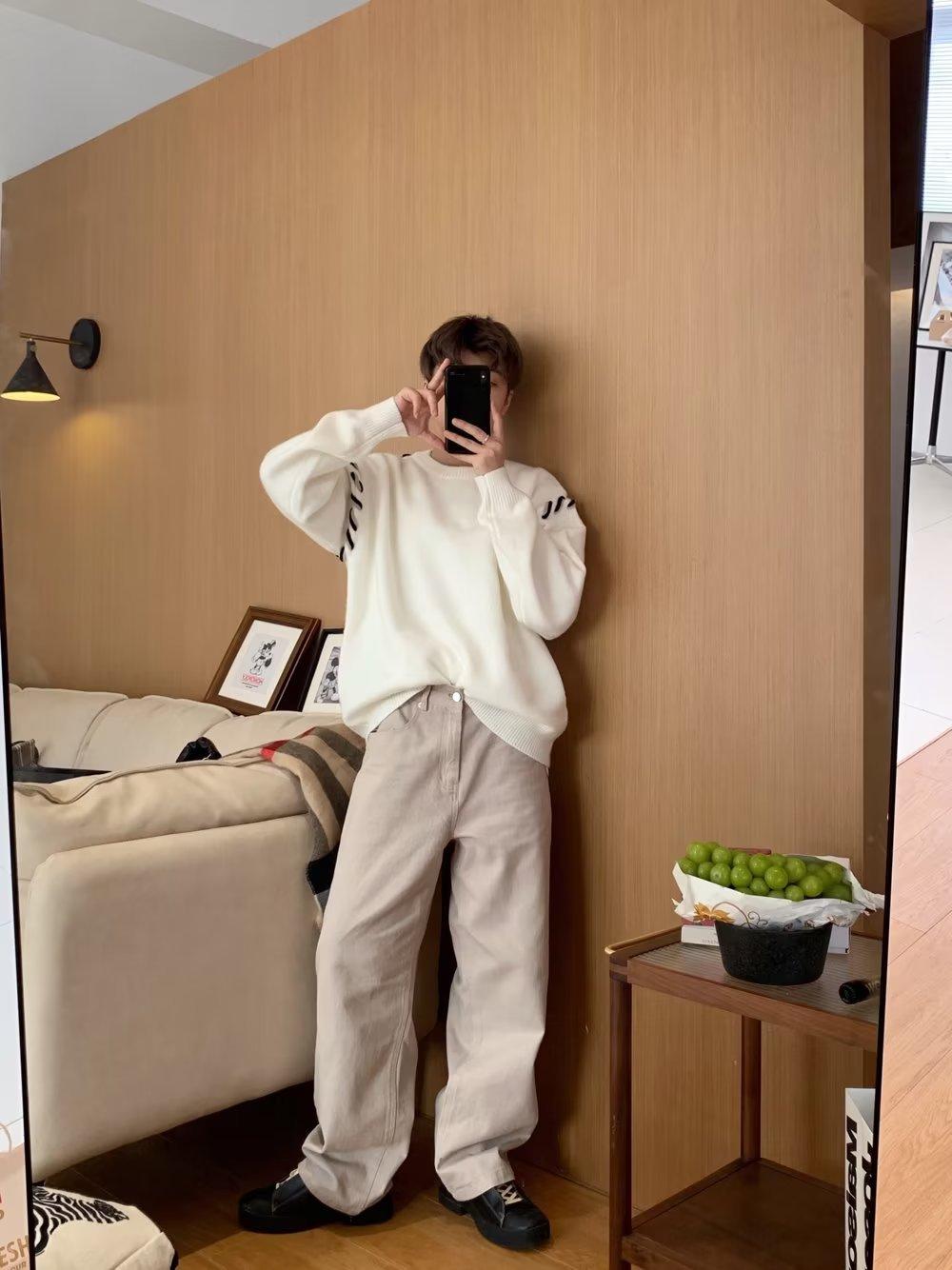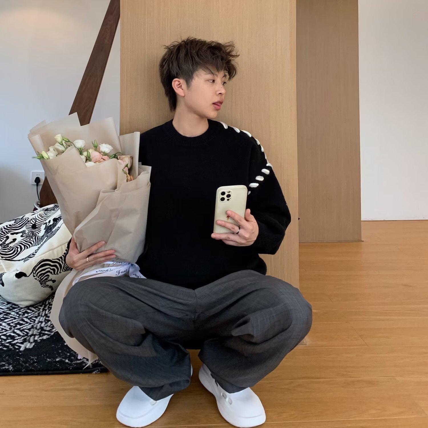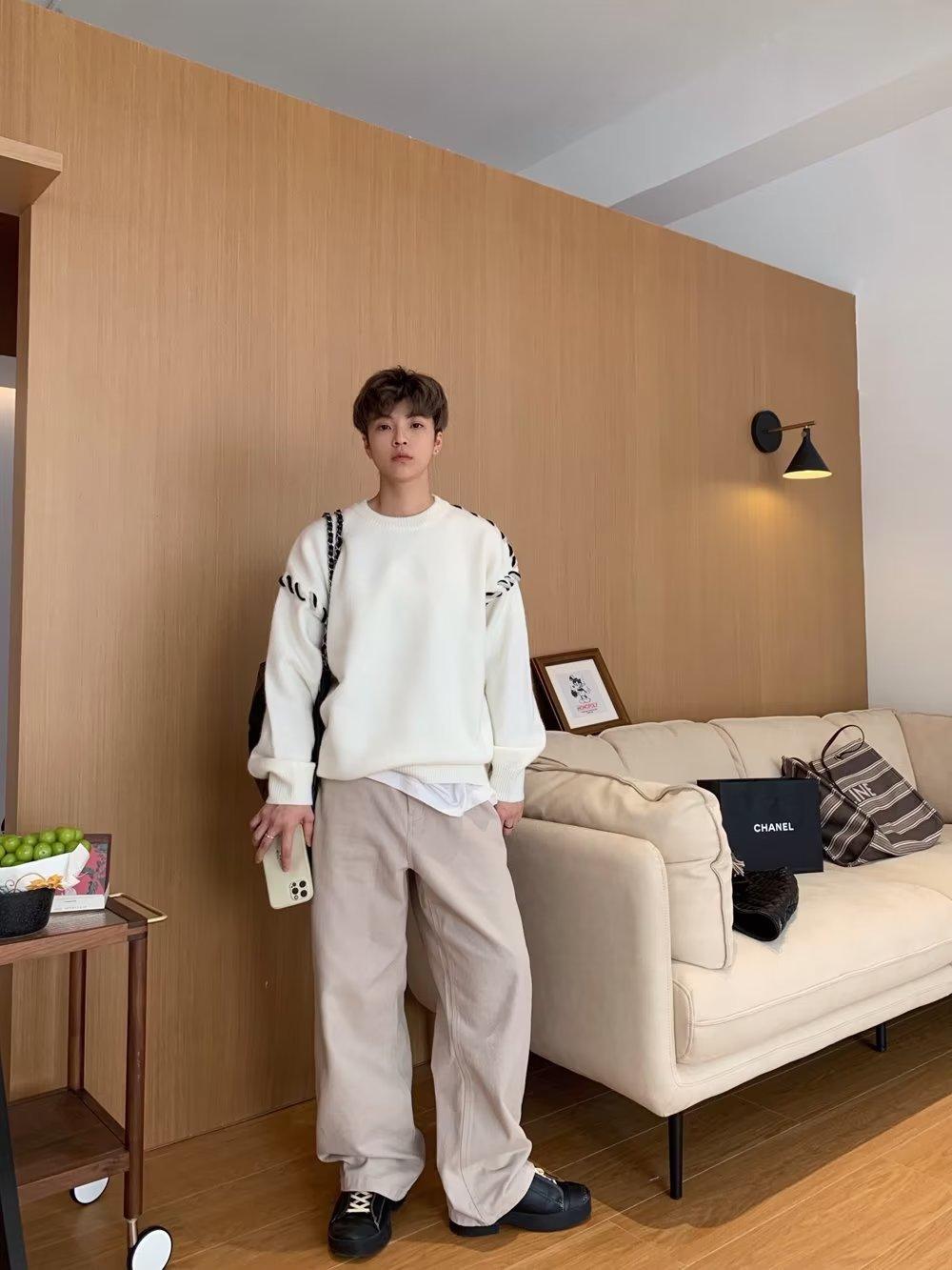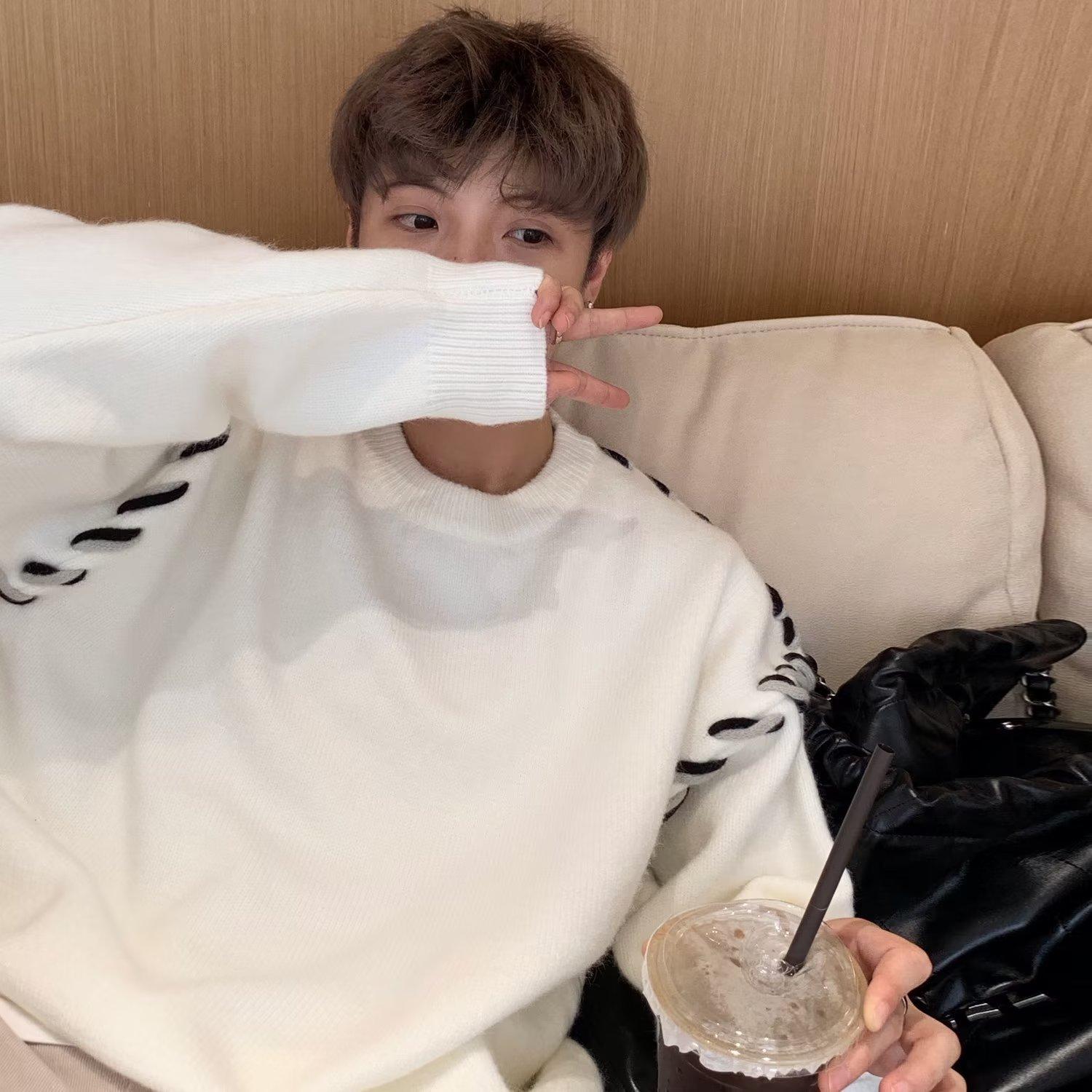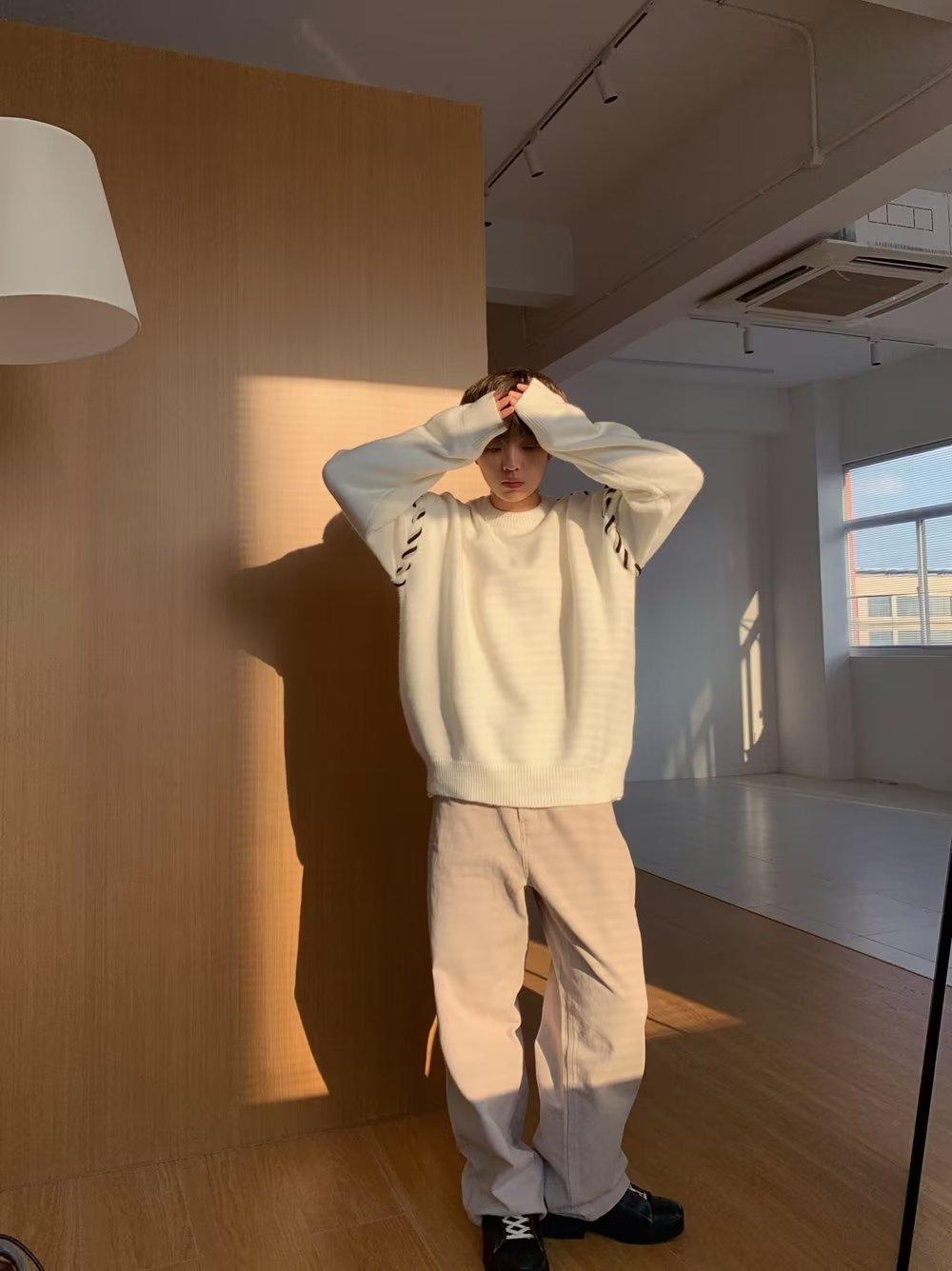 Suéter de estilo perezoso de diseño, abrigo tejido a mano, suéter a juego de colores, estilo americano vintage, estilo hip hop callejero avanzado para hombre.