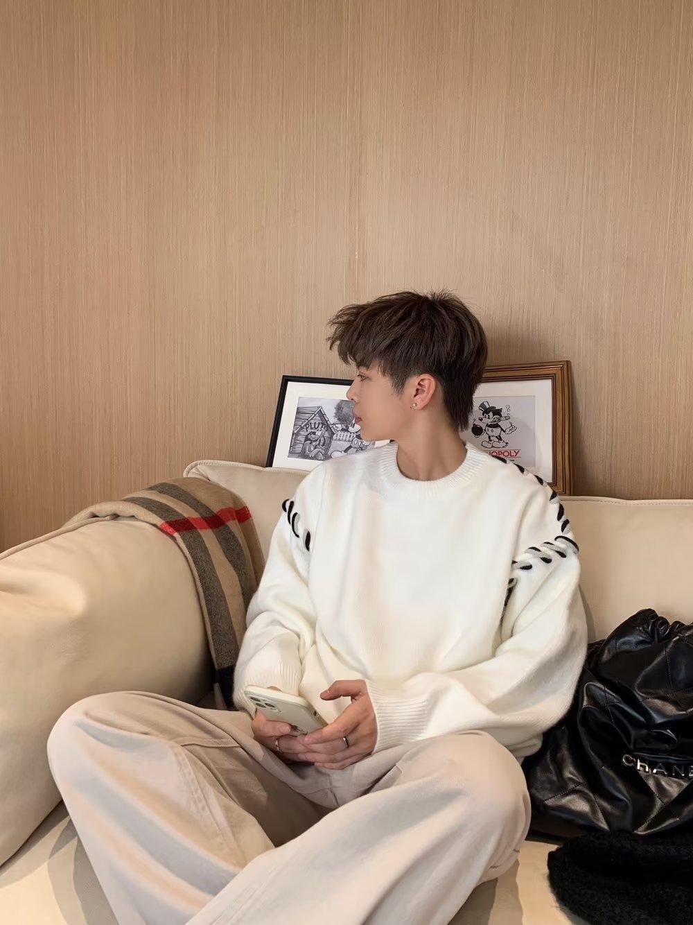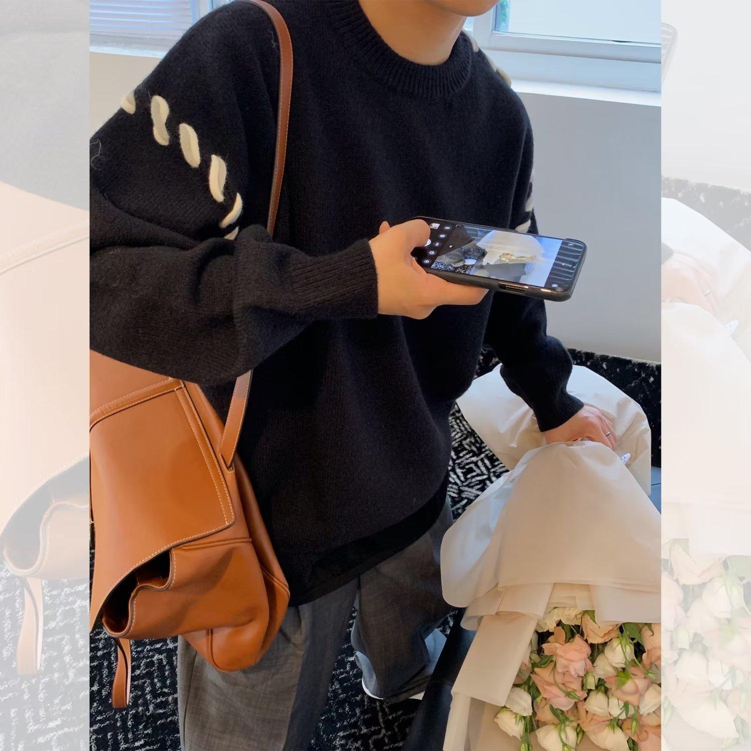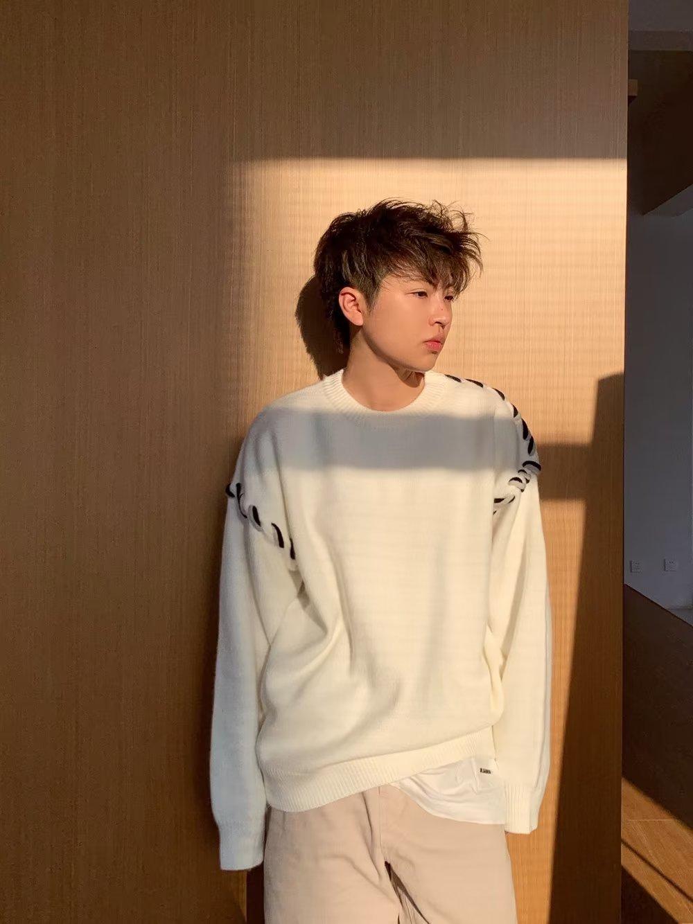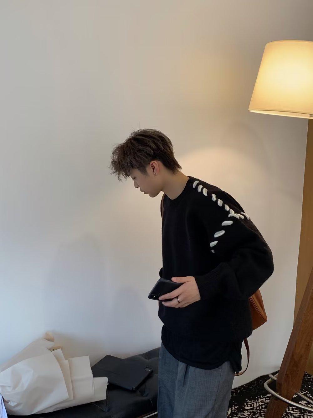 Suéter de estilo perezoso de diseño, abrigo tejido a mano, suéter a juego de colores, estilo americano vintage, estilo hip hop callejero avanzado para hombre.