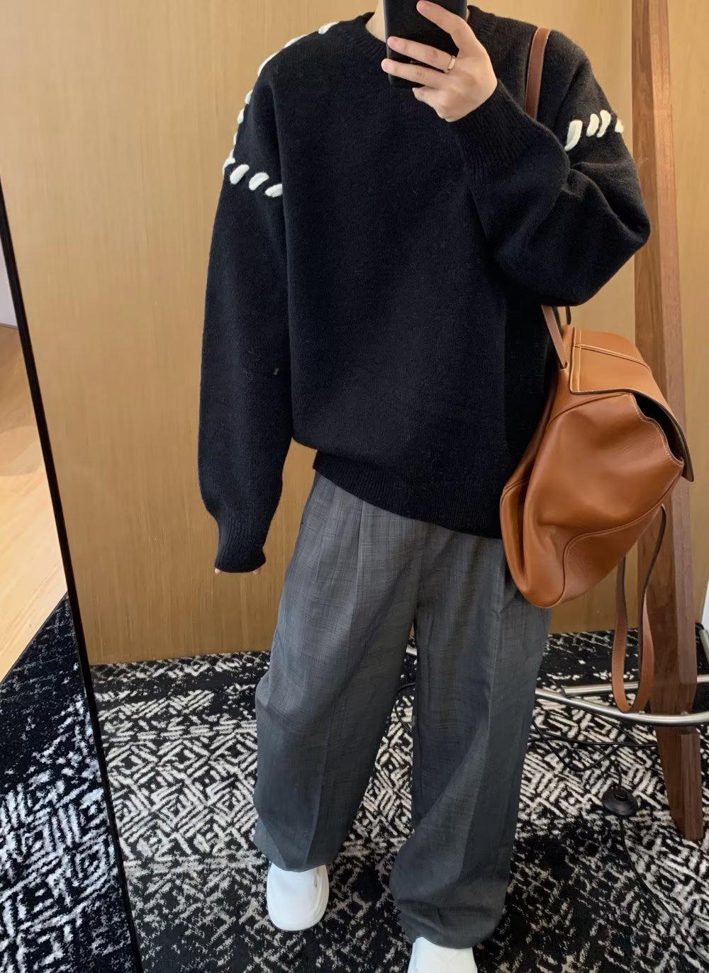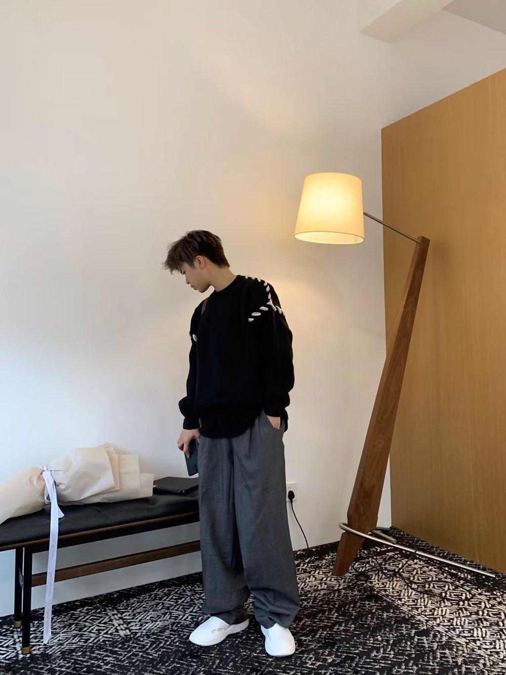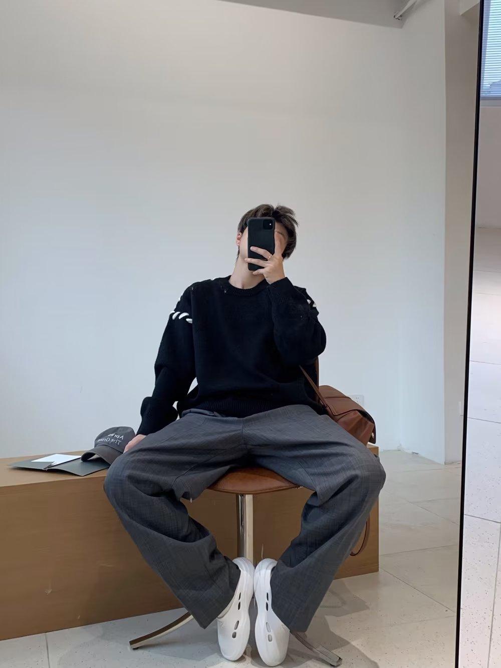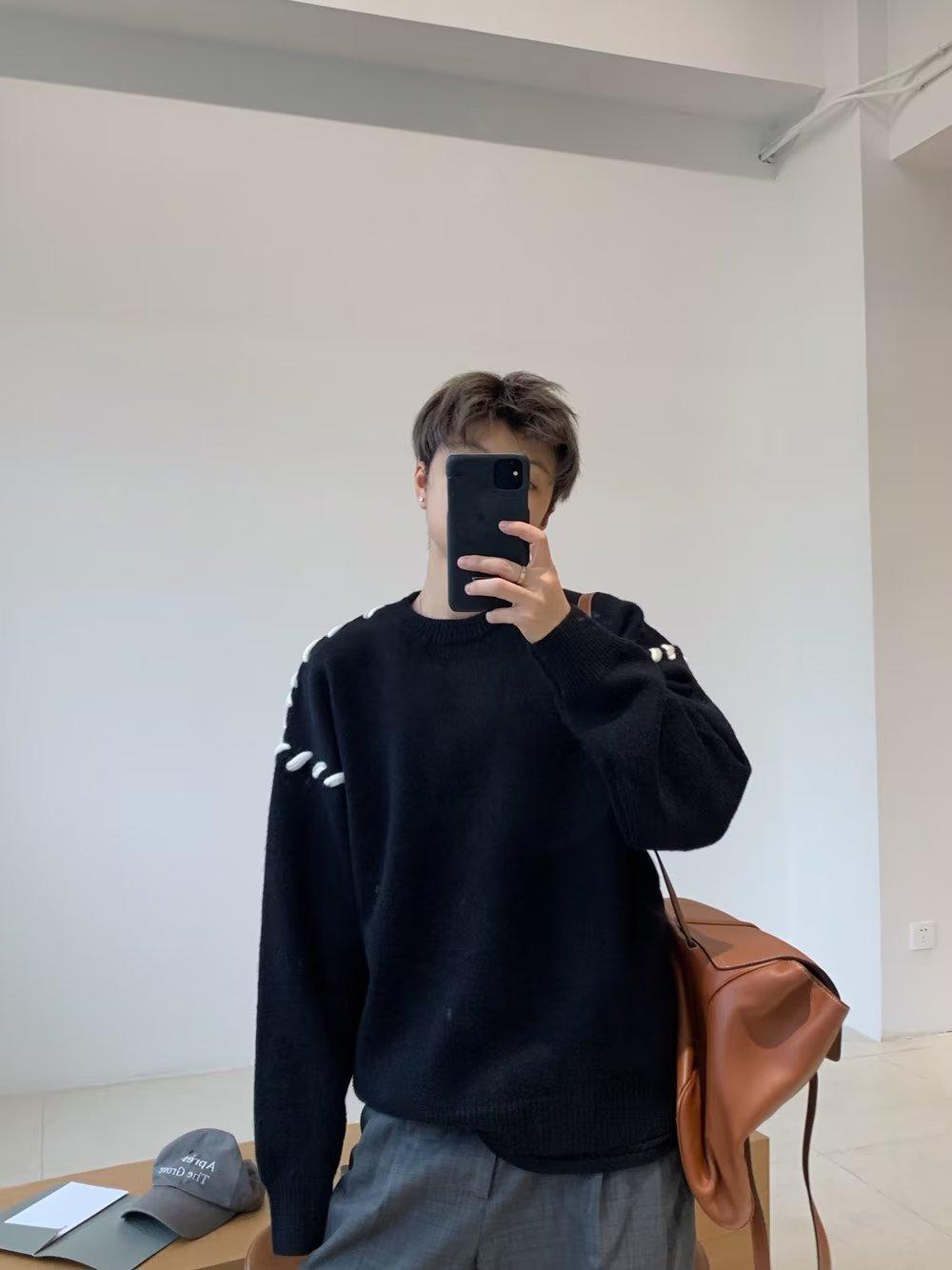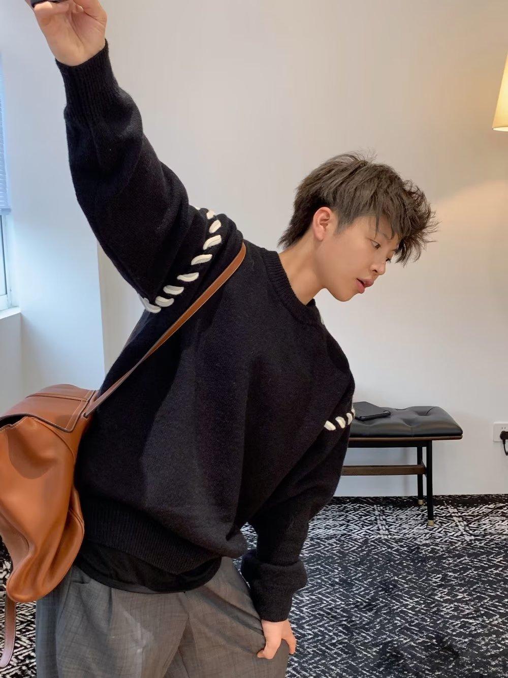 Suéter de estilo perezoso de diseño, abrigo tejido a mano, suéter a juego de colores, estilo americano vintage, estilo hip hop callejero avanzado para hombre.