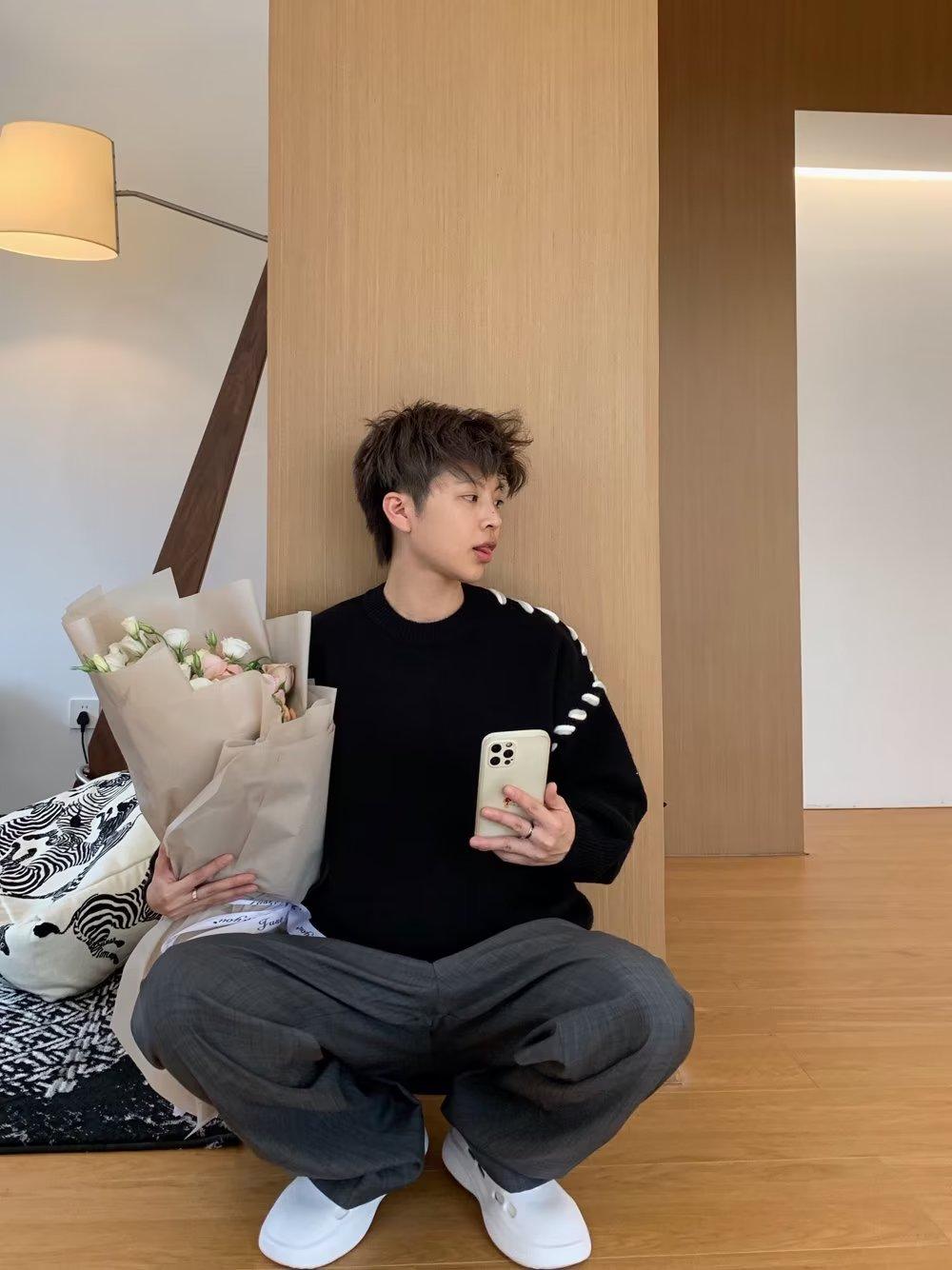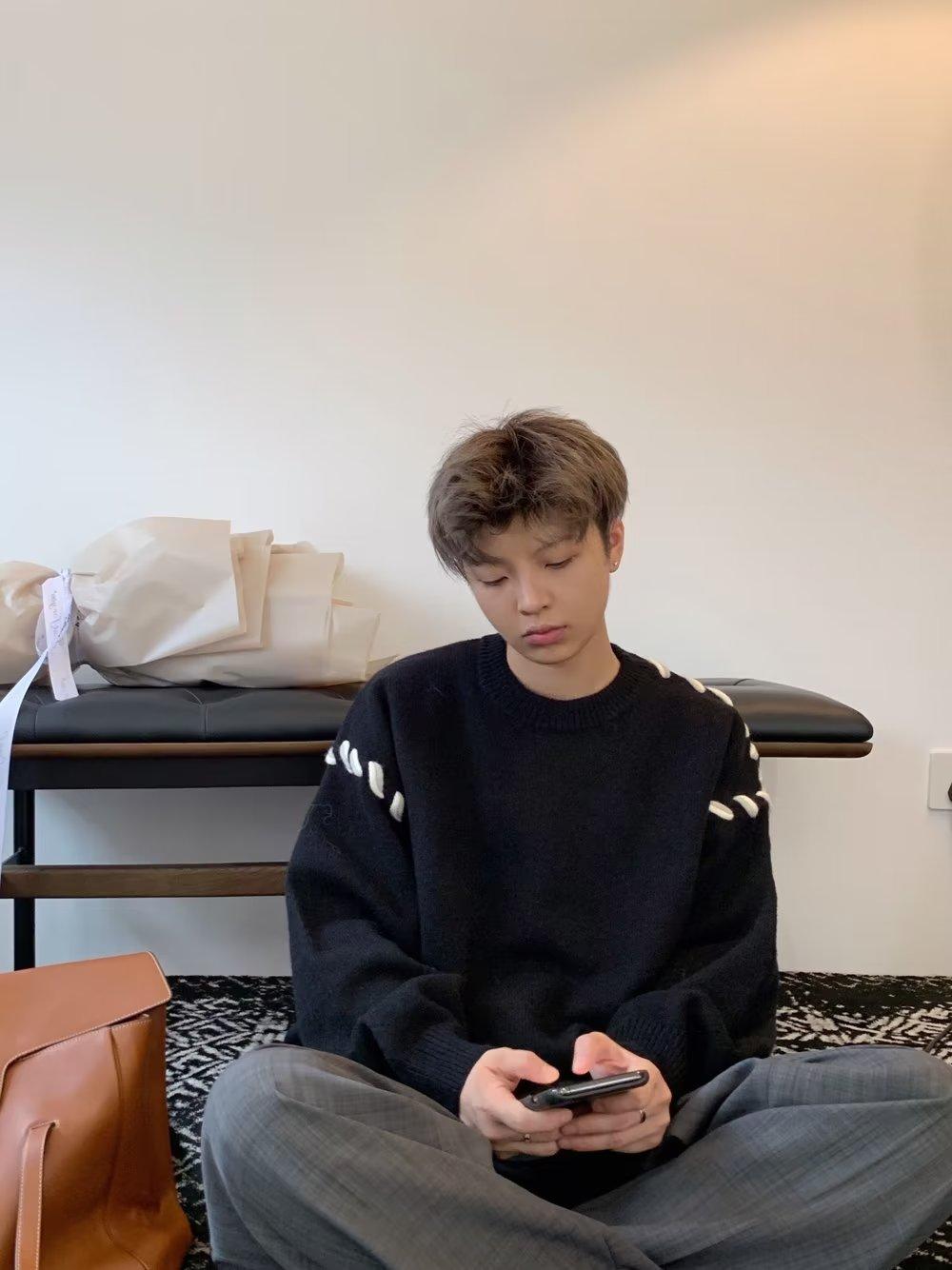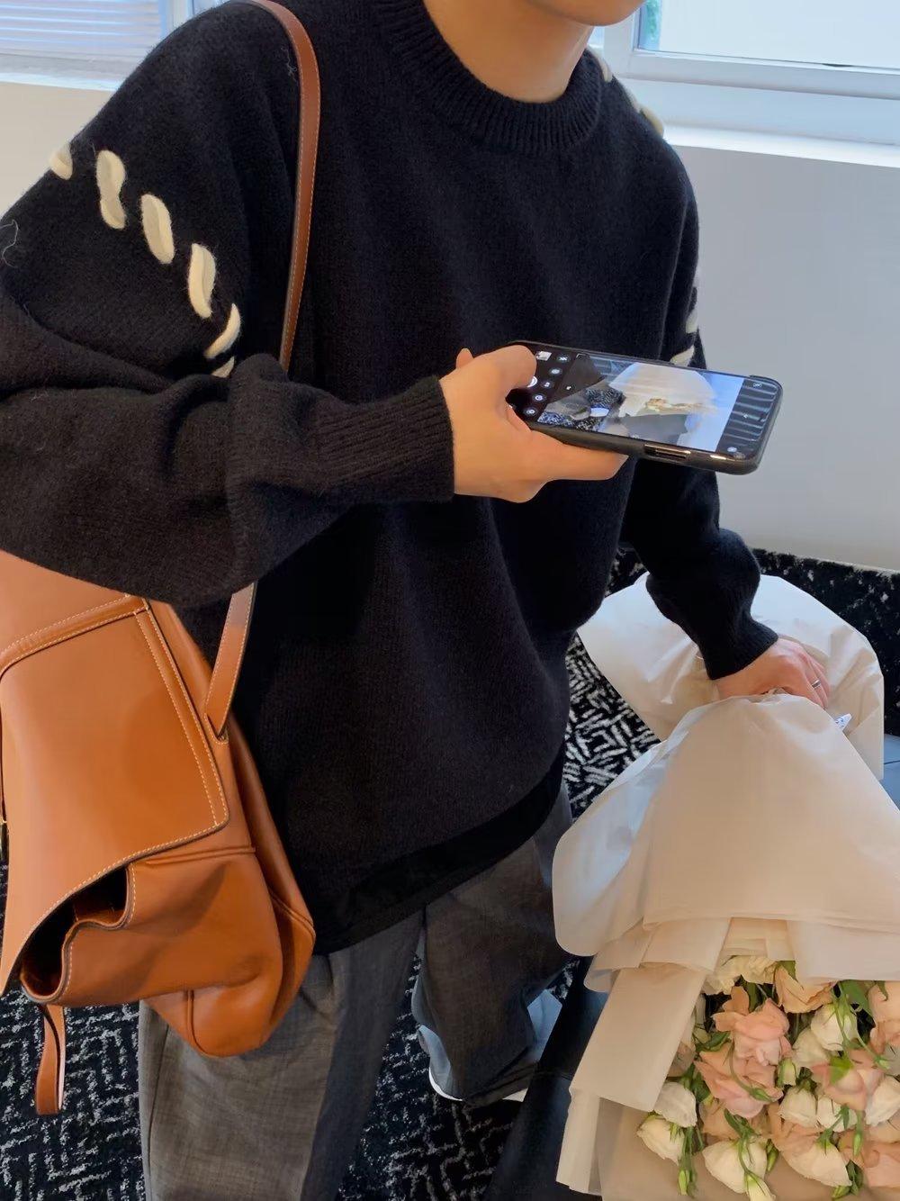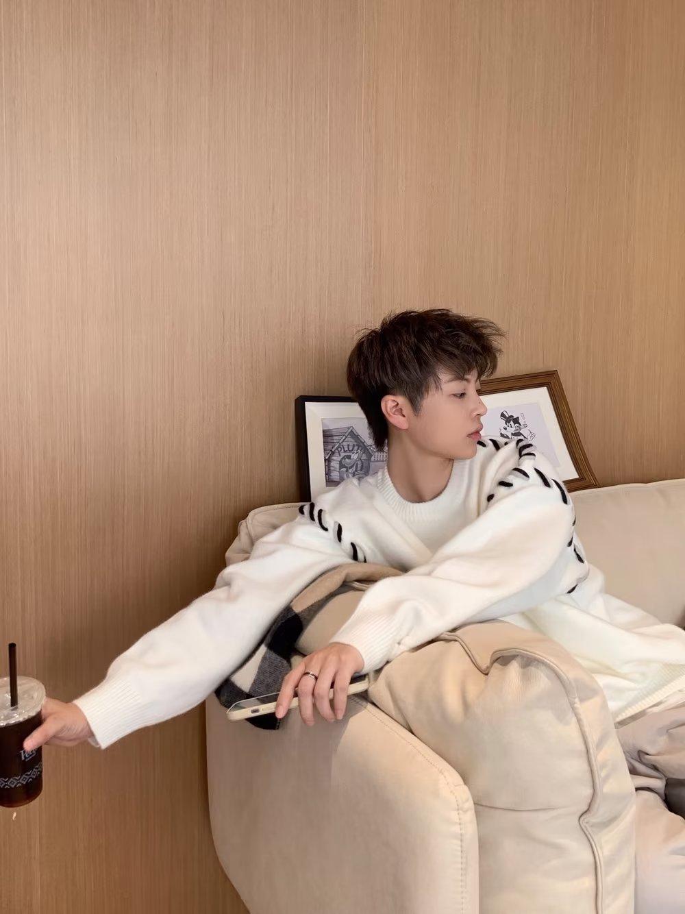 Suéter de estilo perezoso de diseño, abrigo tejido a mano, suéter a juego de colores, estilo americano vintage, estilo hip hop callejero avanzado para hombre.