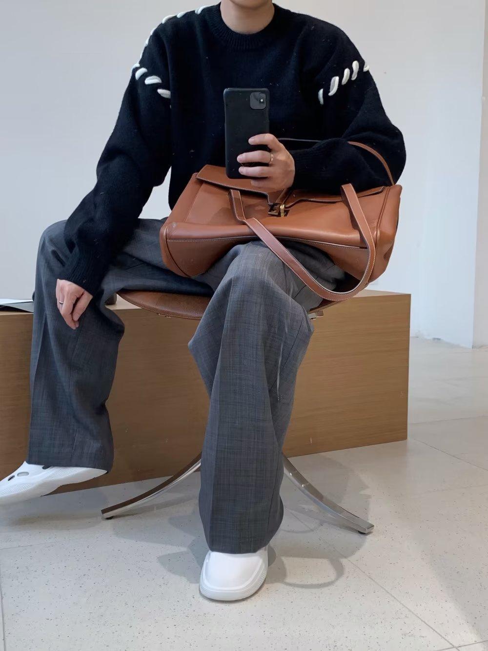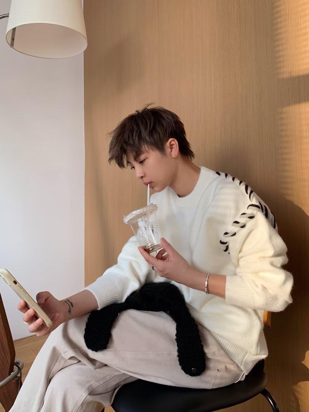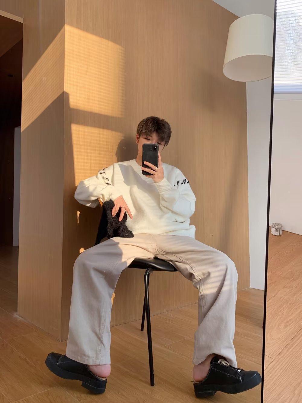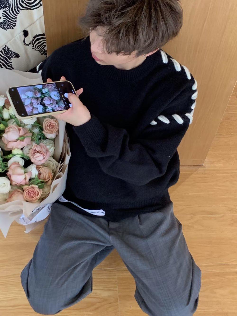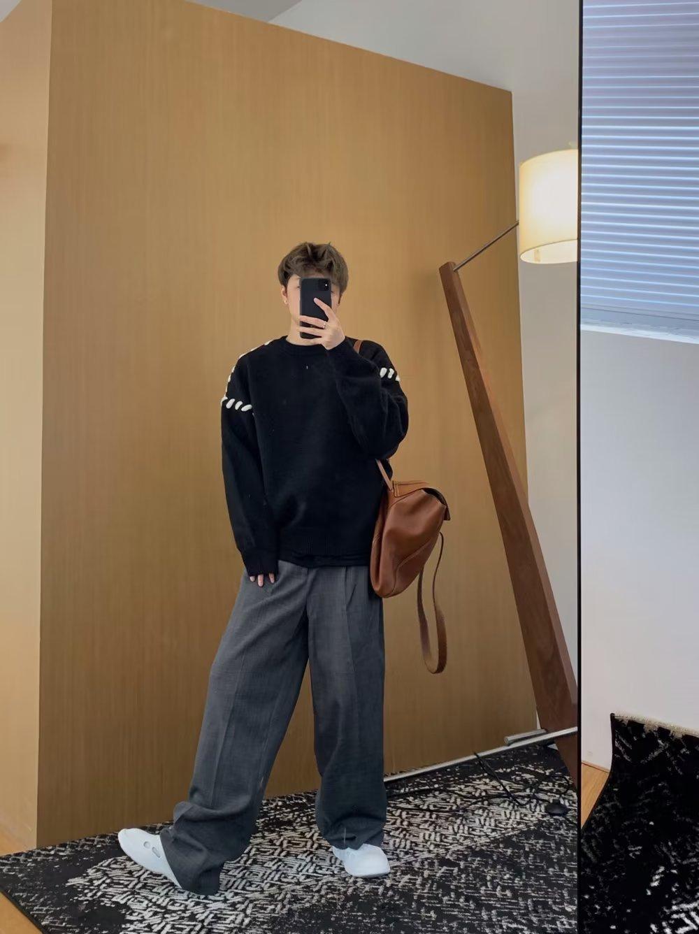 Suéter de estilo perezoso de diseño, abrigo tejido a mano, suéter a juego de colores, estilo americano vintage, estilo hip hop callejero avanzado para hombre.