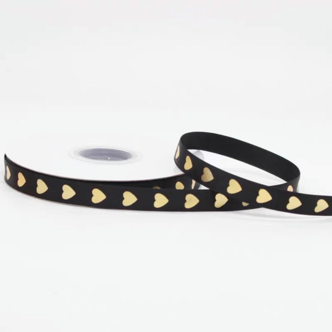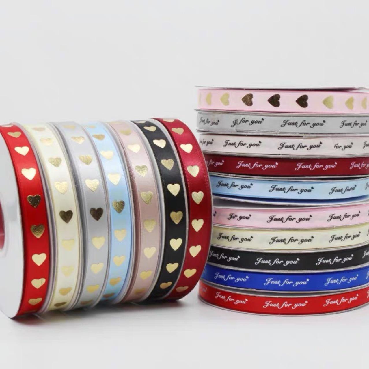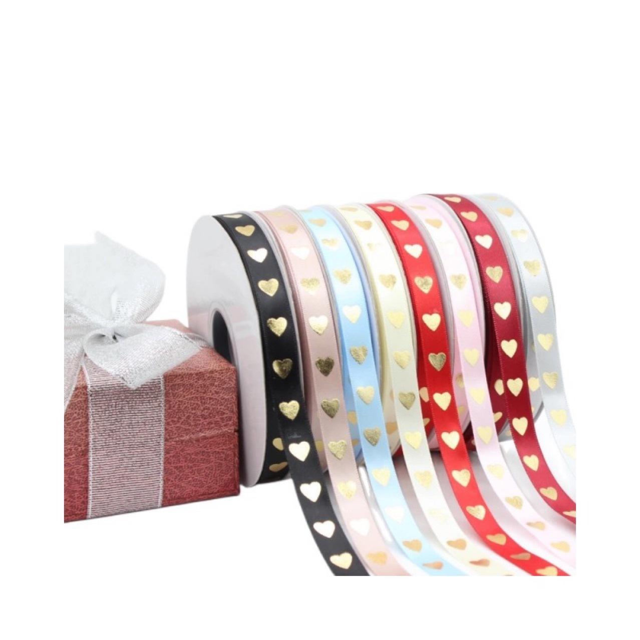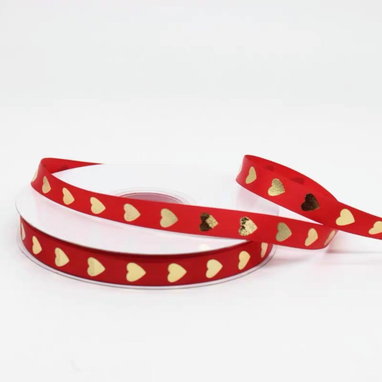 Lote de una pieza Cinta dorada en forma de corazón de 1,2 cm Cinta de poliéster encriptada Cinta para envolver regalos de flores de San Valentín
