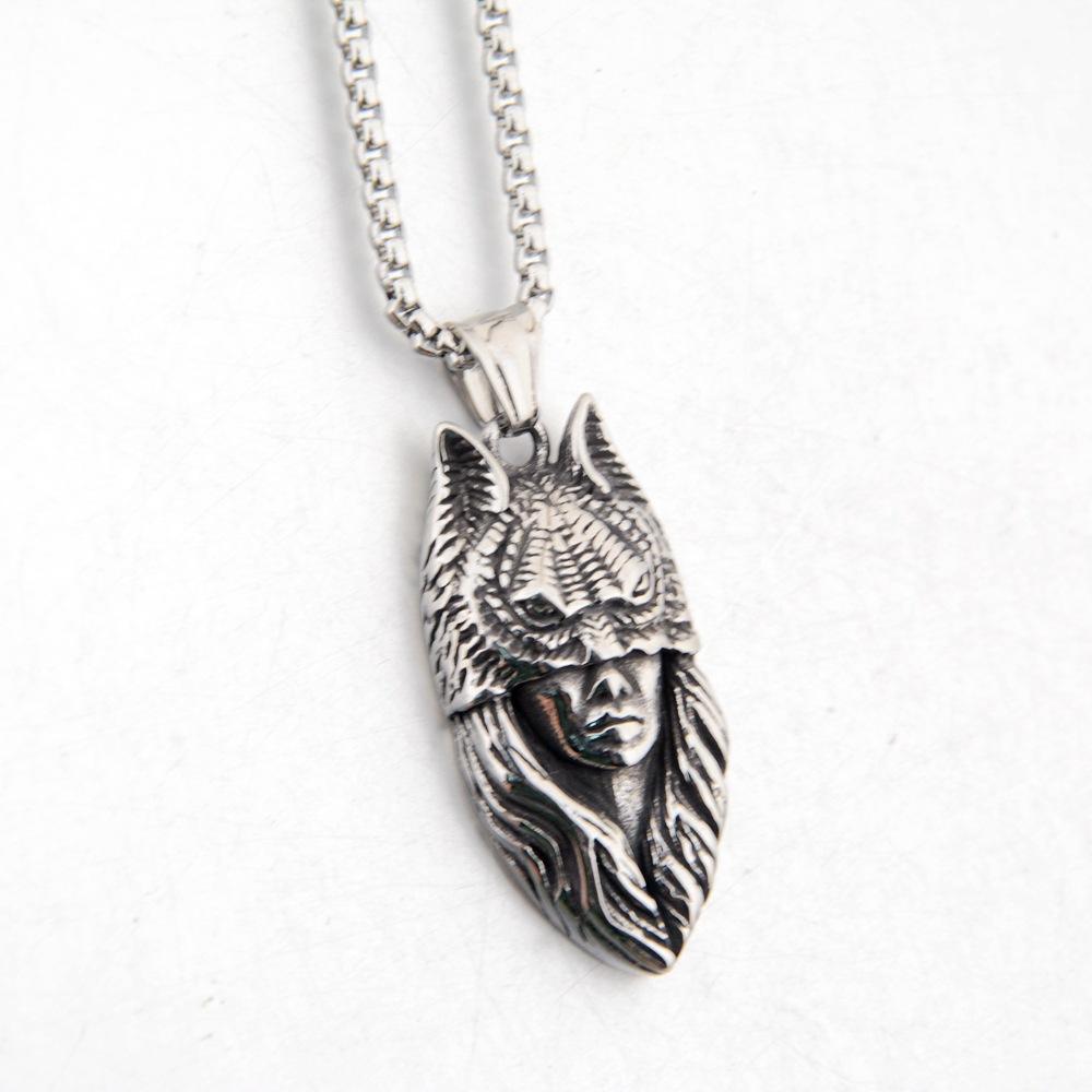 Colgante de hombre lobo vintage de acero de titanio combinable con todo, estilo hip hop, popular y a la moda, collar informal personalizado para hombres y mujeres.