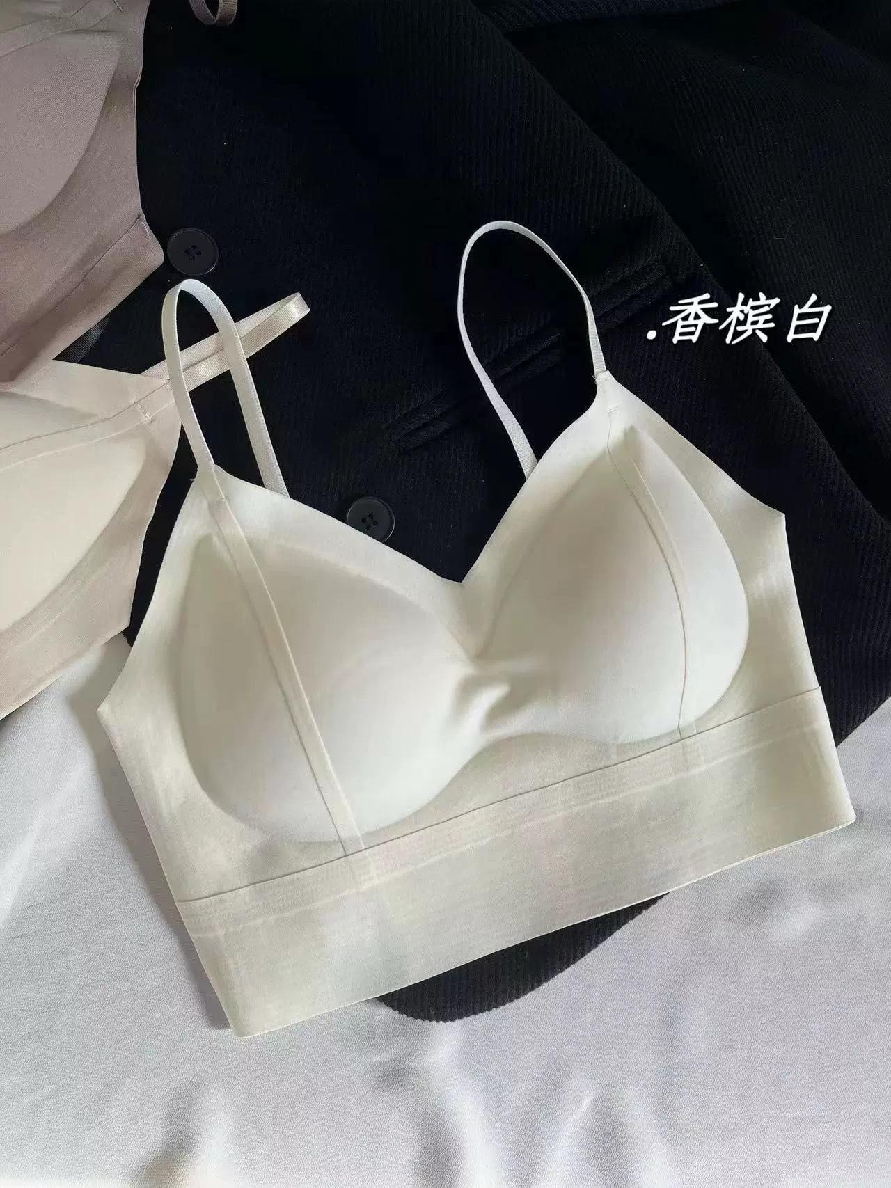 Nueva ropa interior sin costuras con cuello en V para mujer, cómoda, fina, con tirantes de seda helada, hermosa parte superior de tubo con espalda descubierta, camisola sexy
