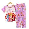 Pijamas para niñas transfronterizos, novedad de verano de 2024, pantalones finos de manga corta con dibujos animados, ropa de casa de dos piezas para niñas y niños.