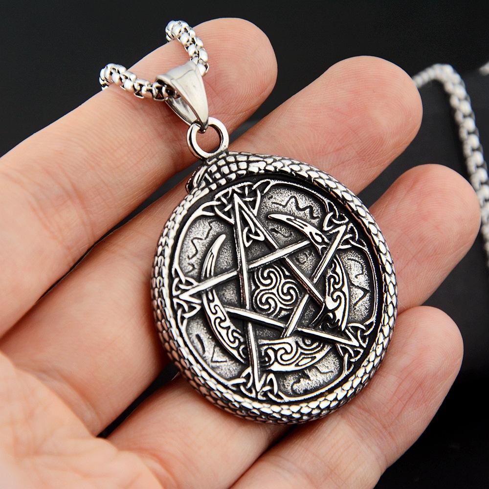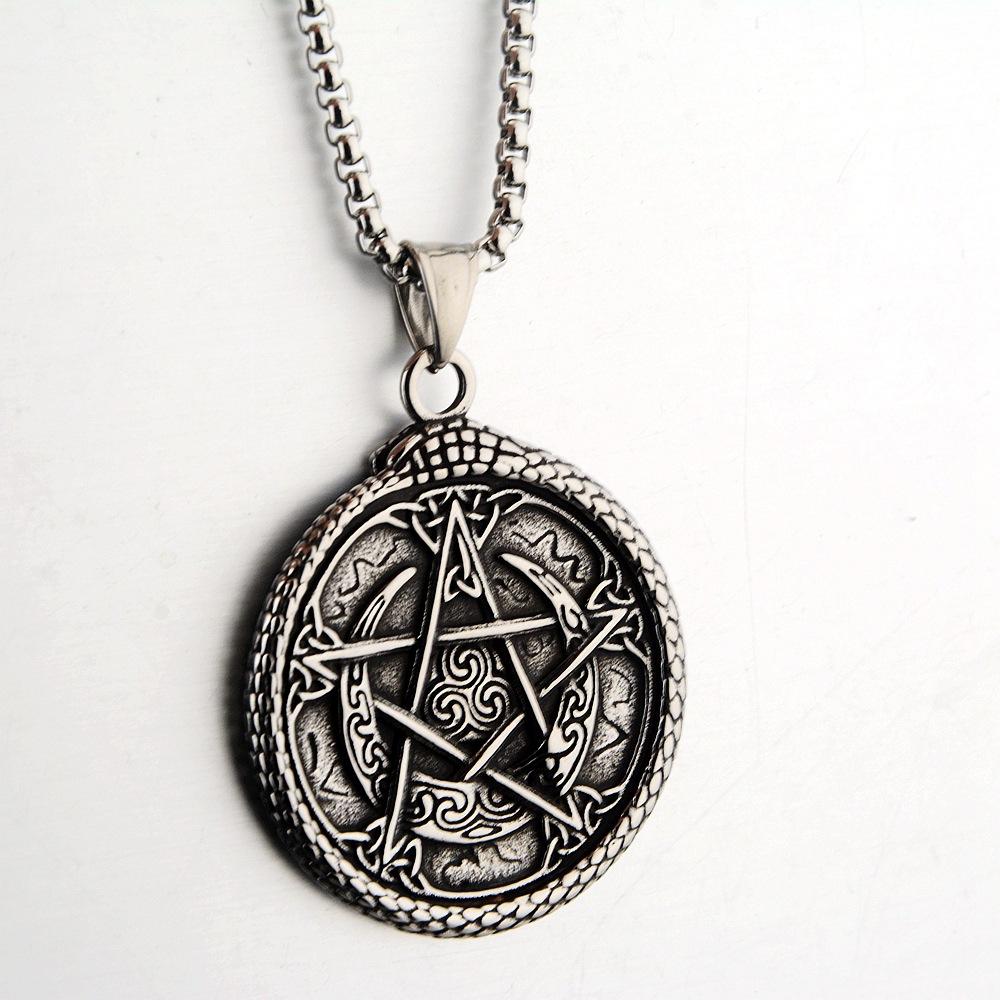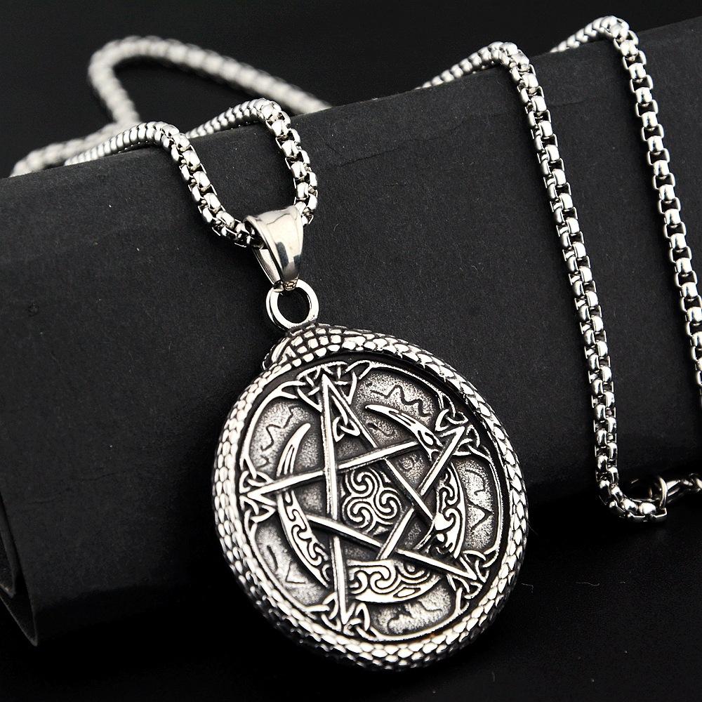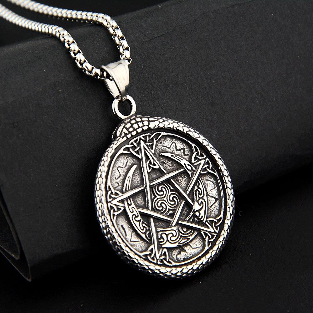 Totem five-pointed star round single pendant, Totem five-pointed star round card + 60cm, Totem five-pointed st...