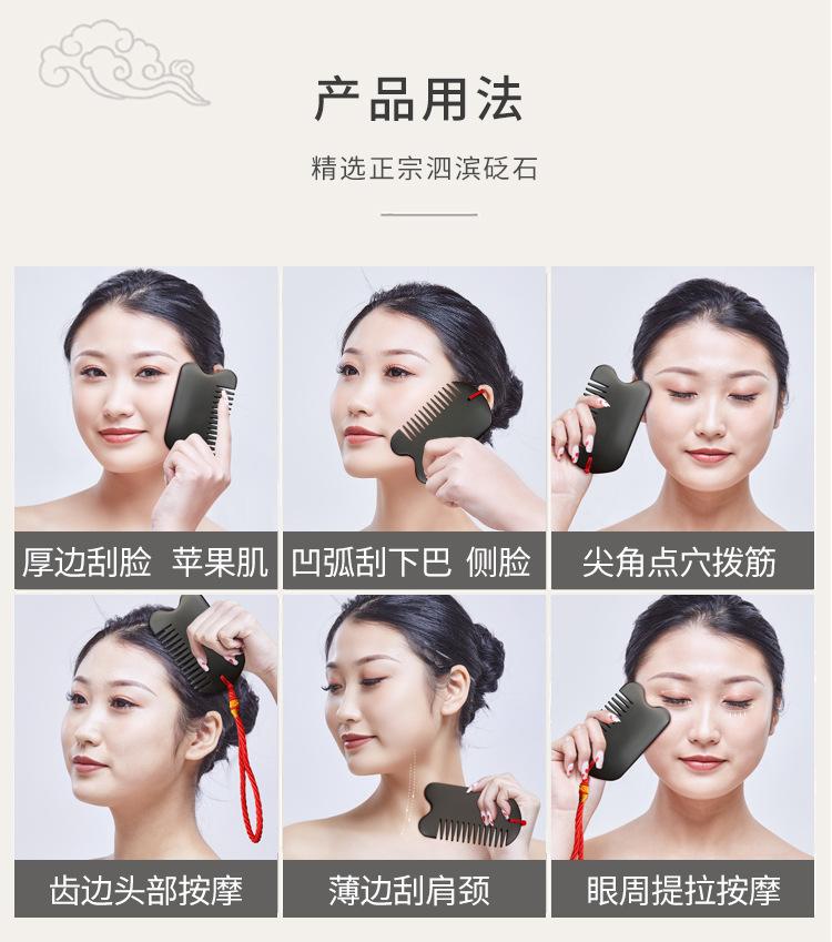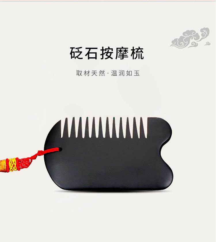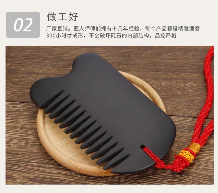 Peine en forma de U con aguja de piedra para masaje de hombros y cuello, tablero holográfico, sartén de alumbre para el hogar, peine de masaje de piel con piedra, peine para cabeza y meridianos.