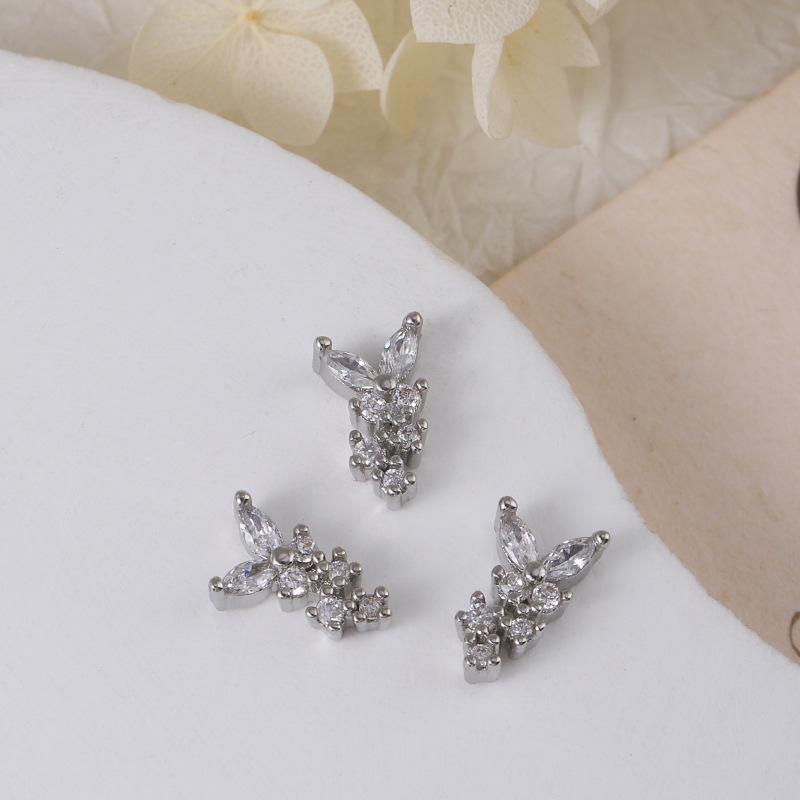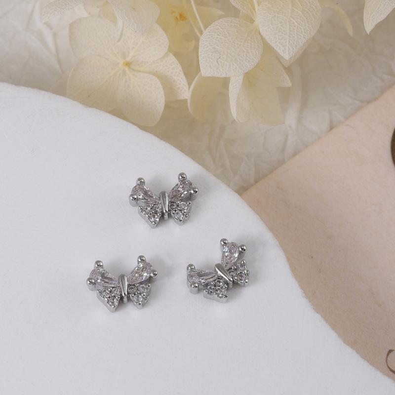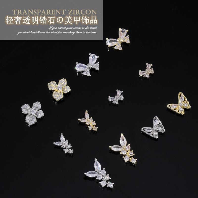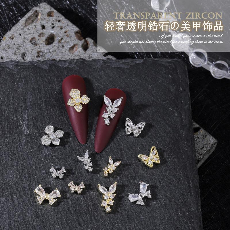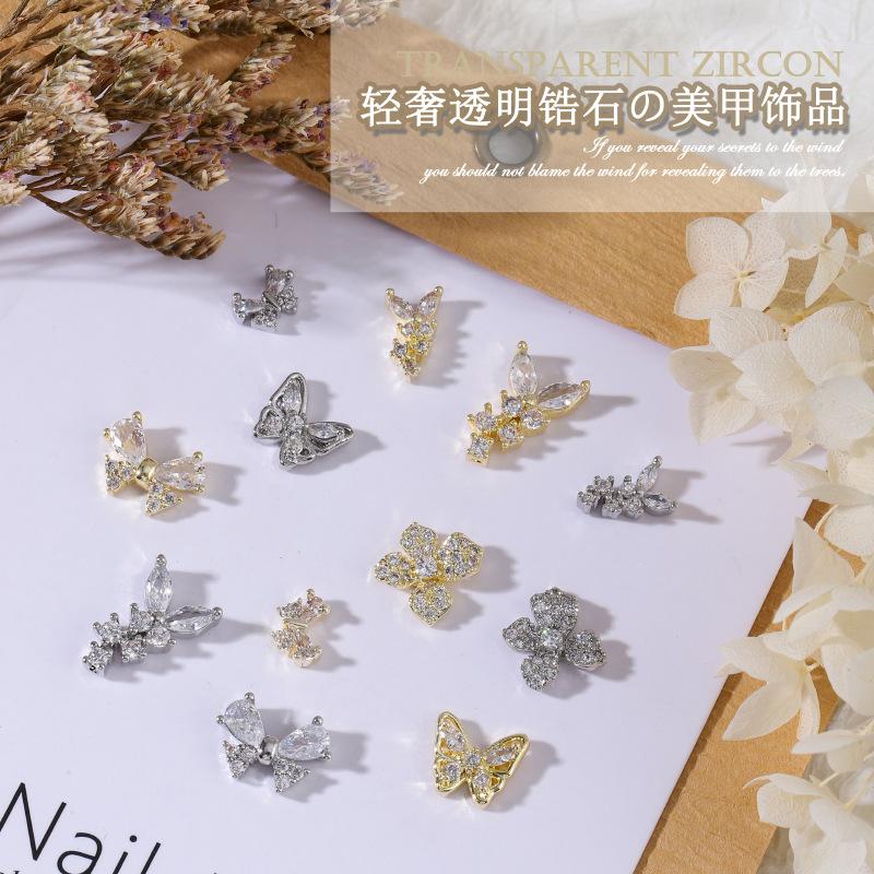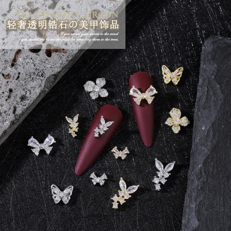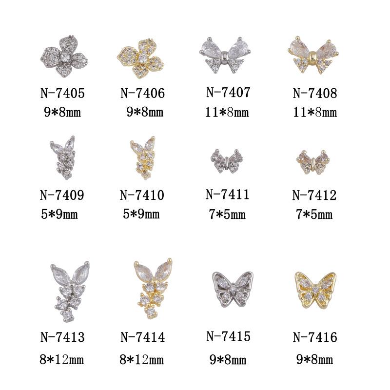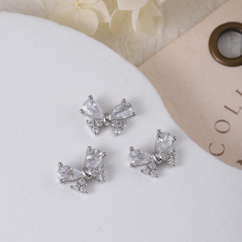 Nueva joyería para uñas LZ Super Flash, lazo de circonita, tamaño grande, pequeño, flor plateada, decoraciones para uñas, accesorios al por mayor