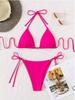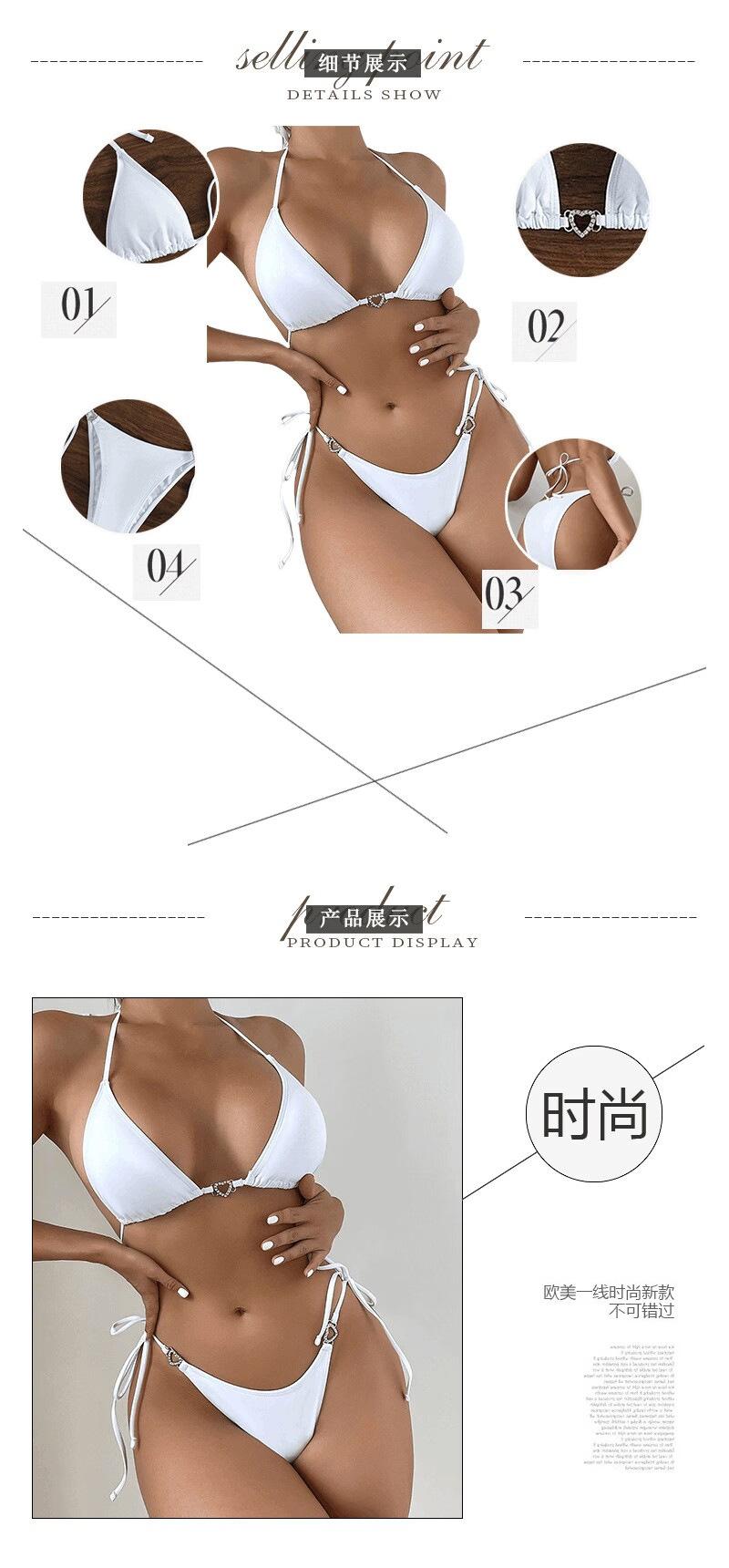 Traje de baño bikini nuevo transfronterizo de punto Bikini dividido Traje de baño femenino Exportación Correa halter Sexy Traje de baño de tres puntos