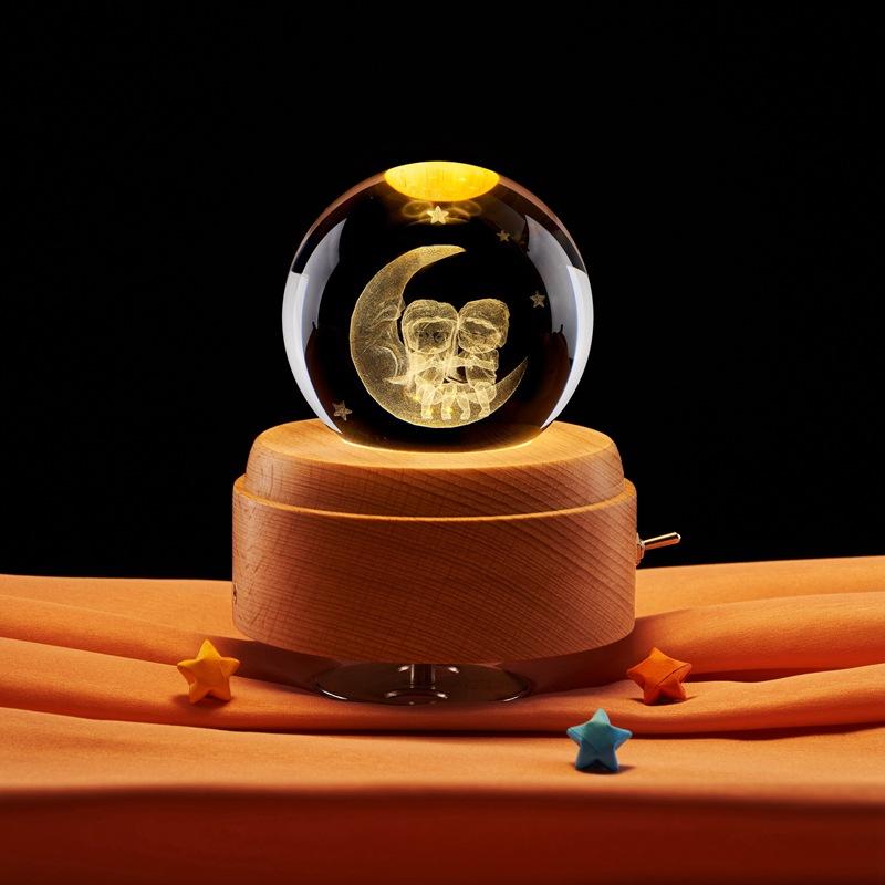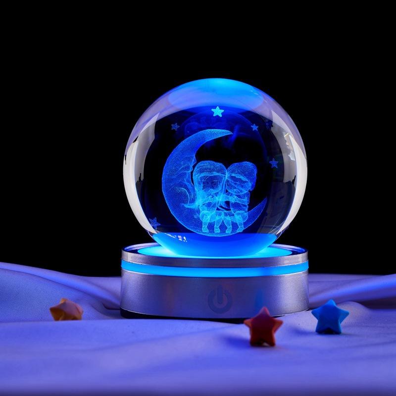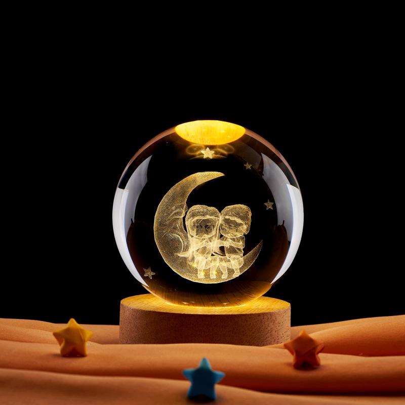 Bola de cristal con grabado láser 3D para pareja de lunas, luz nocturna creativa para dormir, regalo para novia