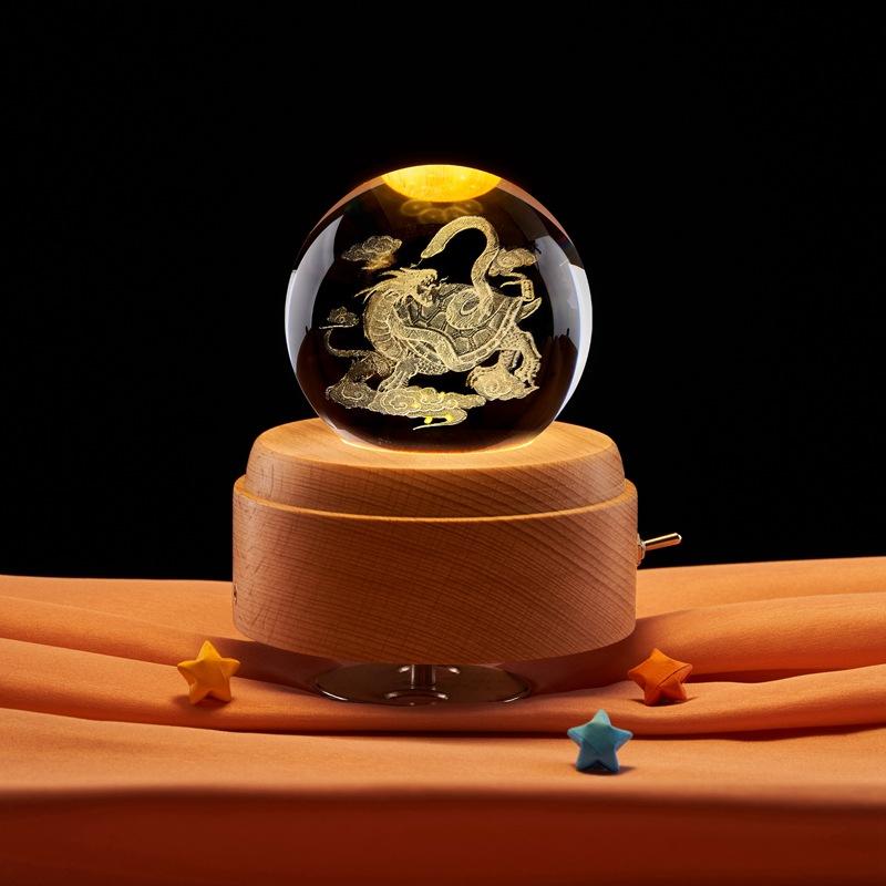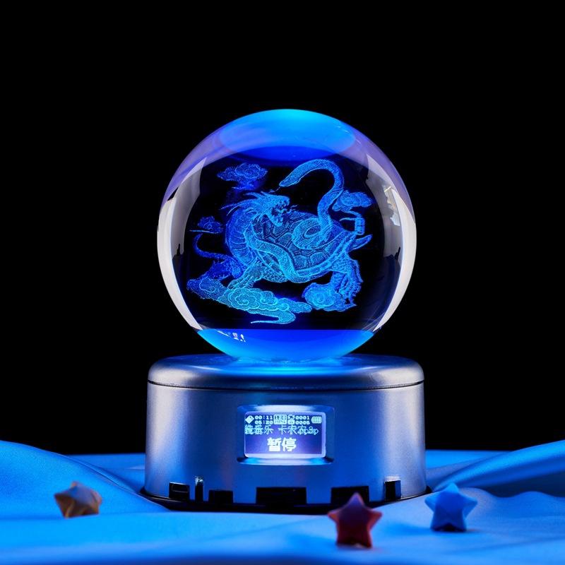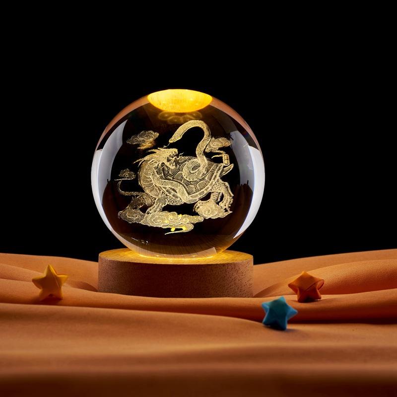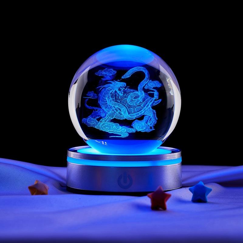 Bola de cristal tallada con láser 3D Xuanwu para pasillo, sala de estar, decoración, artesanías, decoración luminosa para el hogar, regalo