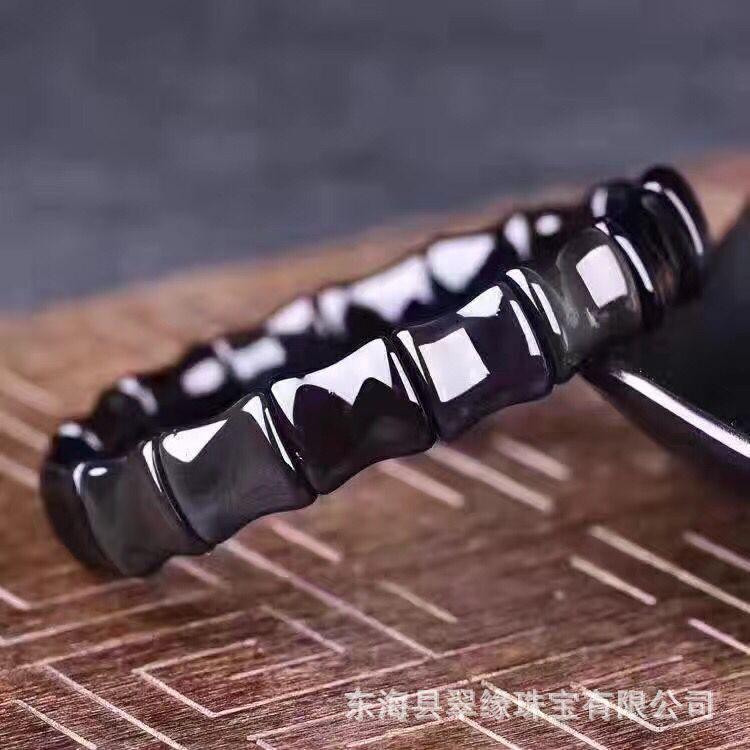 Pulsera de obsidiana ojo de arcoíris de cristal natural con forma de bambú, joyería de moda versátil, pulsera para mujer, joyería