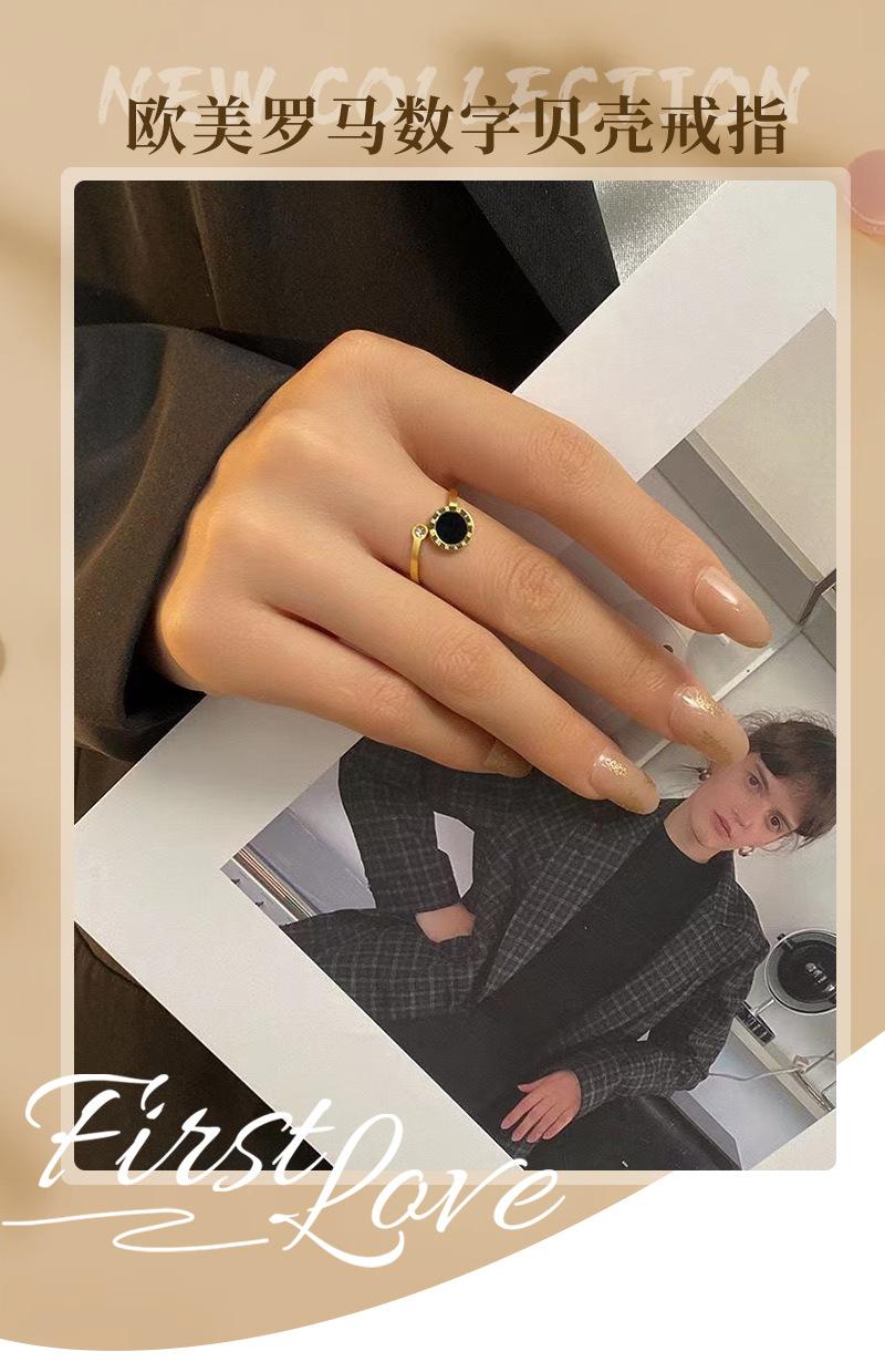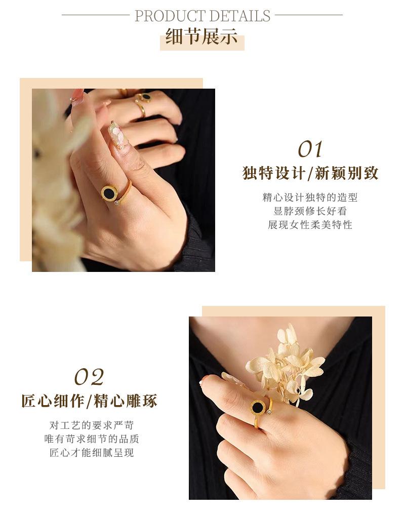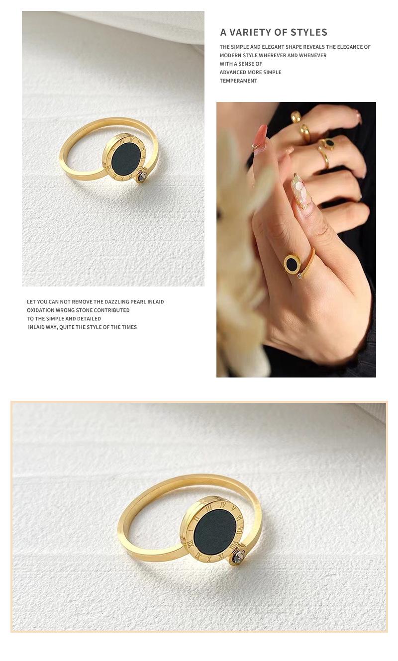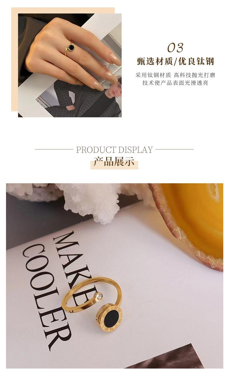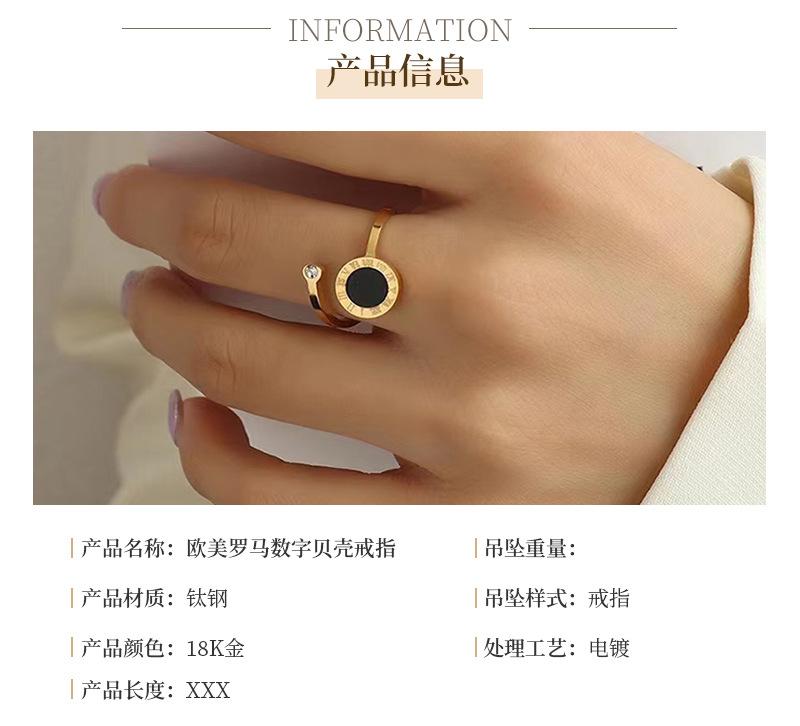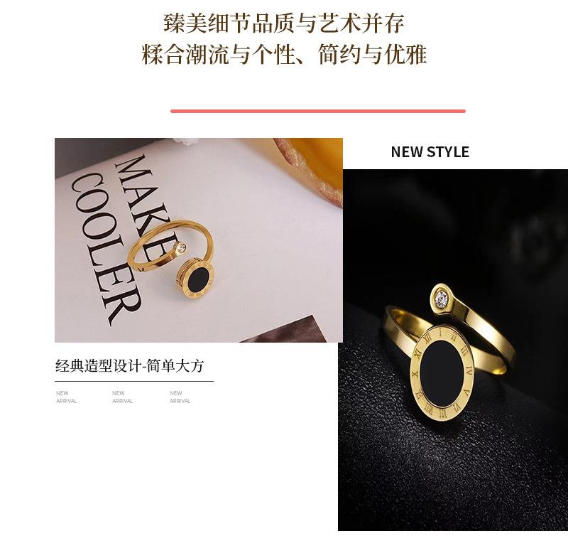 Anillo de apertura romana con incrustaciones de diamantes, estilo lujoso, ligero y sencillo, de estilo europeo y americano, para mujer, de acero de titanio de alta calidad y sin color.