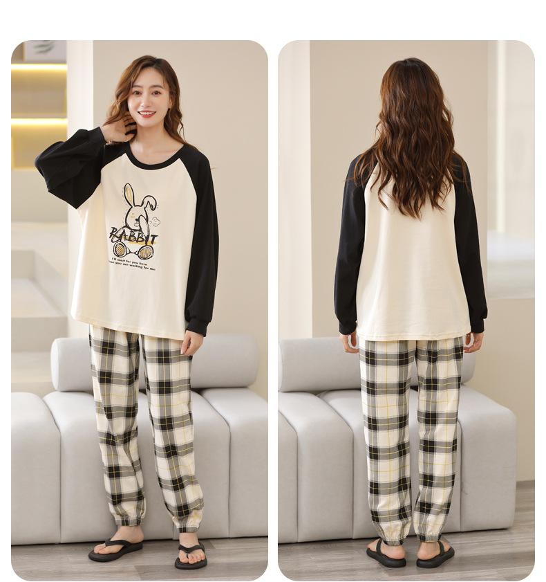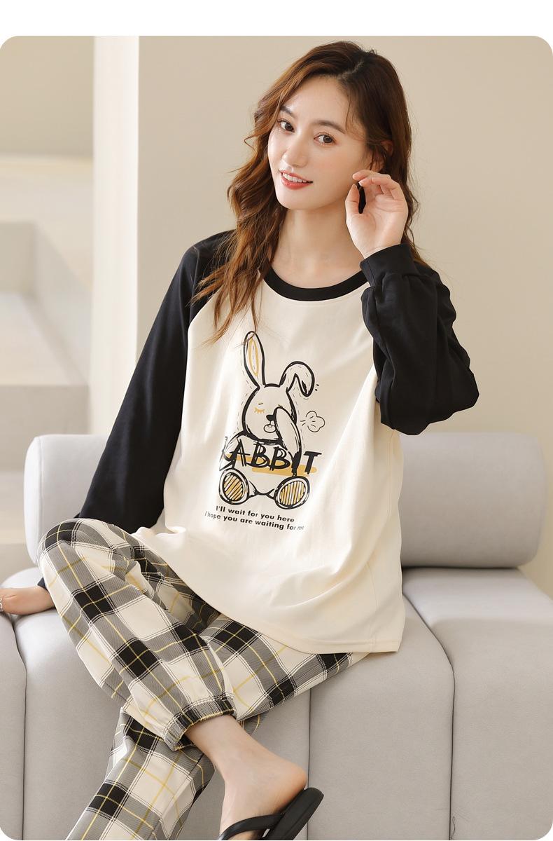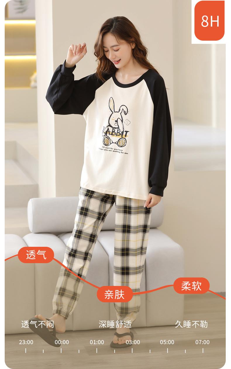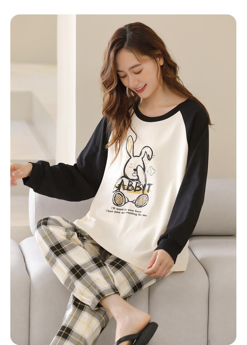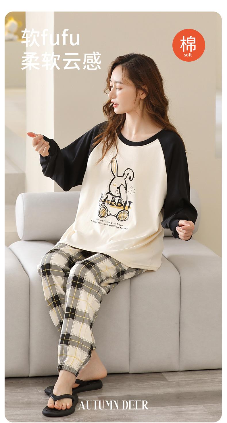 Pijamas de mujer de primavera y otoño, jersey de algodón de manga larga, holgado, de talla grande, nuevo traje de algodón para mujer para otoño e invierno, ropa de casa
