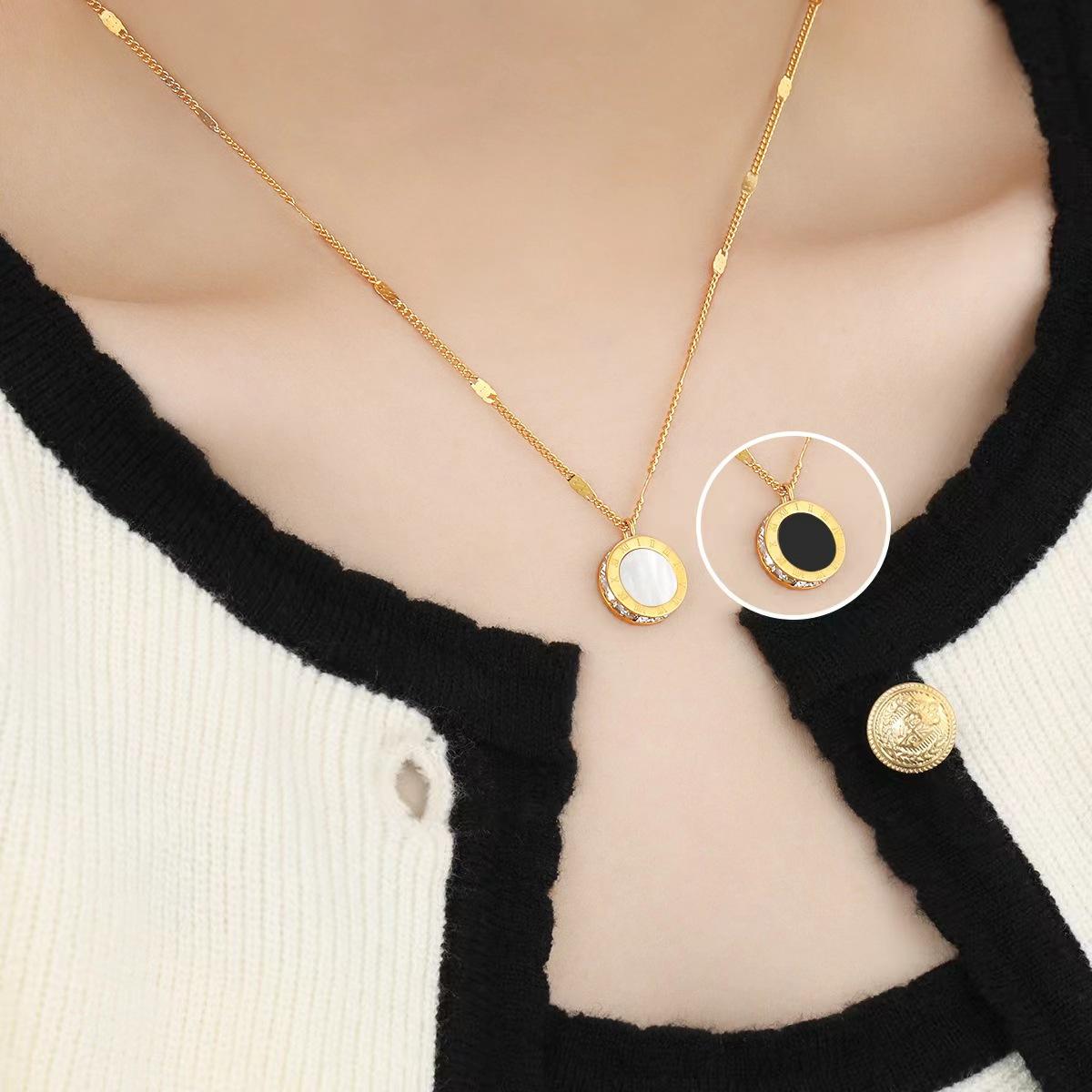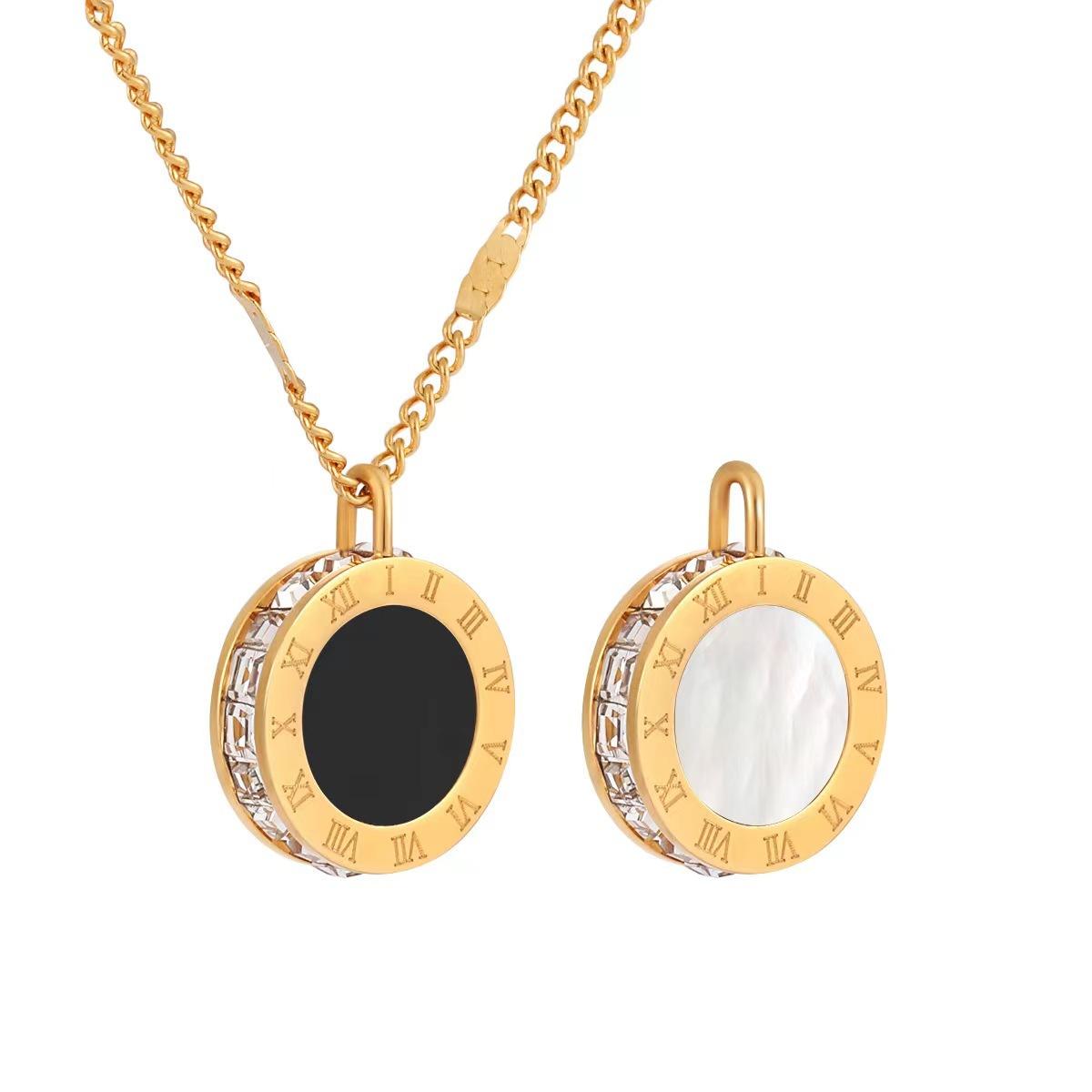 Collar de diamantes romanos de doble cara, sencillo, de estilo lujoso, ligero y europeo, de moda transfronteriza, para mujer, de acero de titanio de alta calidad y sin color.