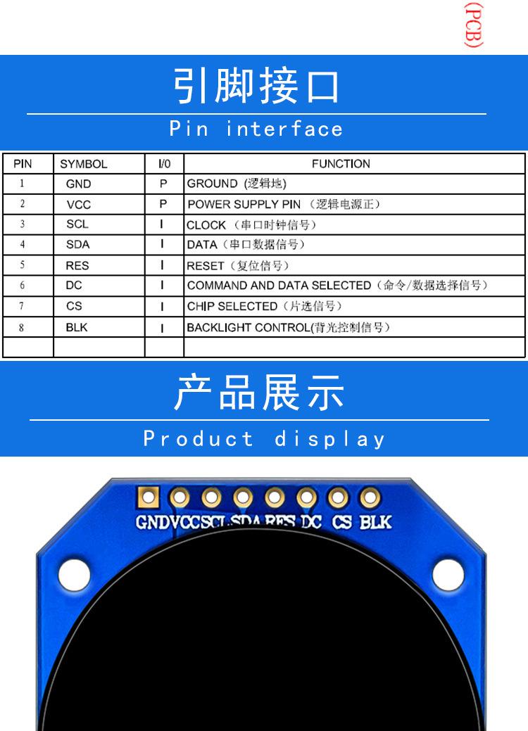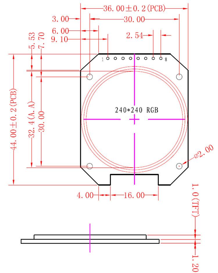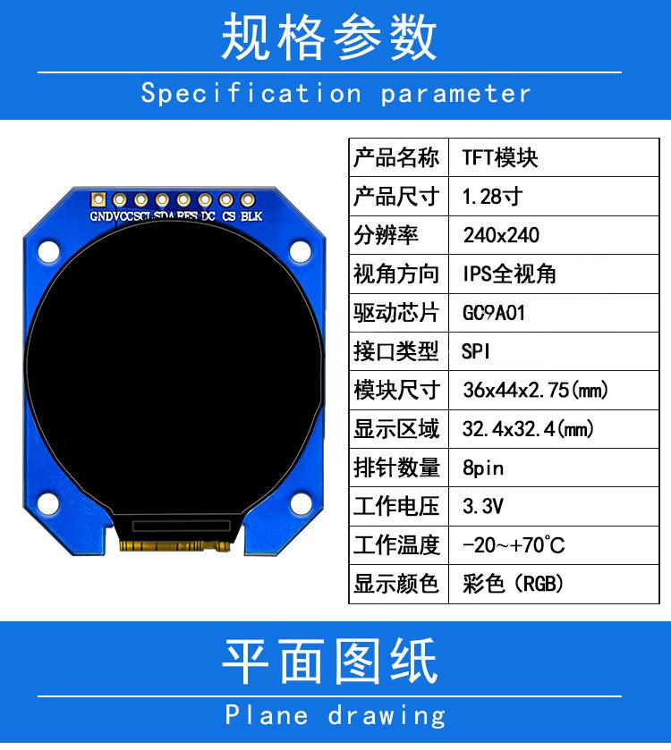 Módulo de pantalla TFT de 1,28 pulgadas LCD 240*240 HD de 8 pines disponible para exteriores