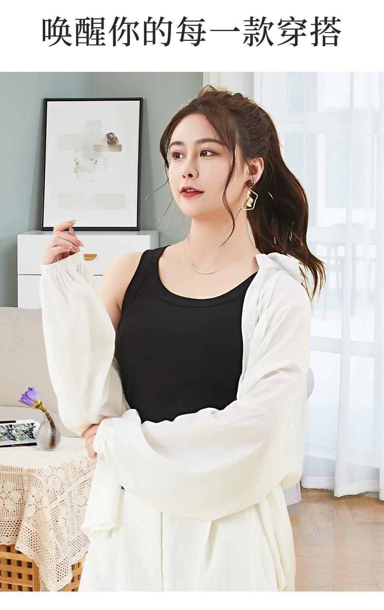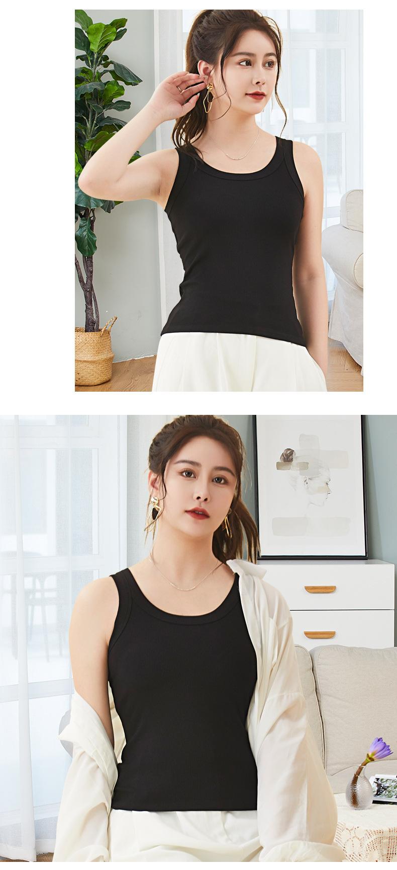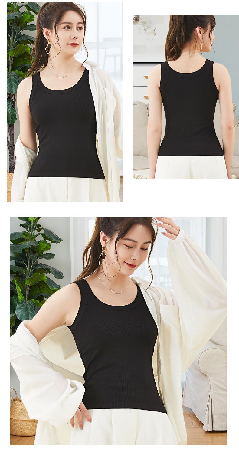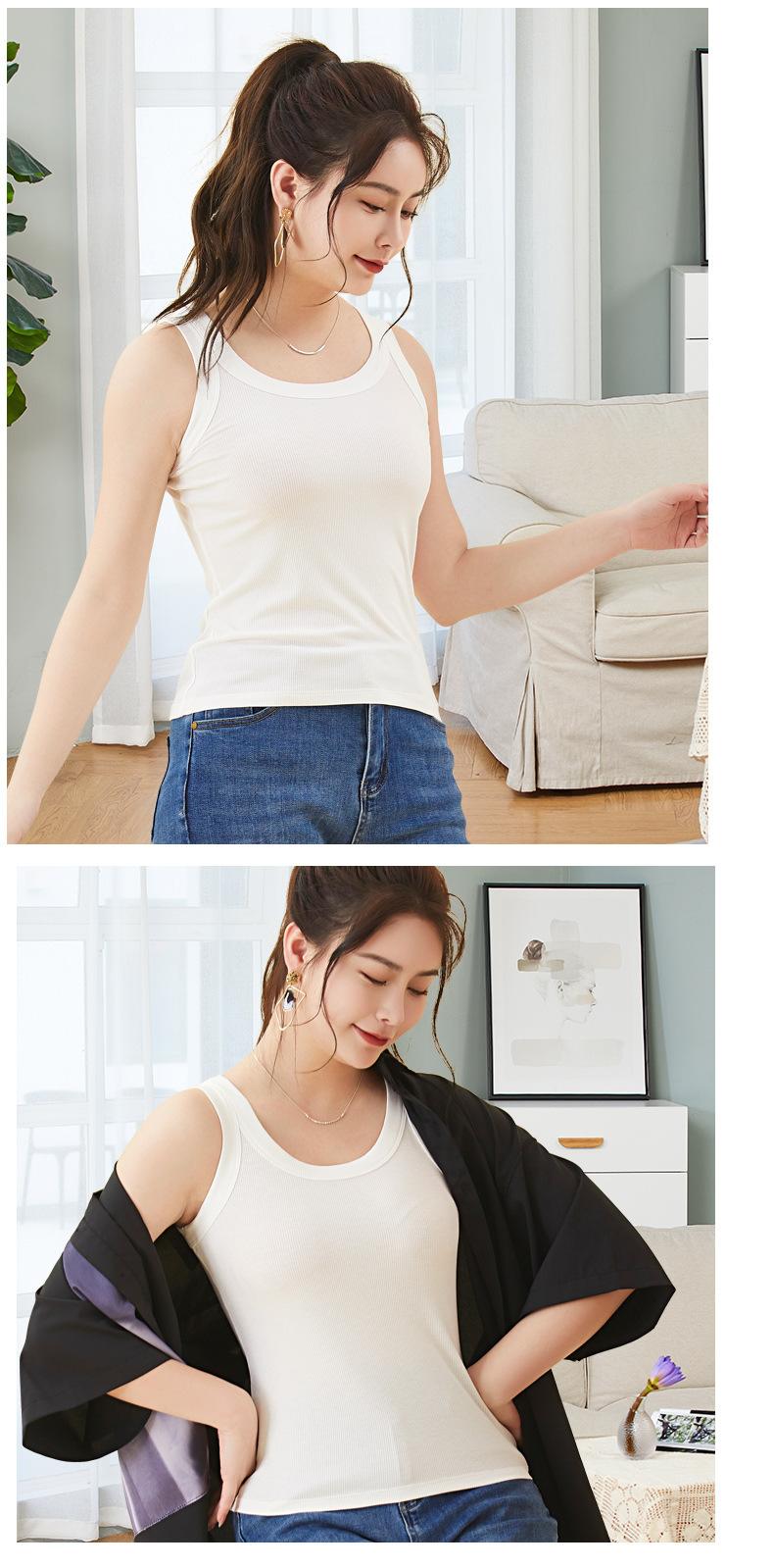 Camisola de verano con hilo para mujer, color liso, combinable con todo, con base interior, anti-correr, sin mangas