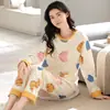 [Algodón puro] Pijamas de mujer de primavera y otoño, de manga larga, estilo princesa dulce, ropa informal holgada para el hogar, otoño e invierno.