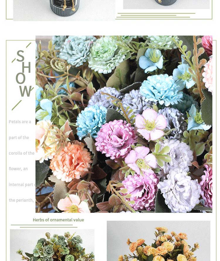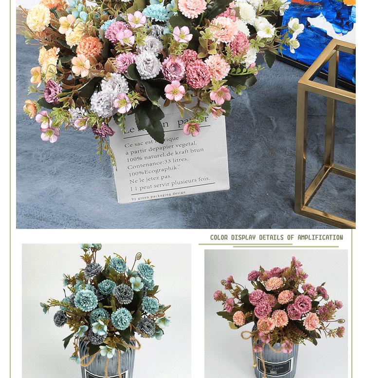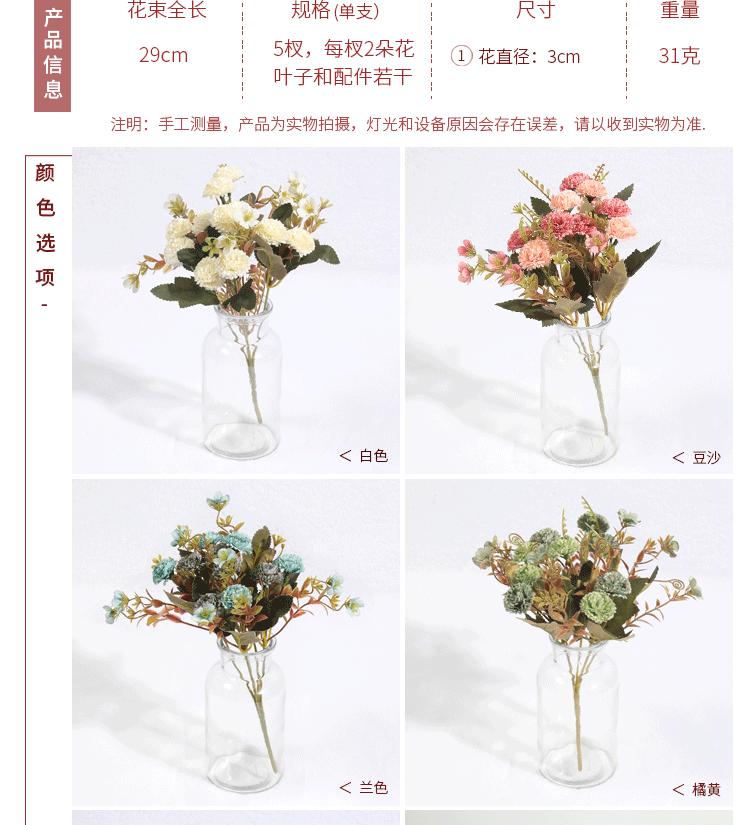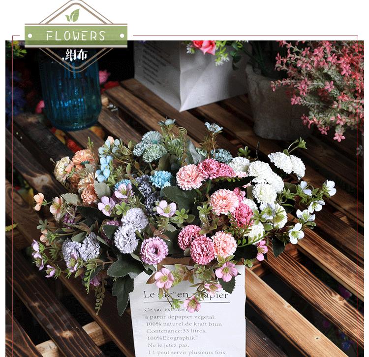 Clavel de otoño natural de 5 ramas flor artificial de fábrica decoración para el hogar flor para llevar en la boda planta de pared de flores falsas