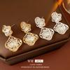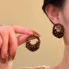 Pendientes geométricos de perlas retro francesas, pendientes de temperamento de moda exagerada, pendientes de lujo ligeros de nicho de alta gama, venta al por mayor para mujeres