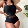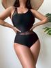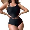 Traje de baño nuevo sexy de una pieza de color sólido con costuras de malla transfronterizo europeo y americano para comercio exterior 2448