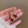 Pendientes de estilo francés de alta gama 2023, nuevos y elegantes pendientes de cristal gris, diseño de nicho, pendientes de red rojos que combinan con todo.