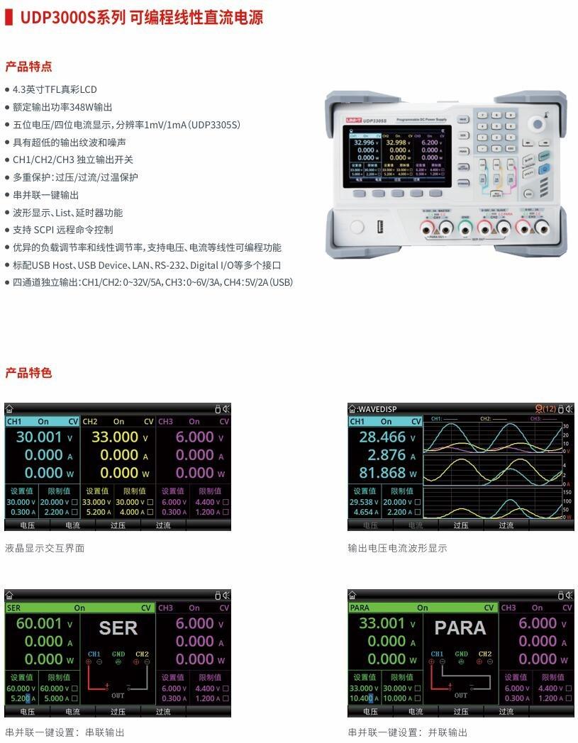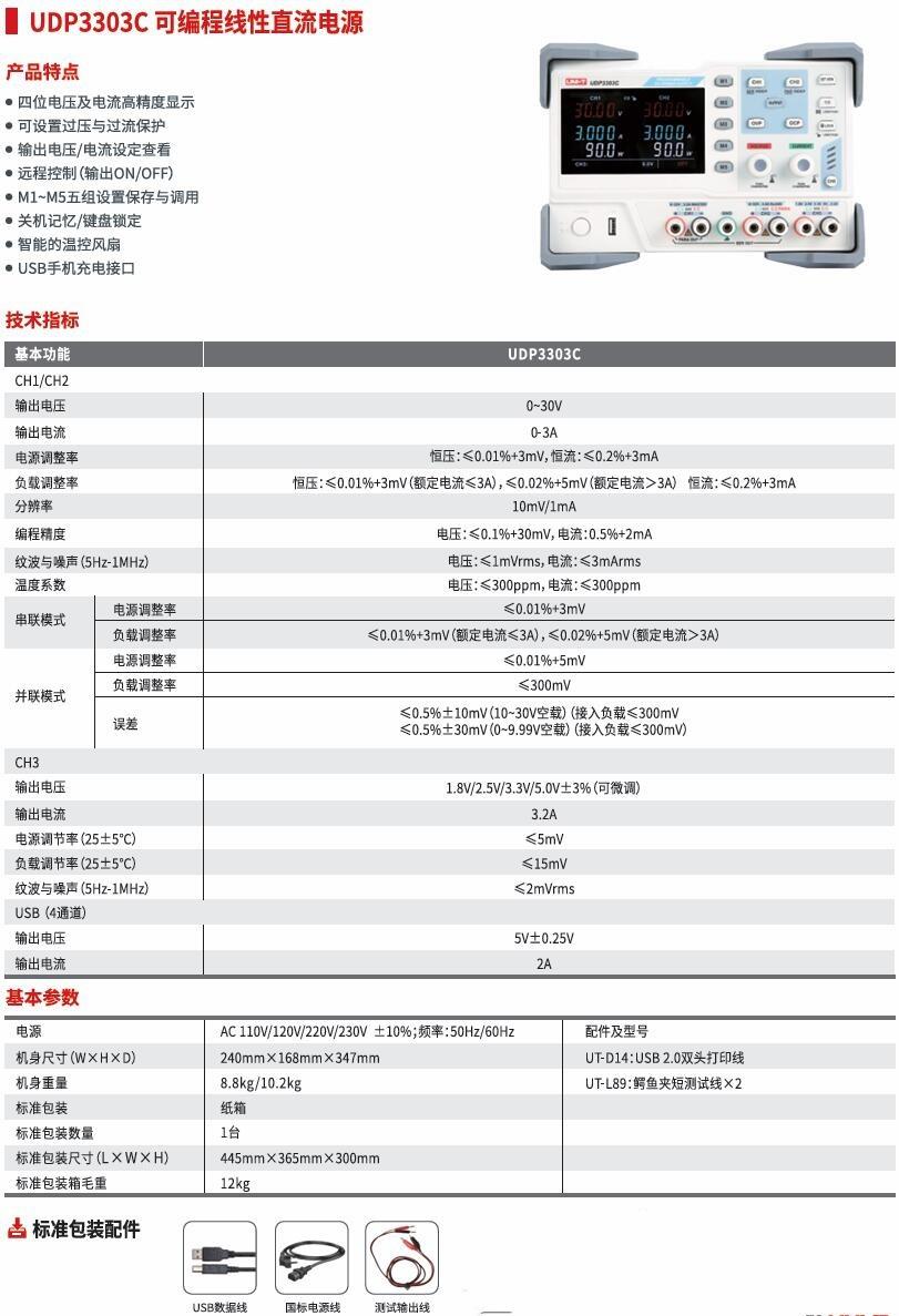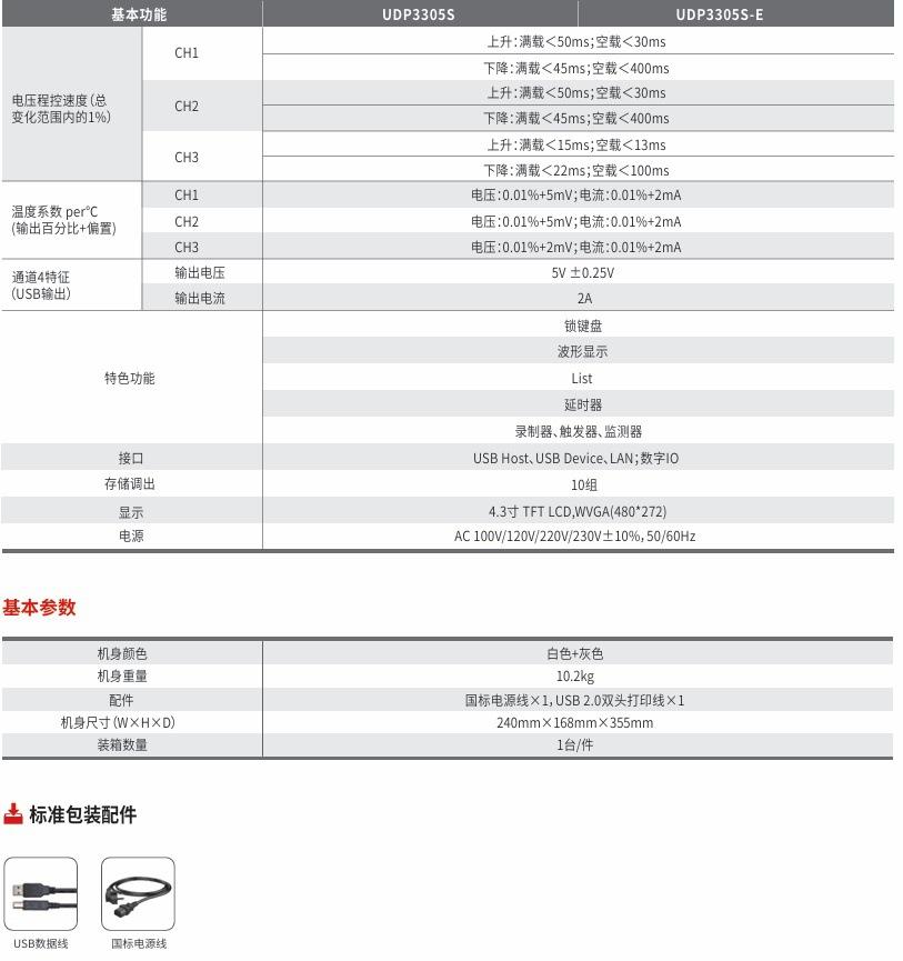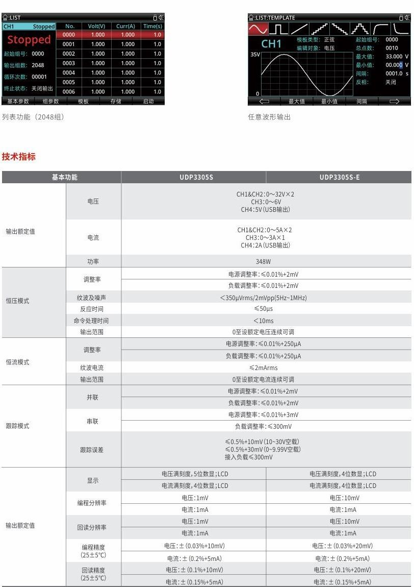 Parámetros de la Fuente de Alimentación Lineal Programable de CC Uni-T UDP3303C/UDP3305S/UDP3305S-E: