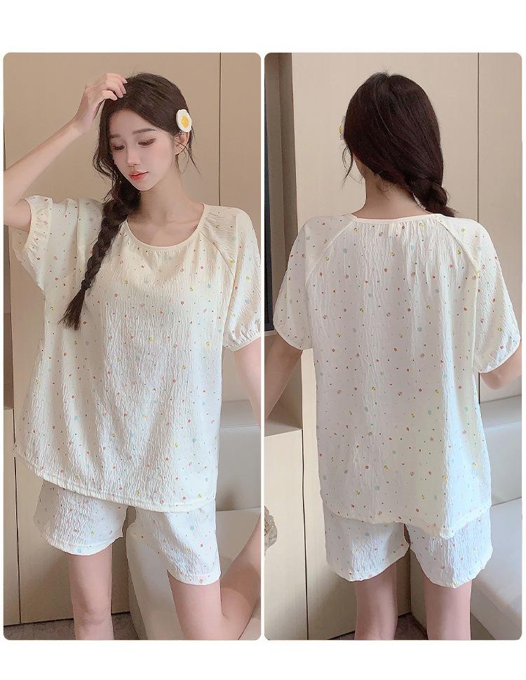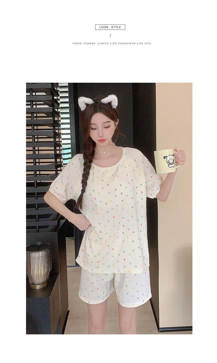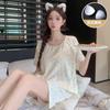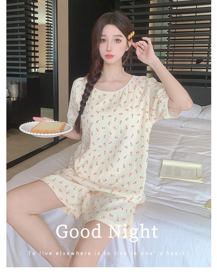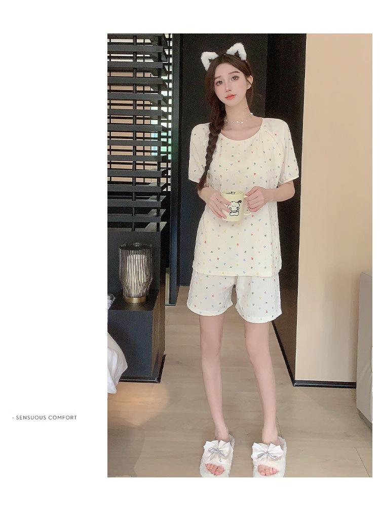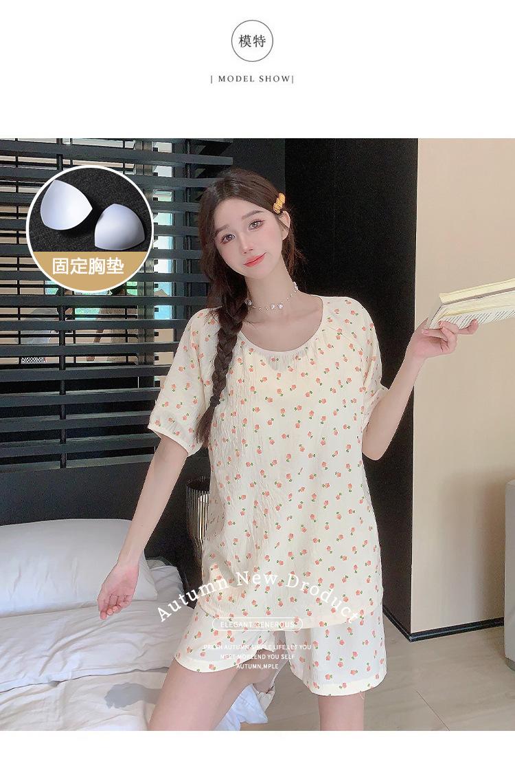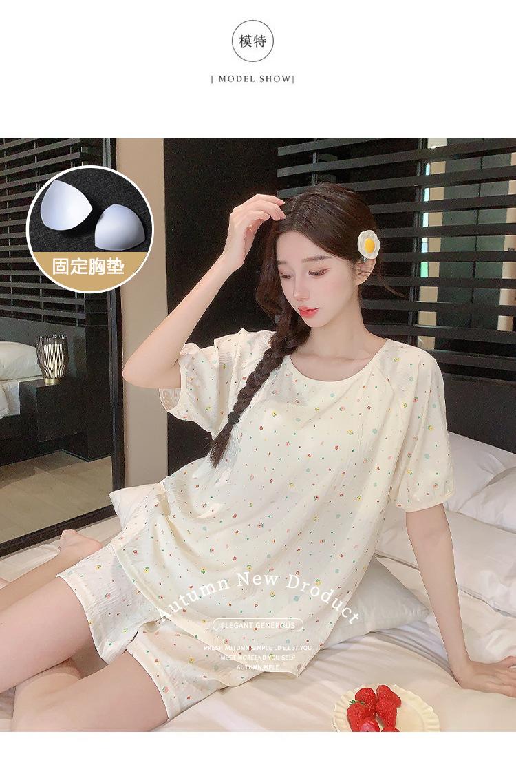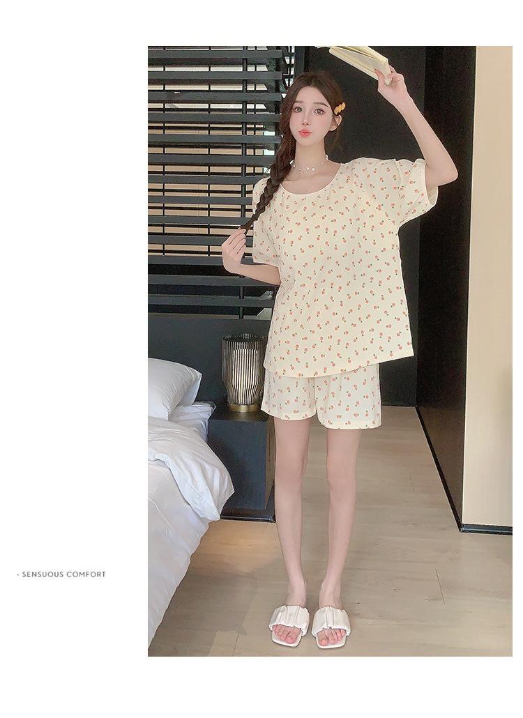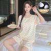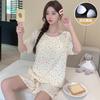 Pijama de Verano de Cuello Redondo para Mujer Algodón Nube Nuevo Dulce Manga Corta Shorts con Almohadilla en el Pecho Estilo Chanel Conjunto de Ropa para el Hogar