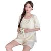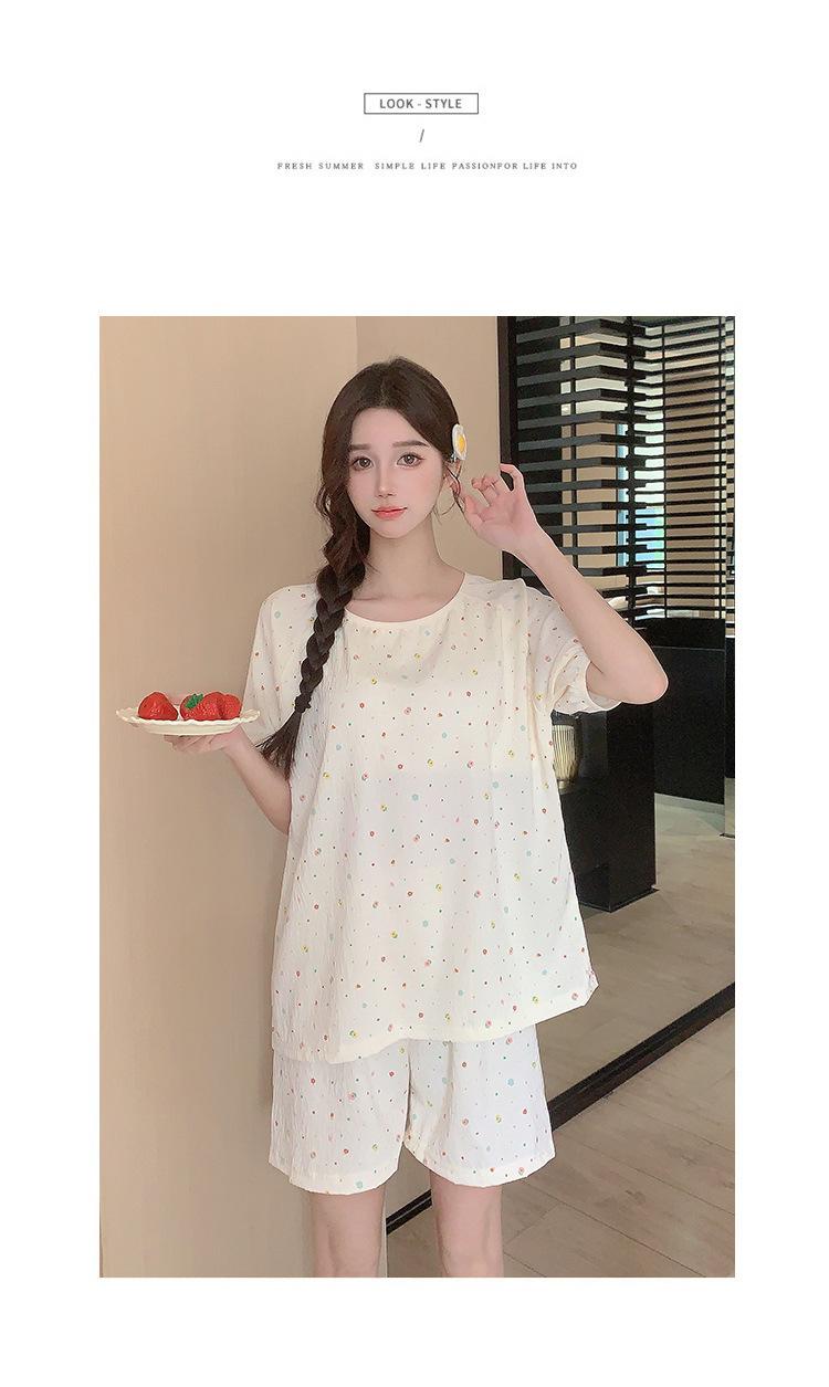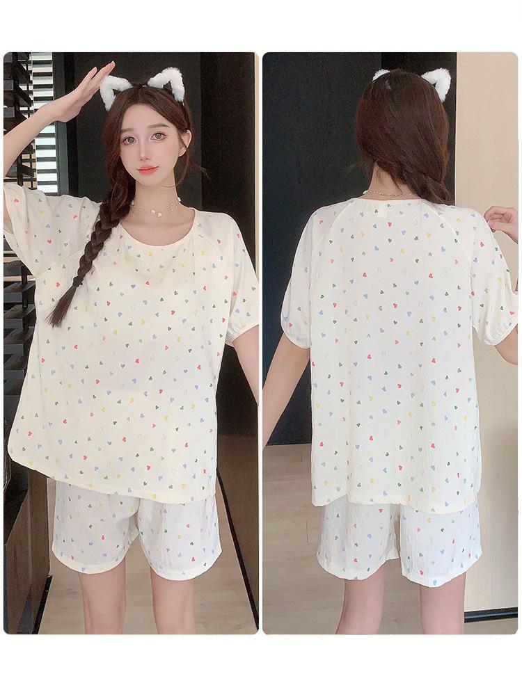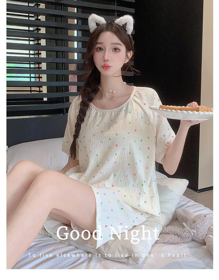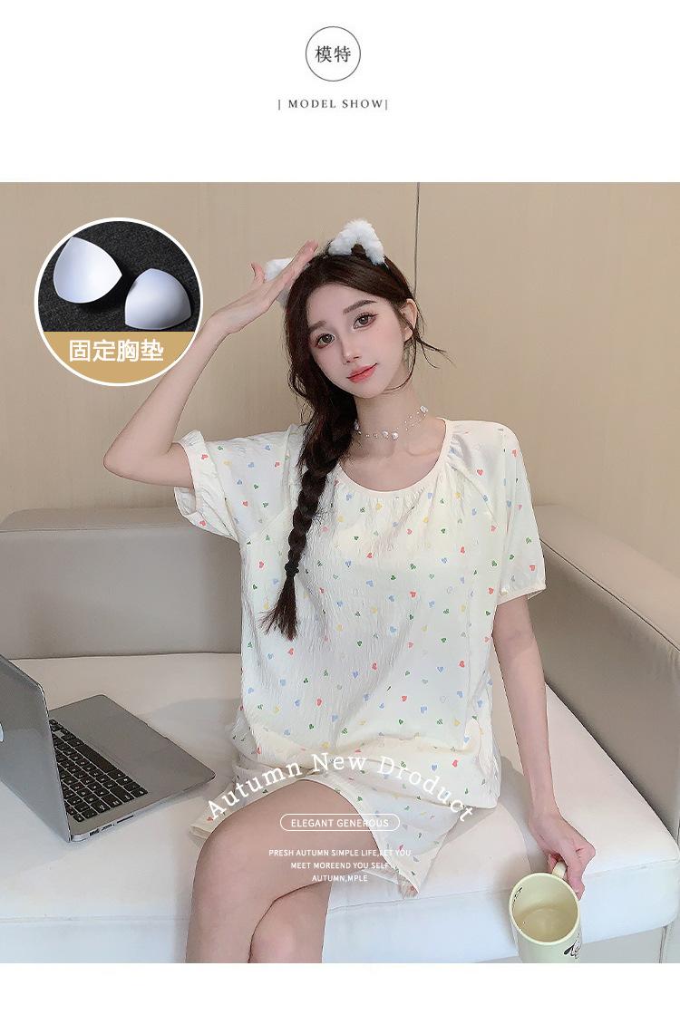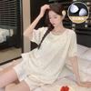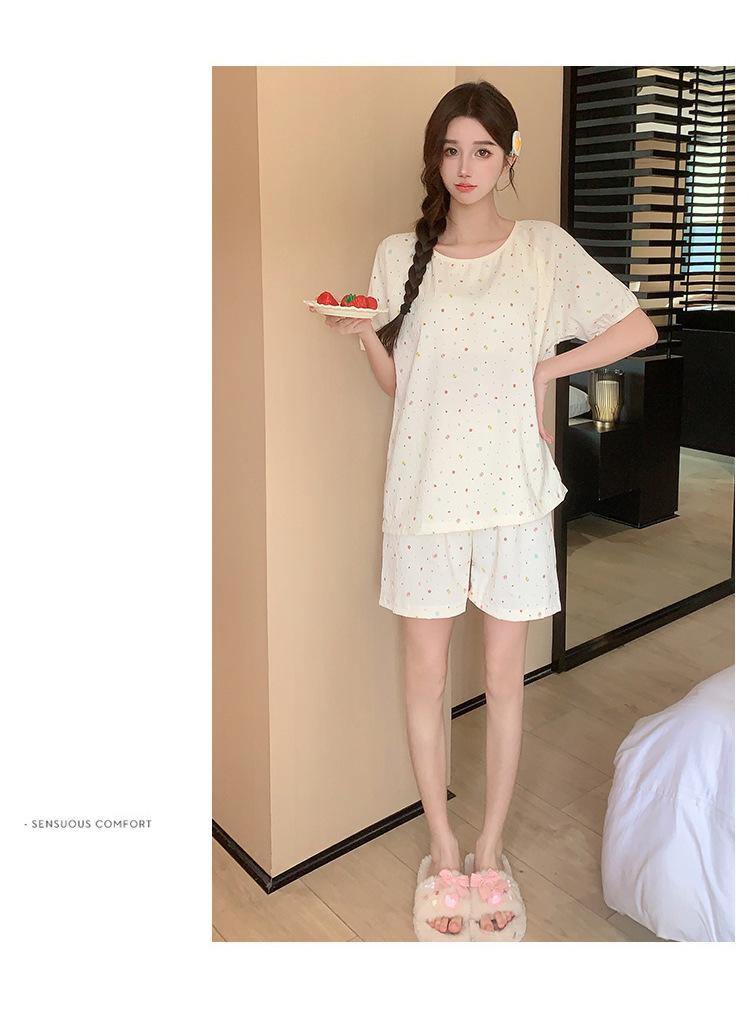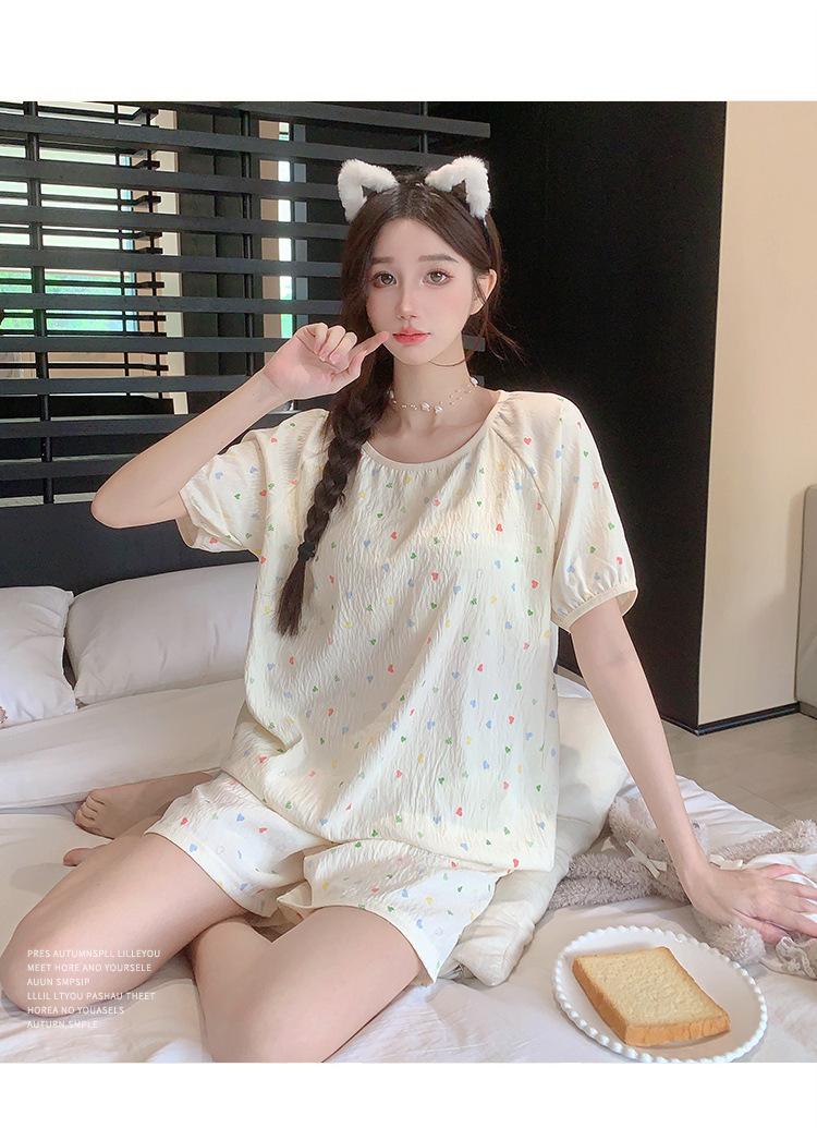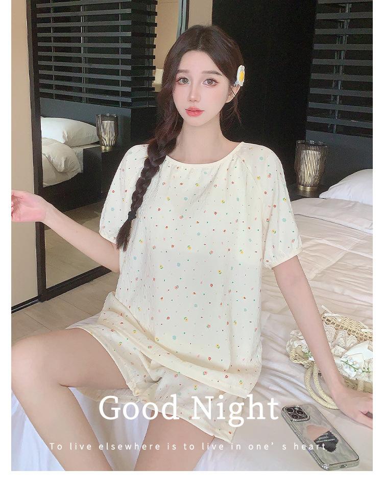 Pijama de Verano de Cuello Redondo para Mujer Algodón Nube Nuevo Dulce Manga Corta Shorts con Almohadilla en el Pecho Estilo Chanel Conjunto de Ropa para el Hogar