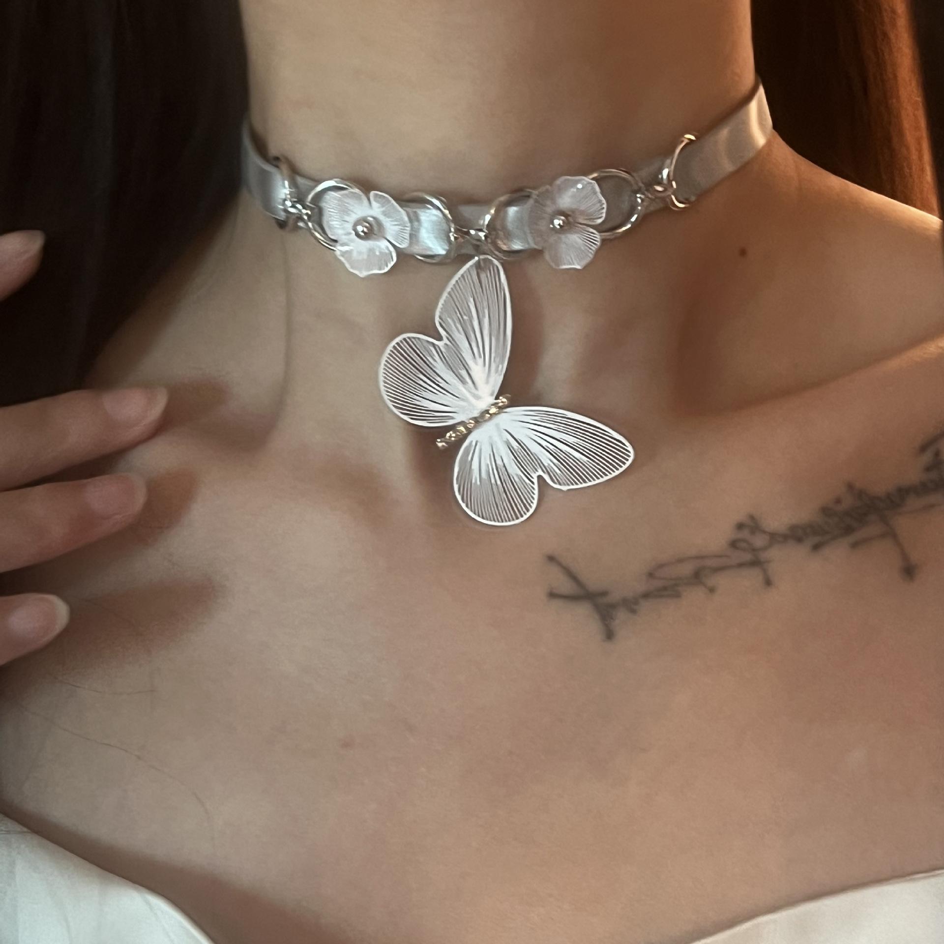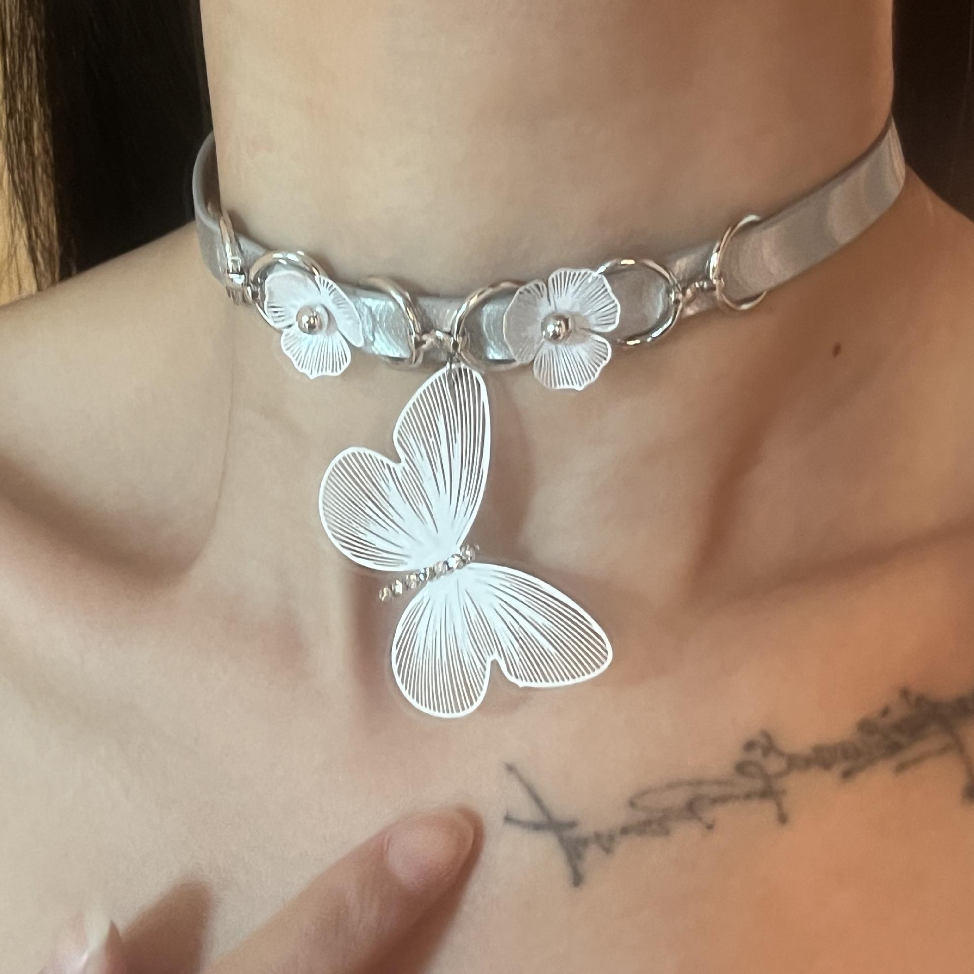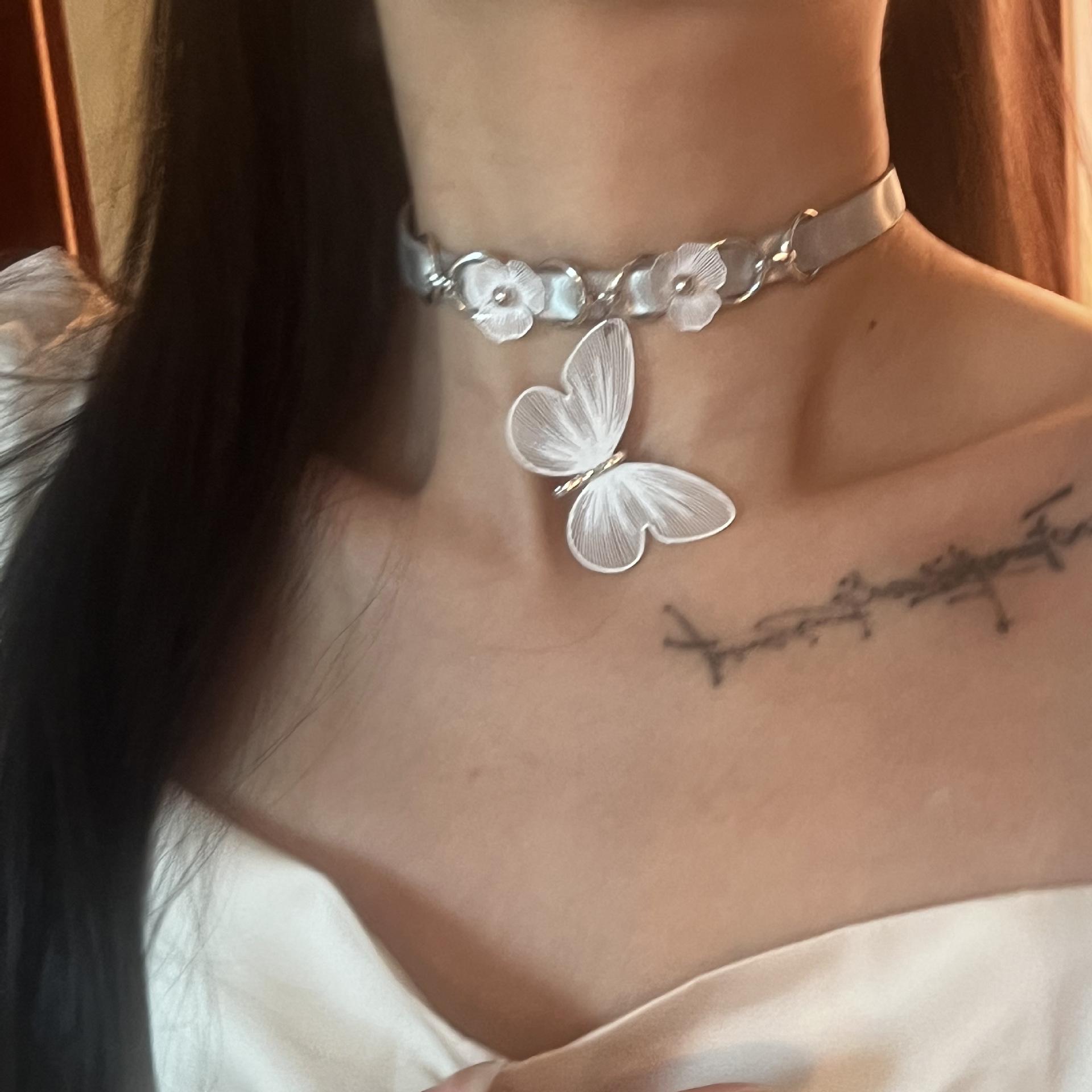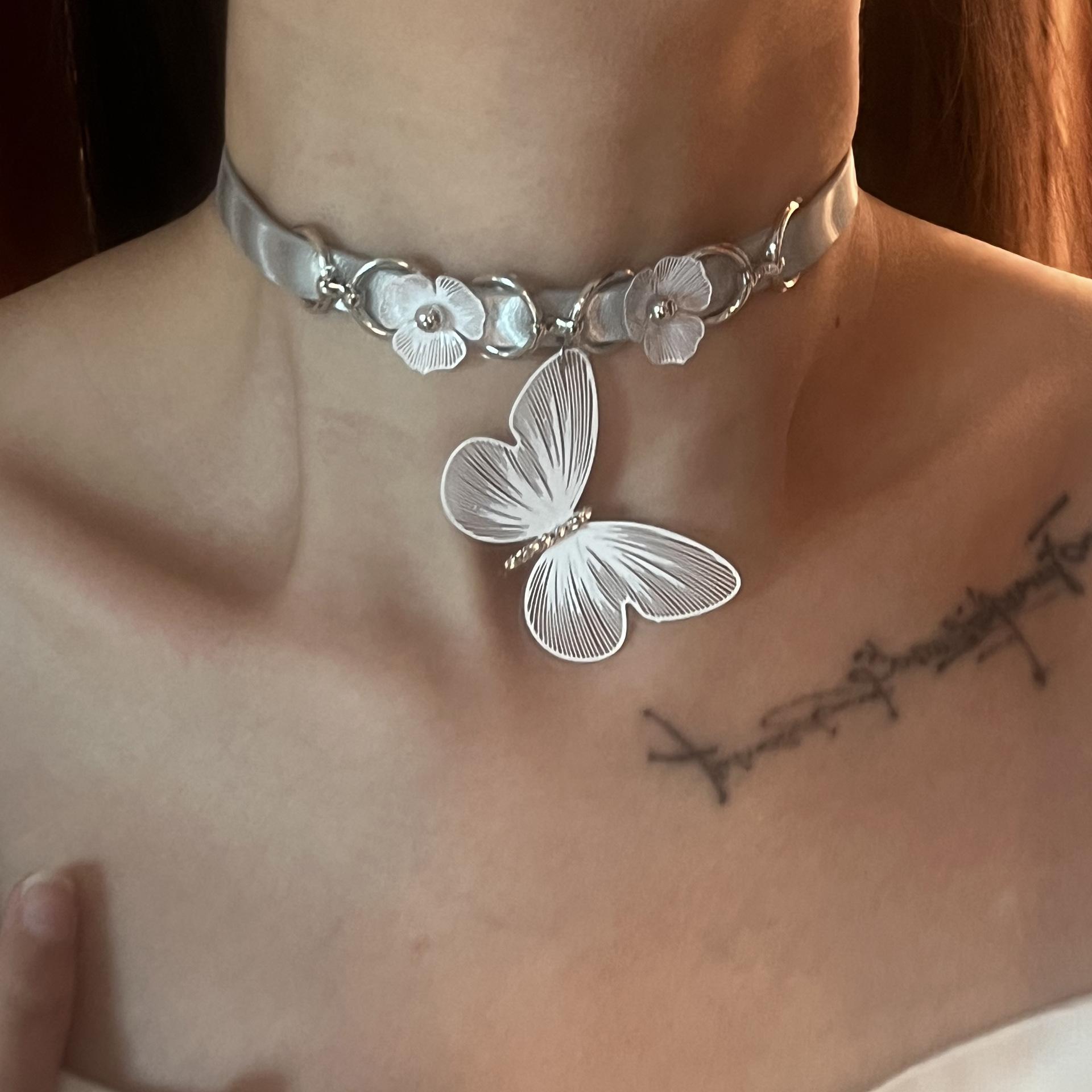 Collar con colgante de mariposa de diamantes de cuero, gargantilla, estilo moderno y elegante, cadena para clavícula, joyería de alta gama que combina con todo.
