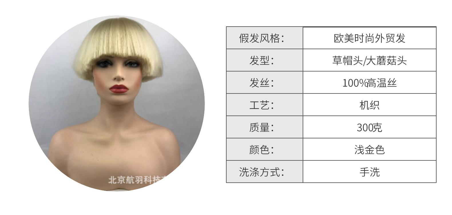 Compra Peluca de Cabeza de Hongo Dorada Clara para Exportación Transfronteriza para Mujeres con Flequillo Sombrero de Paja Cabello Corto Peluca Cos para Escenario de Club Nocturno al por mayor en Joom.pro