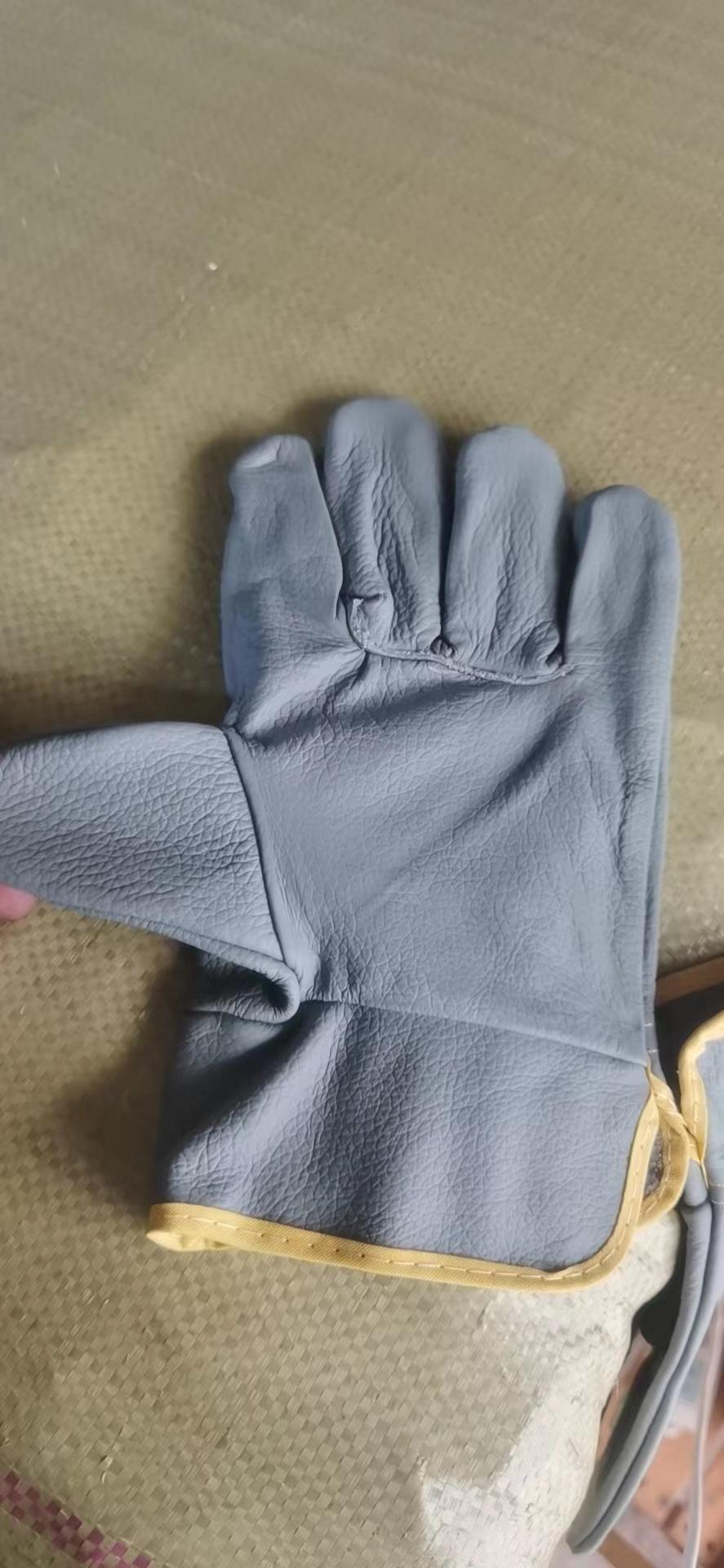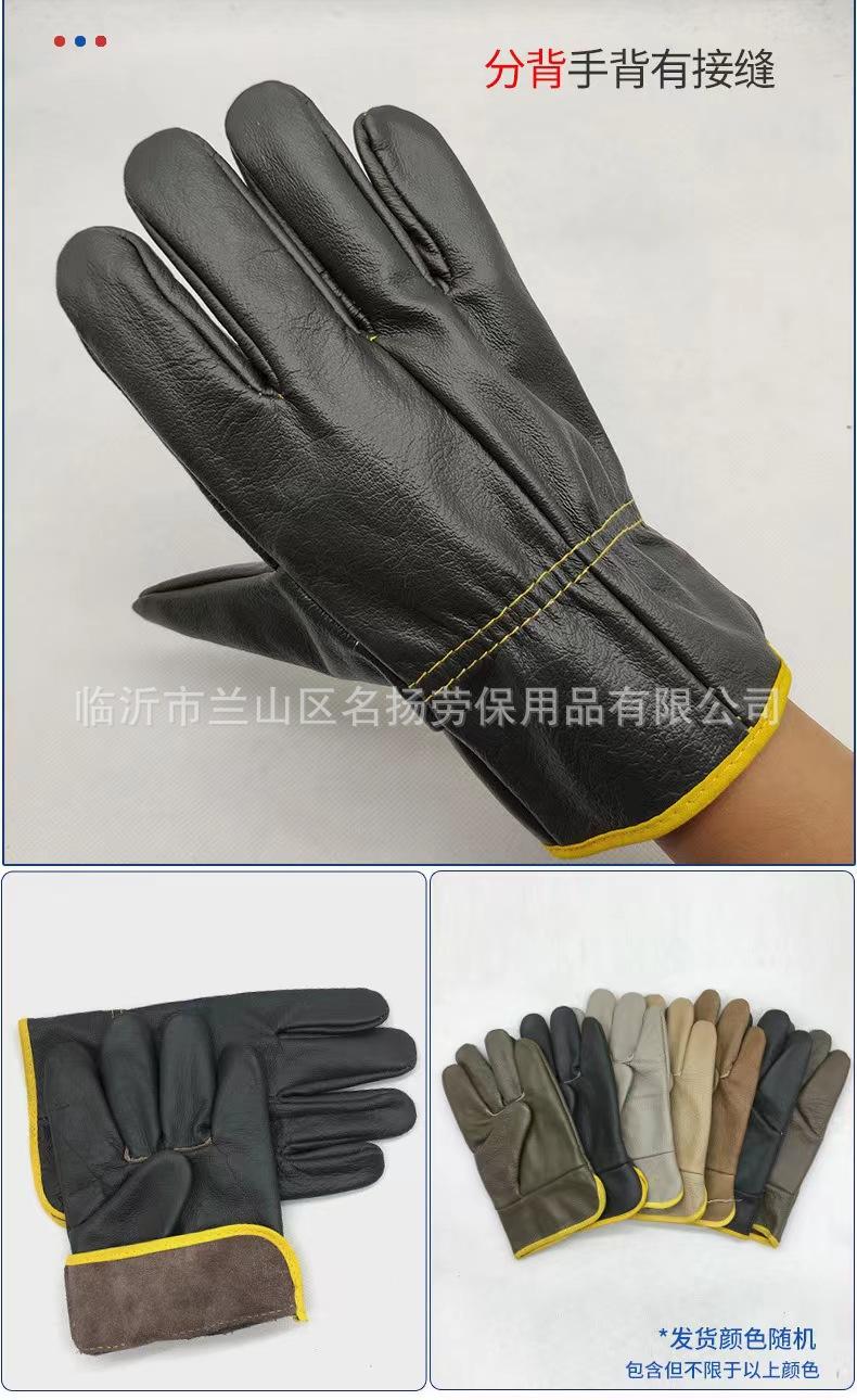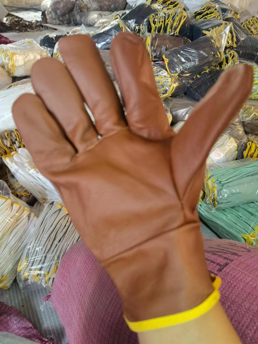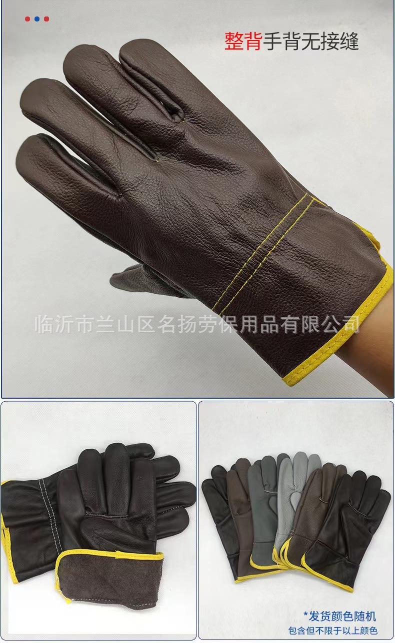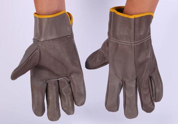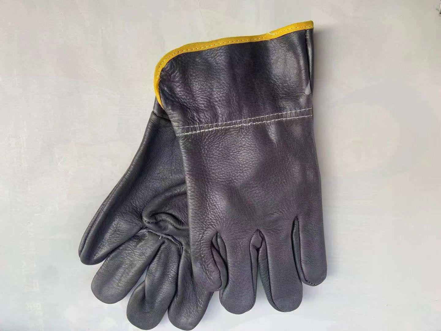 Guantes de soldador de piel de vaca de primera capa de color oscuro, cortos, de cuero, con dorso completo de cuero, soldador, protección laboral