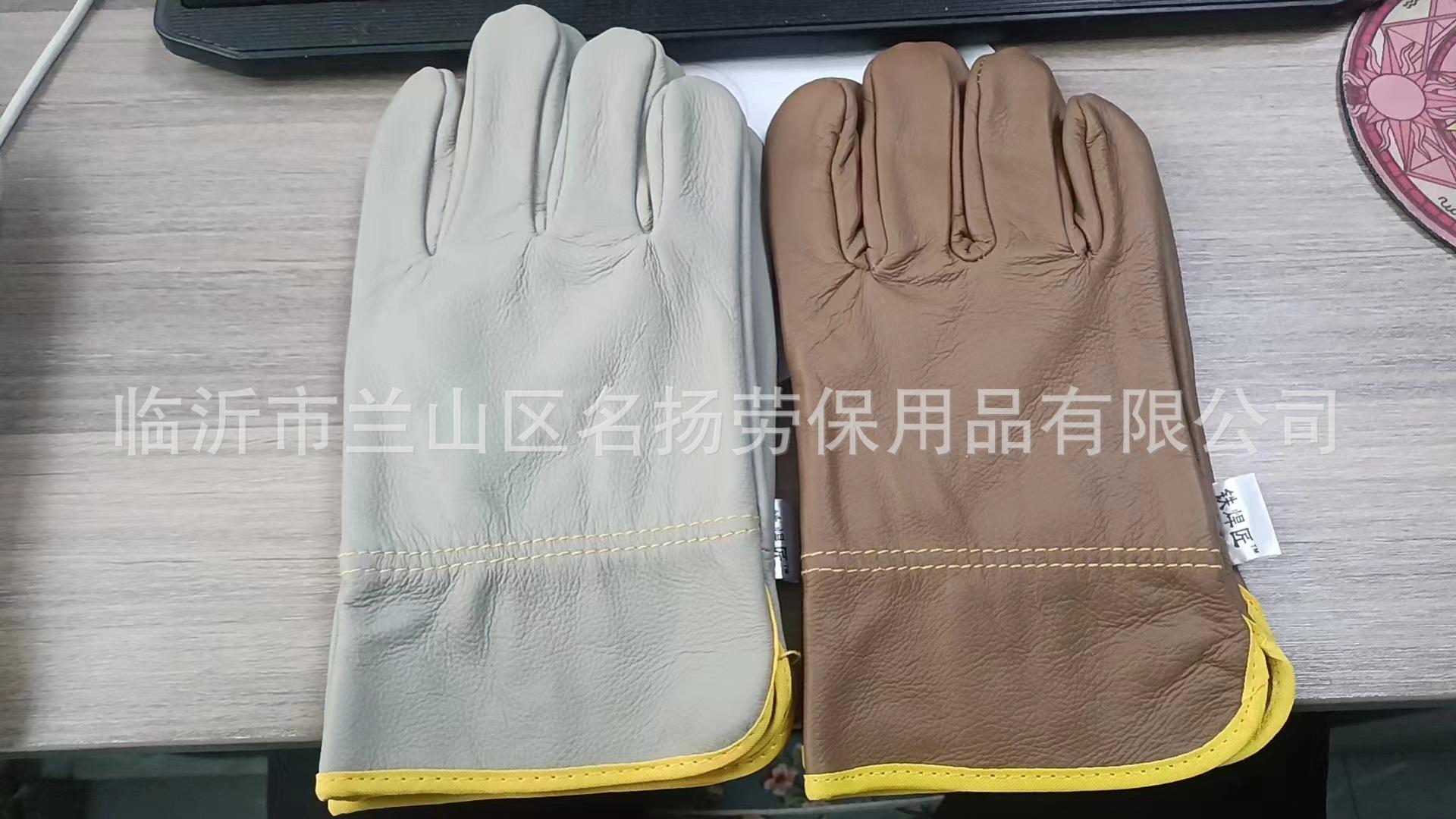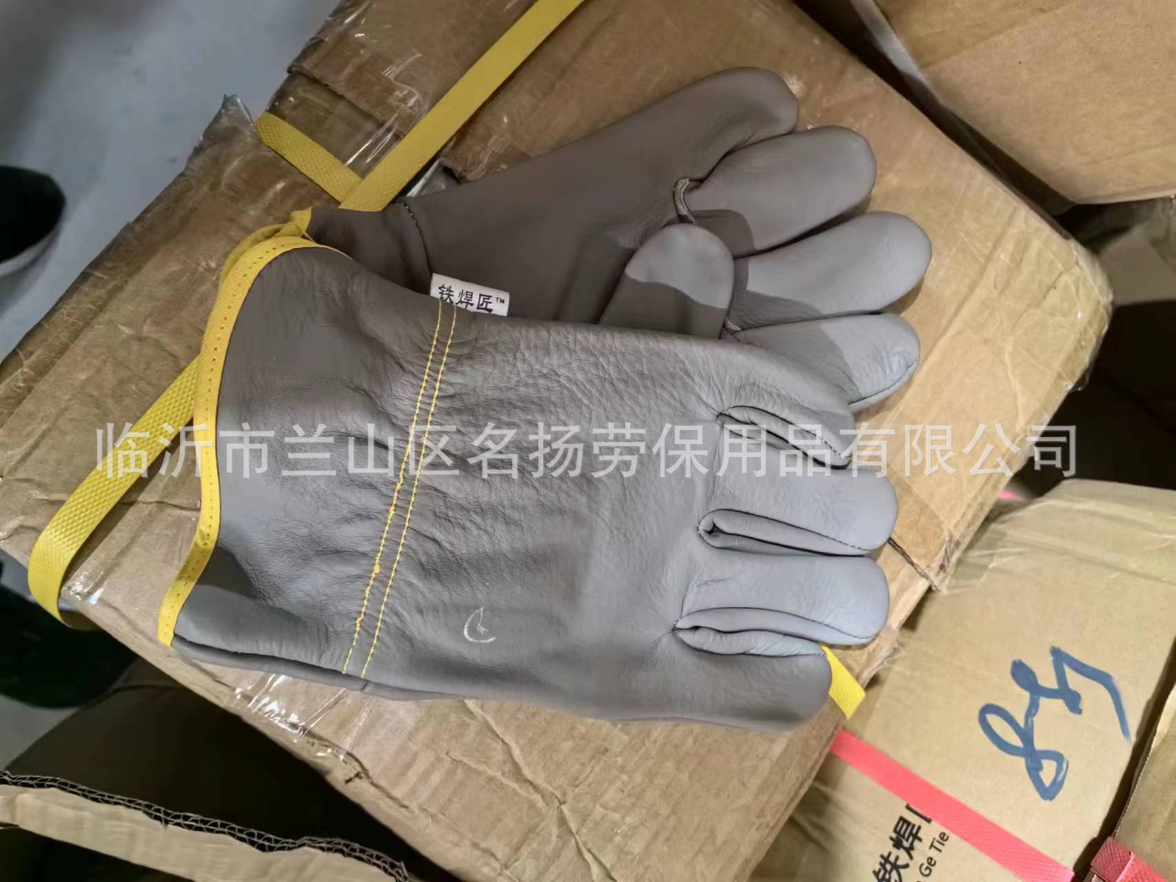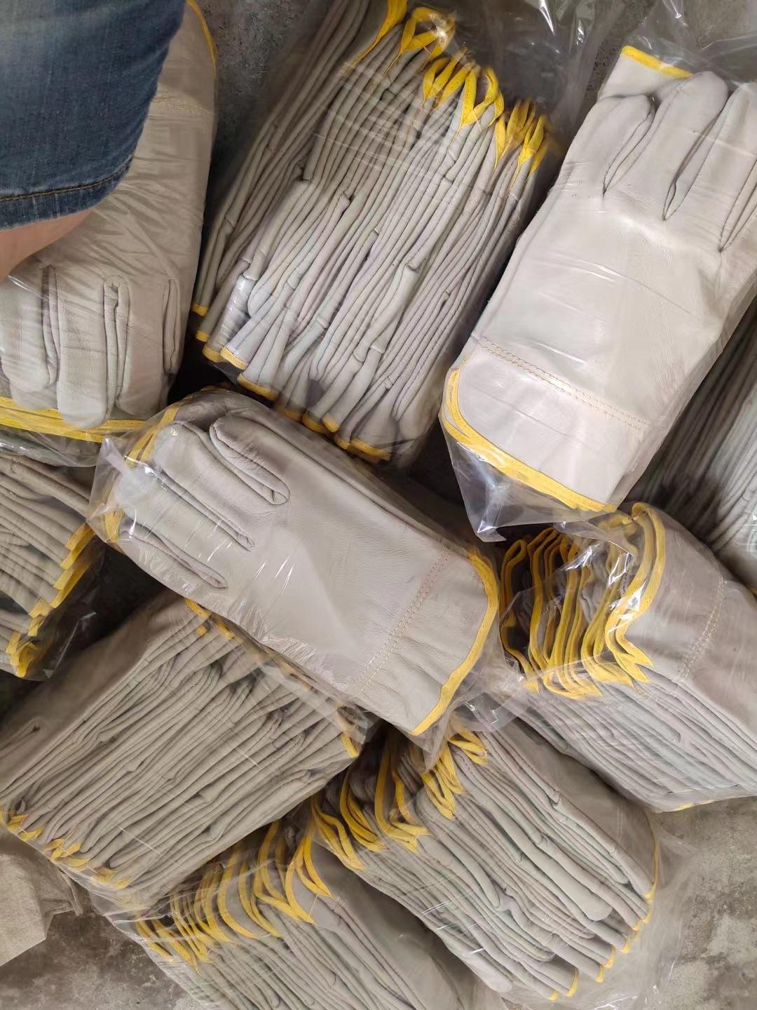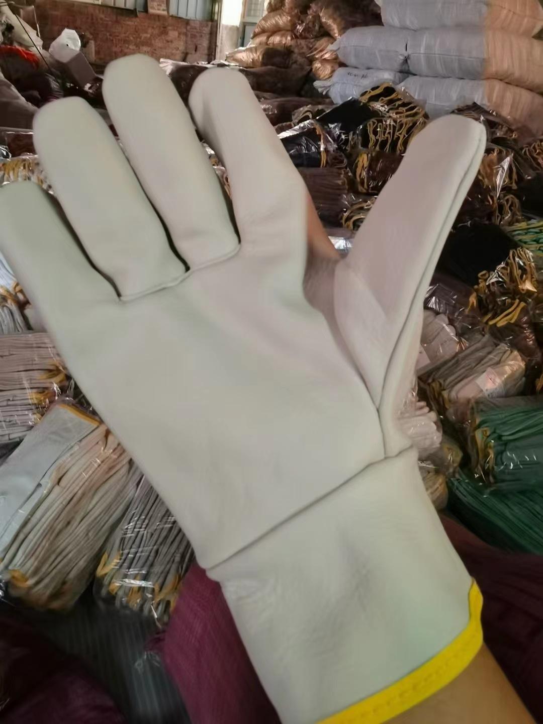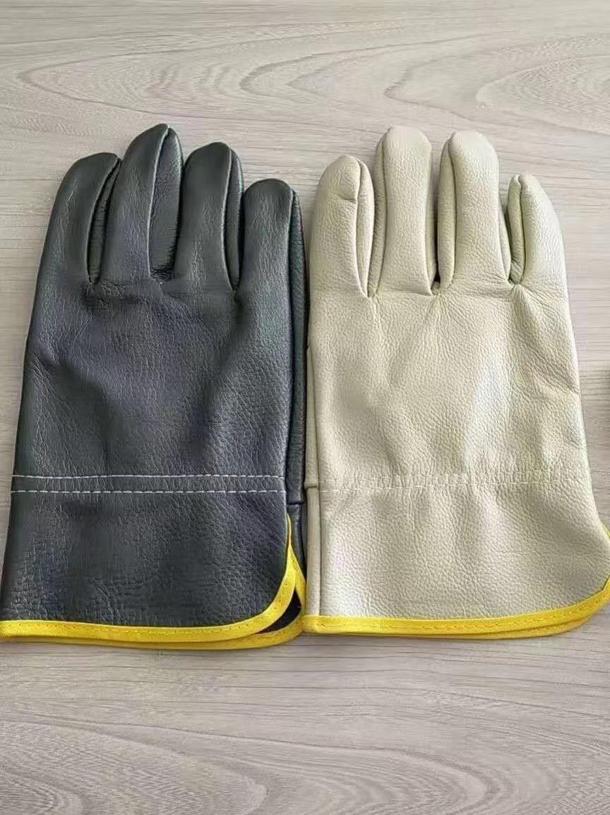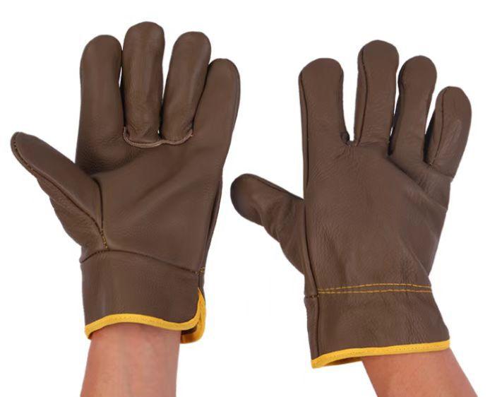 Guantes de soldador de piel de vaca de primera capa de color oscuro, cortos, de cuero, con dorso completo de cuero, soldador, protección laboral
