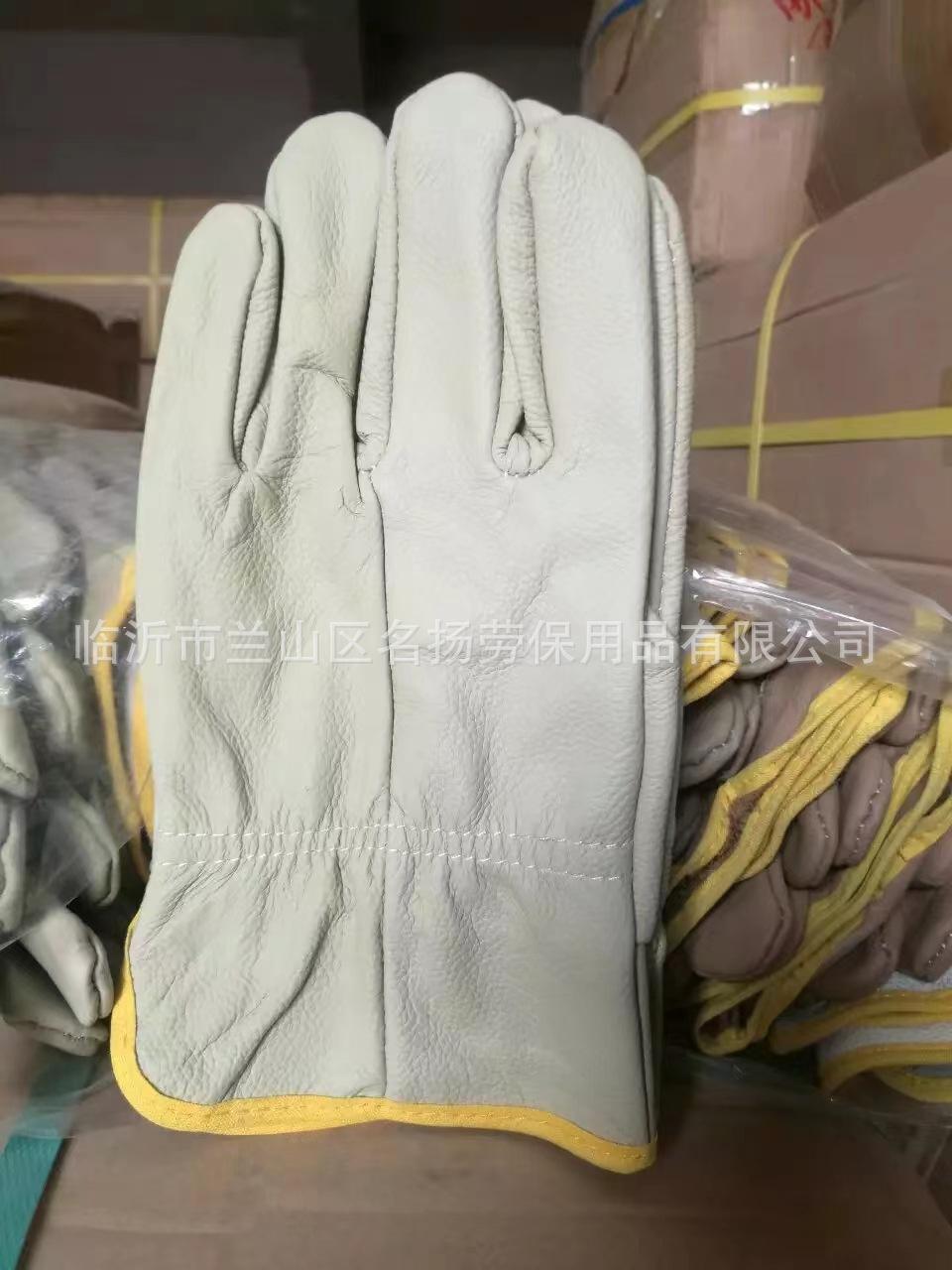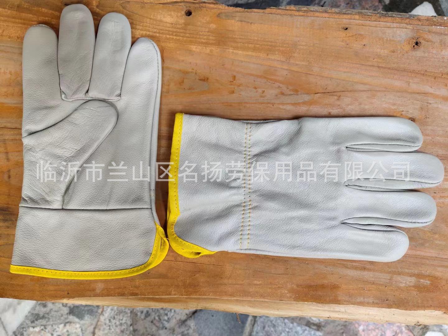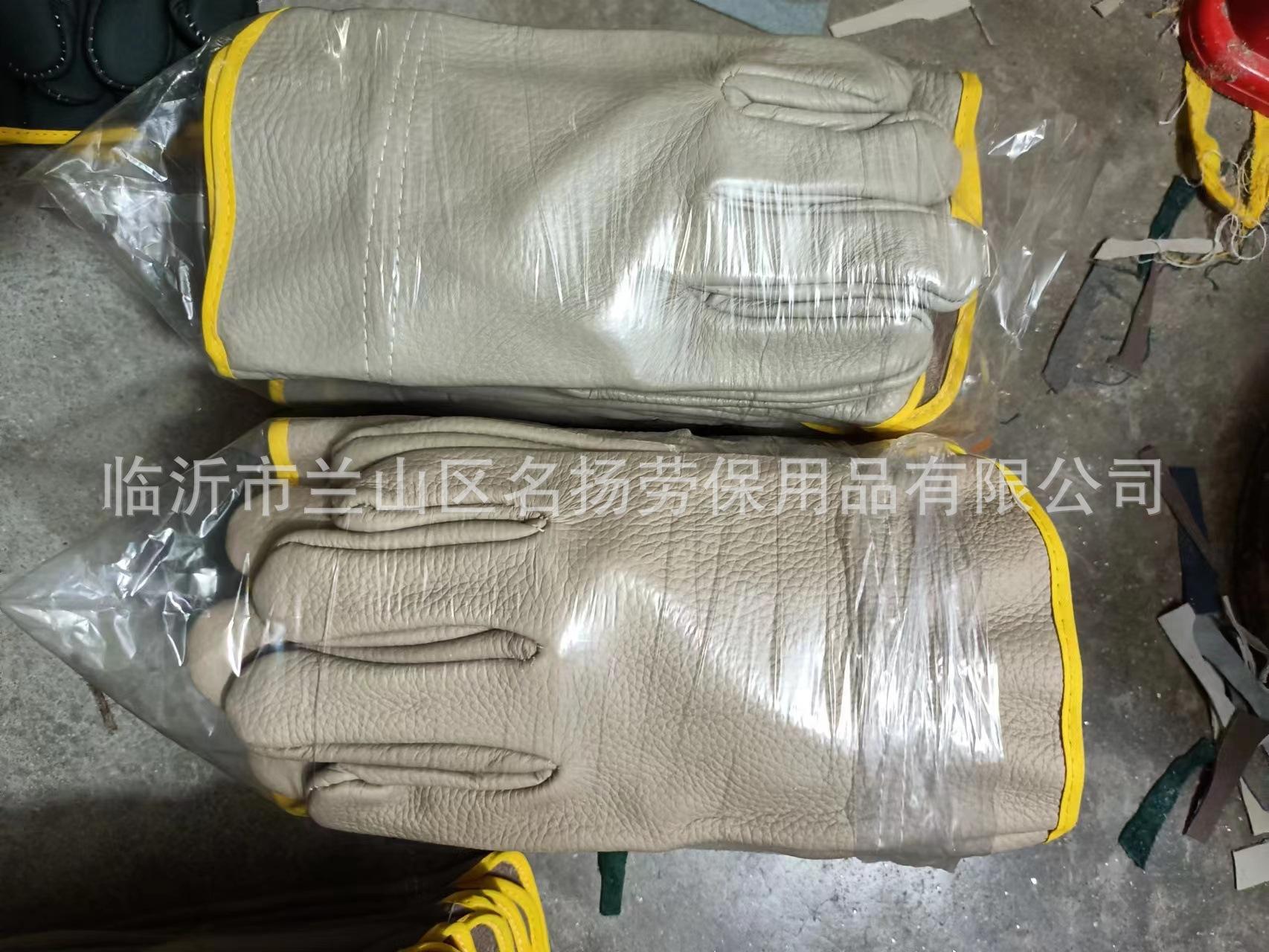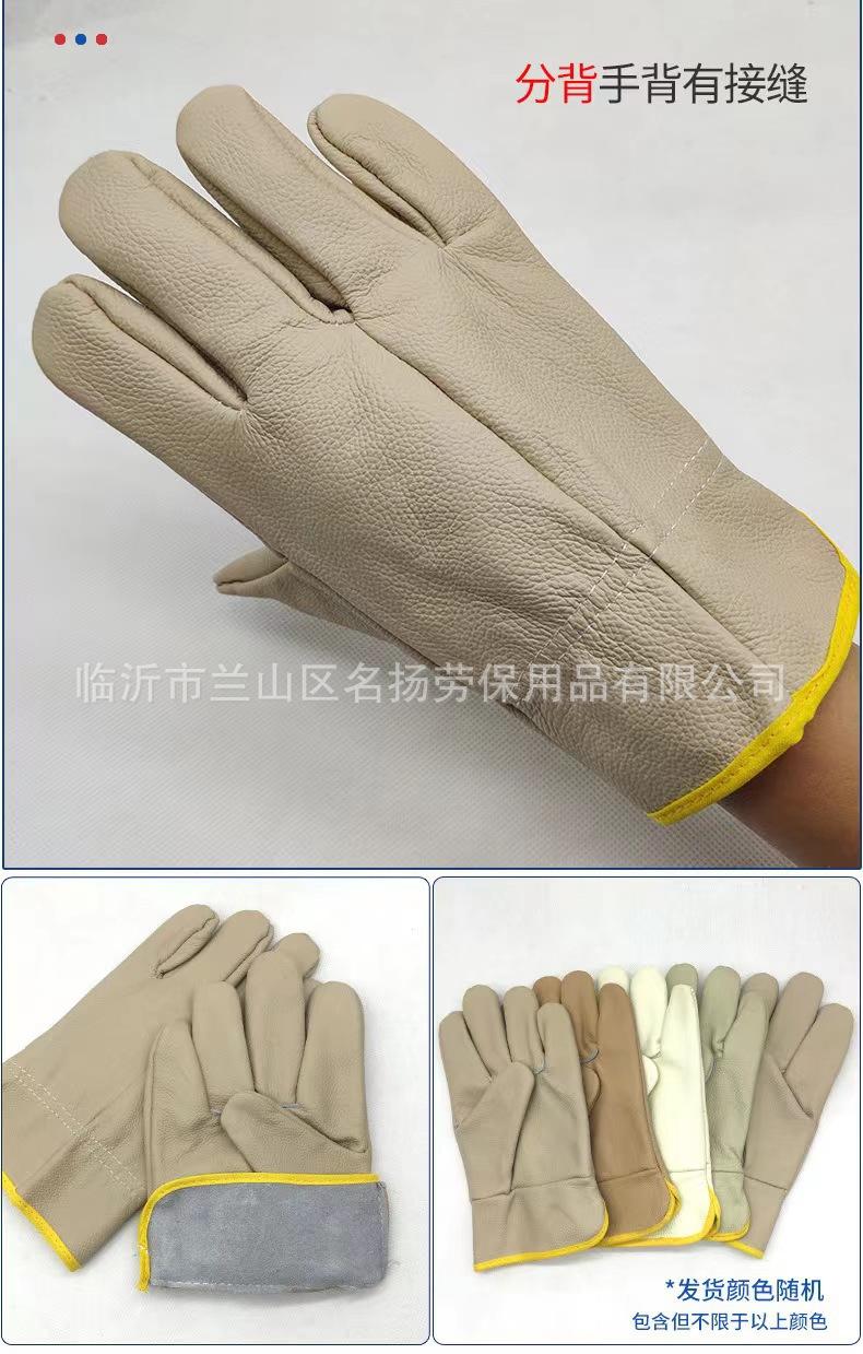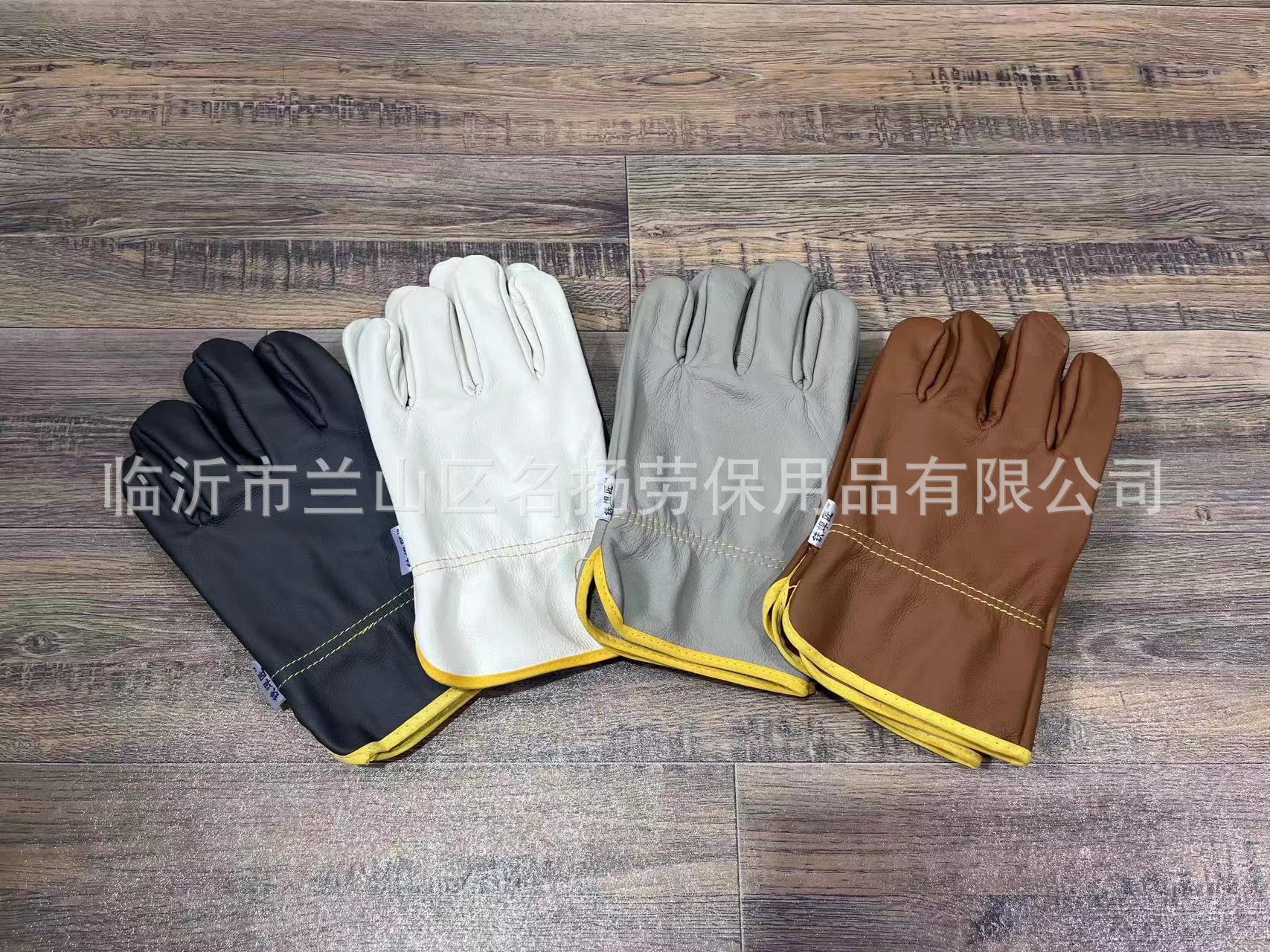Guantes de soldador de piel de vaca de primera capa de color oscuro, cortos, de cuero, con dorso completo de cuero, soldador, protección laboral